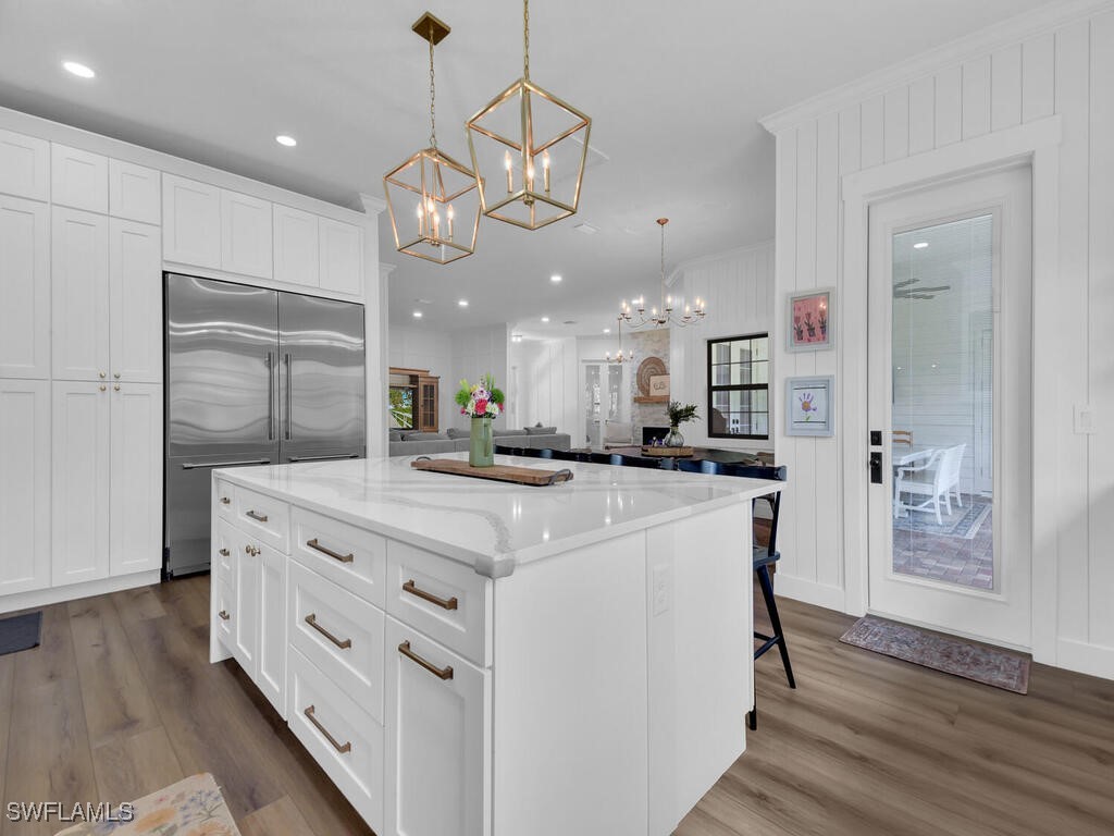 Step inside to discover a bright, open floor plan adorned with custom wood trim accents in the bedrooms, creating a warm and inviting atmosphere. The spacious living room features a modern electric built-in fireplace—perfect for cozy evenings—and hurricane impact glass windows and doors throughout provide peace of mind and energy efficiency. The chef’s kitchen is a showstopper, equipped with premium stainless steel appliances, a double stainless steel refrigerator, elegant cabinetry, and ample counter space. Entertain guests with ease in the adjacent dining area or step out to the screened-in lanai for al fresco dining and relaxation. Retreat to the expansive master suite, complete with a large walk-in closet featuring custom built-in shelves and doors. The spa-inspired bathrooms are beautifully updated, offering a tranquil escape after a long day. Enjoy the Florida lifestyle to the fullest with a spacious front porch, a large shed with an outdoor kitchen area and shower, and plenty of room to add your dream pool. The property’s canal frontage is ideal for fishing, kayaking, or taking a small boat out to the river—plus, the community boat ramp is conveniently located just across the street. Additional upgrades include a durable metal roof, a nearly new AC unit (approx. 2 years old), and ample storage throughout. You’ll love the blend of privacy and convenience, with shopping, entertainment, and restaurants just minutes away. Don’t miss your chance to own this exceptional home that truly has it all—luxury, location, and lifestyle. Schedule your private tour today and experience the best in waterfront living!
