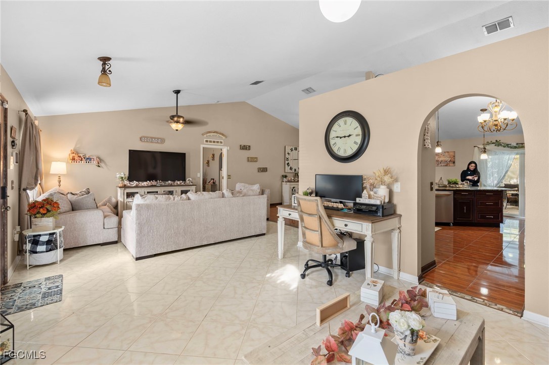 ***Non Flood Zone***Live the Cape Coral Dream! This stunning traditional Florida home offers 2247 sq ft of living space designed for relaxation and entertaining. Imagine yourself enjoying sunny afternoons by your private, screened-in pool or unwinding on the lanai. This 3-bedroom (plus den!), 2-bathroom home boasts a split bedroom floor plan for ultimate privacy, tile and wood flooring, and a spacious kitchen with a walk-in pantry. Situated on a generous .25-acre lot in a desirable Cape Coral location, this property offers convenience and tranquility. Don't miss the opportunity to own your piece of paradise!