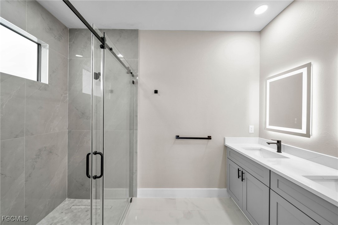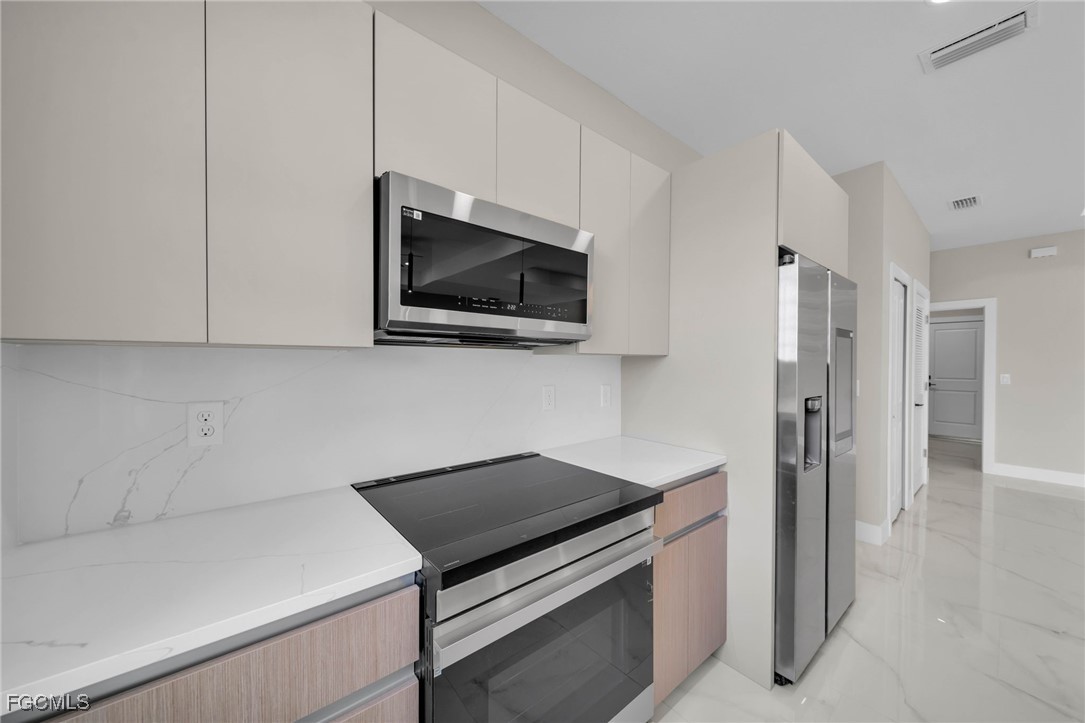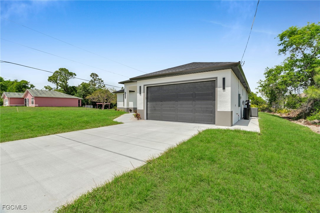 Introducing a stunning example of contemporary luxury living: this beautiful new construction boasts a modern aesthetic that is both chic and functional. Step into the spacious kitchen, featuring a sleek L island with samsung bespoke stainless steel appliances and touch screen samsung fridge and quartz countertops, perfect for cooking and entertaining. European-style kitchen cabinets provide ample storage, complementing the clean, minimalist look. Throughout the home, porcelain tile flooring adds elegance and durability. In the bathrooms, LED light mirrors combine style with practicality for a truly indulgent experience. With four bedrooms and two and a half bathrooms, including a master suite with his and hers walk-in closet and double sink and an elegant walk-in shower, comfort and luxury abound. From the floating modern vanities to the European style closet doors, every detail has been carefully curated for modern living at its finest. And with an extended lanai and sleek finishes, calling this paradise is an understatement. Automated water irrigation for grass included. Pictures are a model.