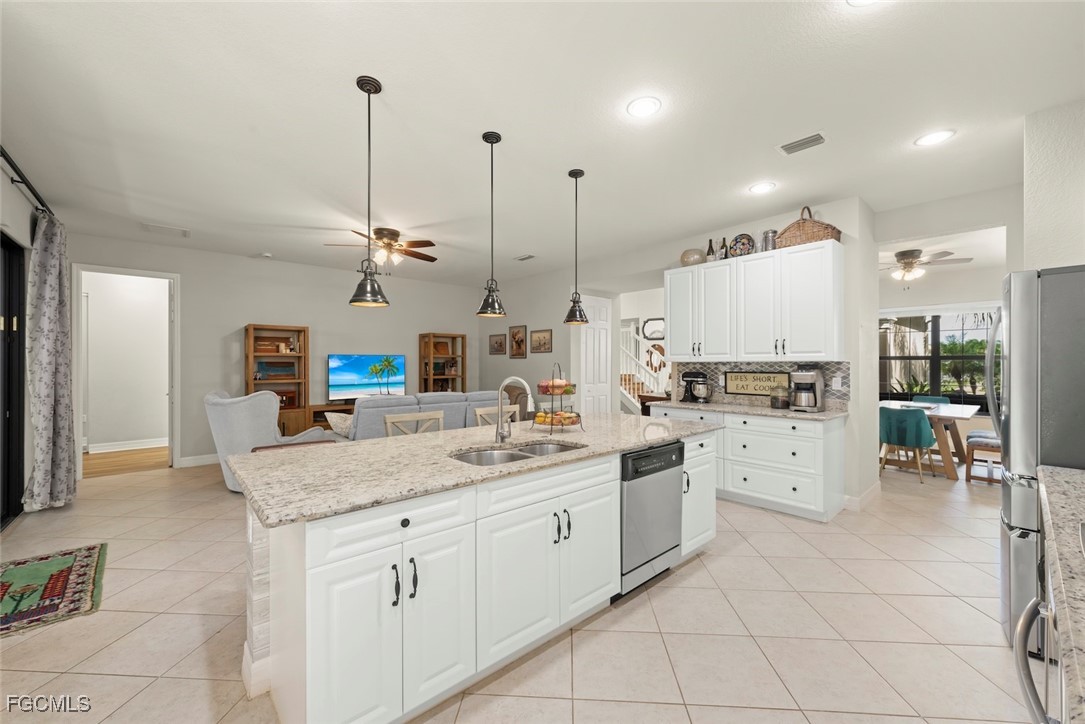 Step into a home where comfort meets elegance in the heart of the highly desirable, gated community of Riverstone at Naples. This beautifully maintained 4-bedroom, 4-bathroom residence offers everything you need — and more — to enjoy the Southwest Florida lifestyle to its fullest. From the moment you walk in, you’re greeted with a sense of space and warmth. The thoughtful layout includes a den for working or unwinding in privacy, a bright loft perfect for movie nights or a cozy reading nook, and both a living room and family room for relaxed gatherings with loved ones. The kitchen is the heart of it all — with stainless steel appliances, ample storage, and plenty of counter space to prepare meals, snacks, and everything in between. Step outside to a fenced backyard where kids can play, pets can roam, or you can simply unwind in the warmth of the sun. With new AC units (2022), Solar panels and a Tesla Powerwall (2024), and hurricane shutters (2025) already in place, you’ll enjoy peace of mind, comfort, and energy efficiency for years to come. Beyond your front door, Riverstone offers a vibrant, active lifestyle the whole family will love. Spend weekends at the resort-style clubhouse, complete with a huge pool, lap pool, hot tub, and a children’s waterpark and tot lot. Stay active with tennis, pickleball, and basketball — or enjoy time together in the fitness center, billiards room, or community events hosted throughout the year. Located just minutes from top-rated schools and a short drive to Naples’ best beaches, restaurants, and shops, this home truly offers the best of family living — with space to grow and a community that feels like home.