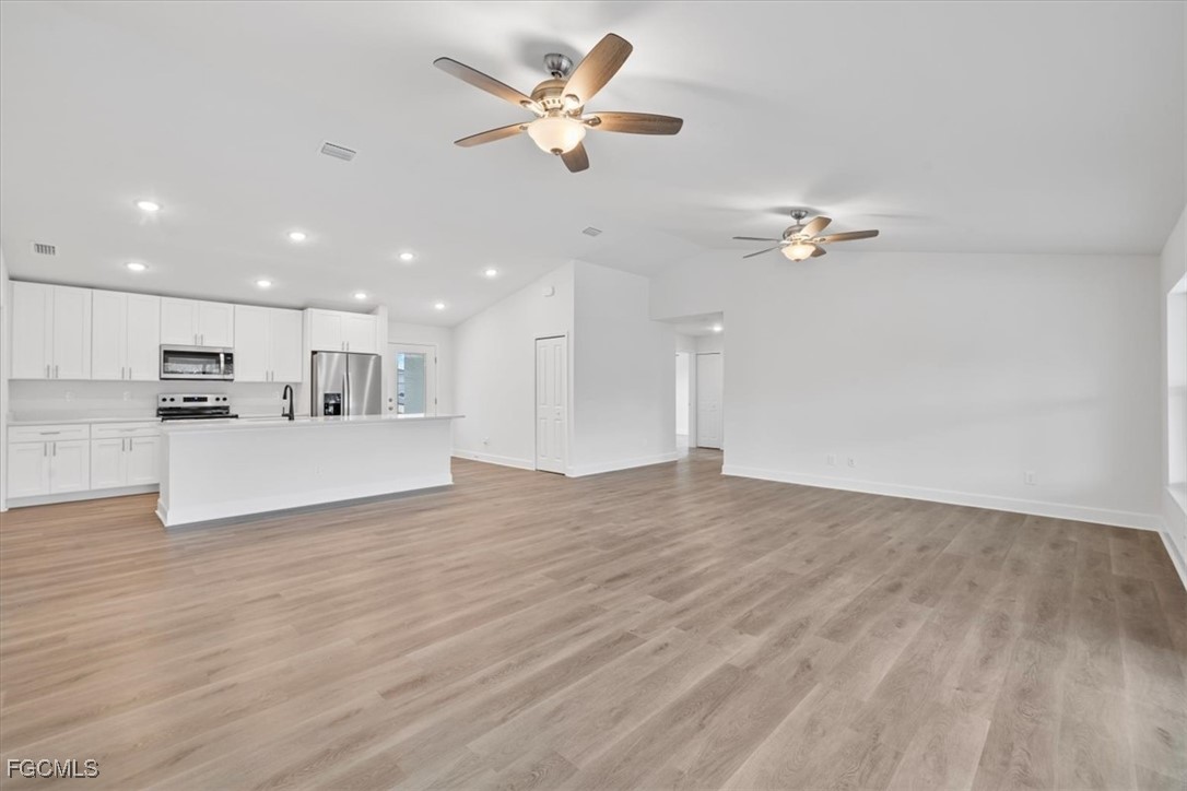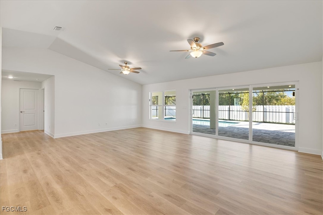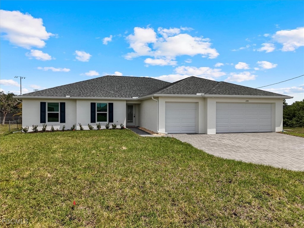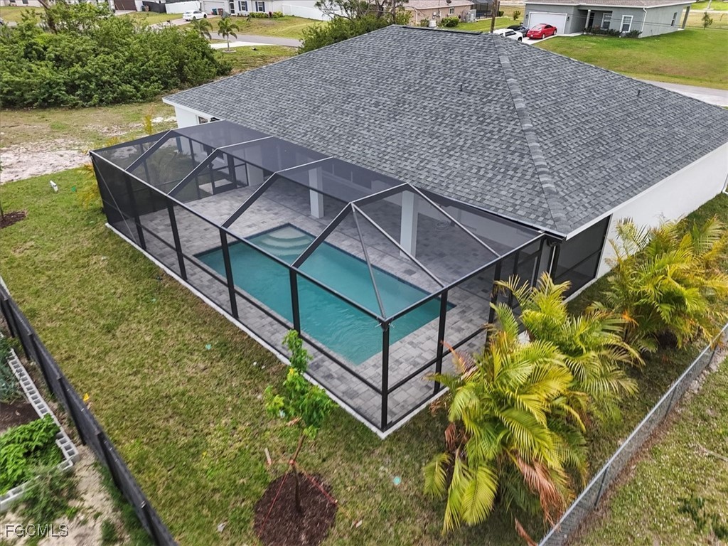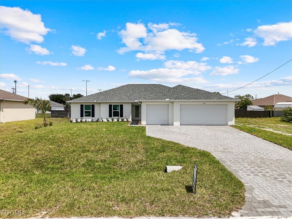 BRAND NEW PRIVACY FENCE JUST INSTALLED! SPACIOUS POOL HOME WITH DUAL PRIMARY SUITES! Welcome to the Paradise Cove Plan—a stunning, expansive retreat designed for comfort and elegance! This huge 4-bedroom, 3-bath home boasts two luxurious primary suites, making it perfect for multi-generational living or accommodating guests in style. Step inside to discover an open-concept great room with soaring ceilings and a 12-foot triple slider, seamlessly blending indoor and outdoor living. The heart of the home is the gourmet kitchen, featuring soft-close, all-wood cabinetry, quartz countertops, stainless steel appliances, and an oversized walk-in pantry—a dream for any chef! The first primary suite is a private oasis, spacious enough for a king-size bed and a cozy seating area. Enjoy direct access to the lanai and pool, plus a spa-inspired ensuite with a freestanding soaking tub and separate shower. The second primary suite is equally impressive, offering a full bath that also serves as a convenient pool bath, along with a generous walk-in closet. Outside, relax in the 1,100 sq. ft. under-truss screened lanai or take a dip in the heated pool, perfect for year-round enjoyment. Built by a trusted local builder, this home offers incredible value in Cape Coral with impact windows for added security and lower insurance costs, no flood zone offering peace of mind and savings, and a 10-year structural warranty for long-term confidence. Fence options available—ask for details! This is The Paradise Cove Plan.