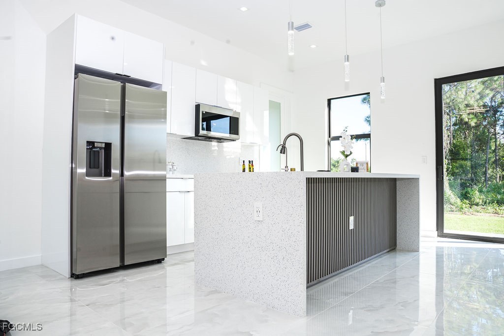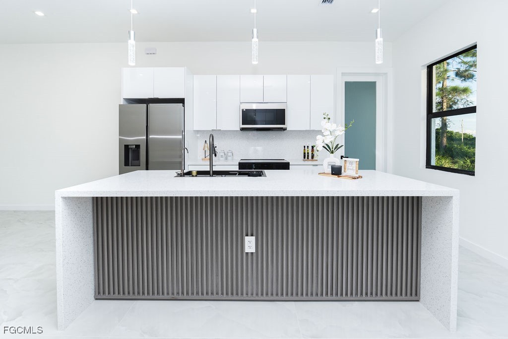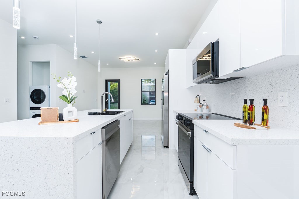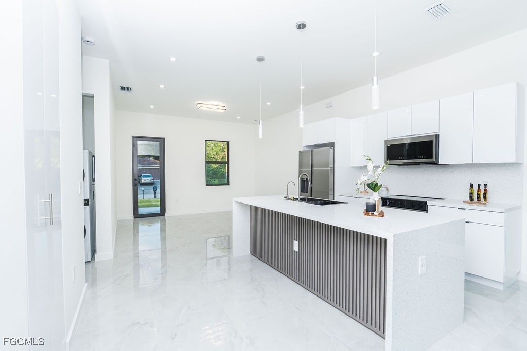 Welcome to a home that blends modern design, elegance, and comfort in every detail. This 3-bedroom, 3-bath property features custom bathrooms, tile flooring, and LED lighting throughout, creating a bright and inviting atmosphere. The modern kitchen offers high-end appliances and vinyl cabinetry, designed for both style and everyday convenience. Each bedroom includes custom closets with high closet doors, and all interior doors are a sleek frosted crystal white, adding a refined and contemporary touch, while the impact windows and doors ensure safety and efficiency. The home also includes a garage for one car with a convenient side door, and the driveway is spacious enough to accommodate additional vehicles. The backyard has space enough for a pool or an entertainment area, perfect for enjoying Florida living! Ideally located near SR 82, schools, and recreational parks, this home appeals to small families and buyers looking for modern, move in ready properties. Seller is very motivated and open to reasonable offers, bring yours today!