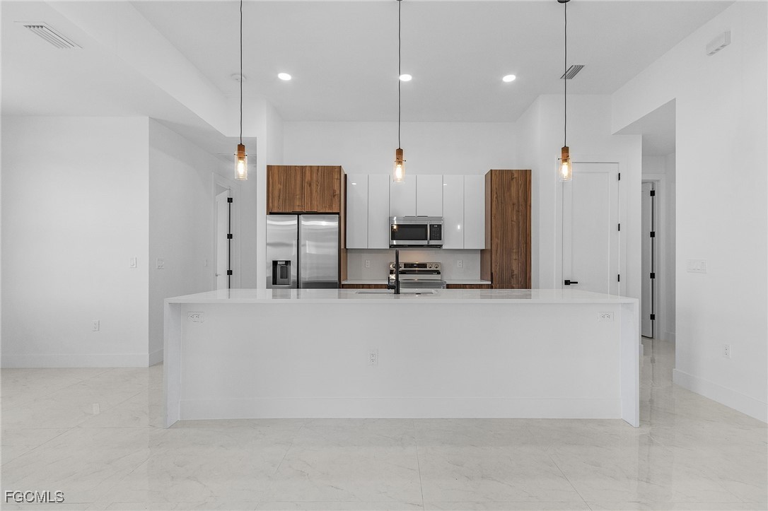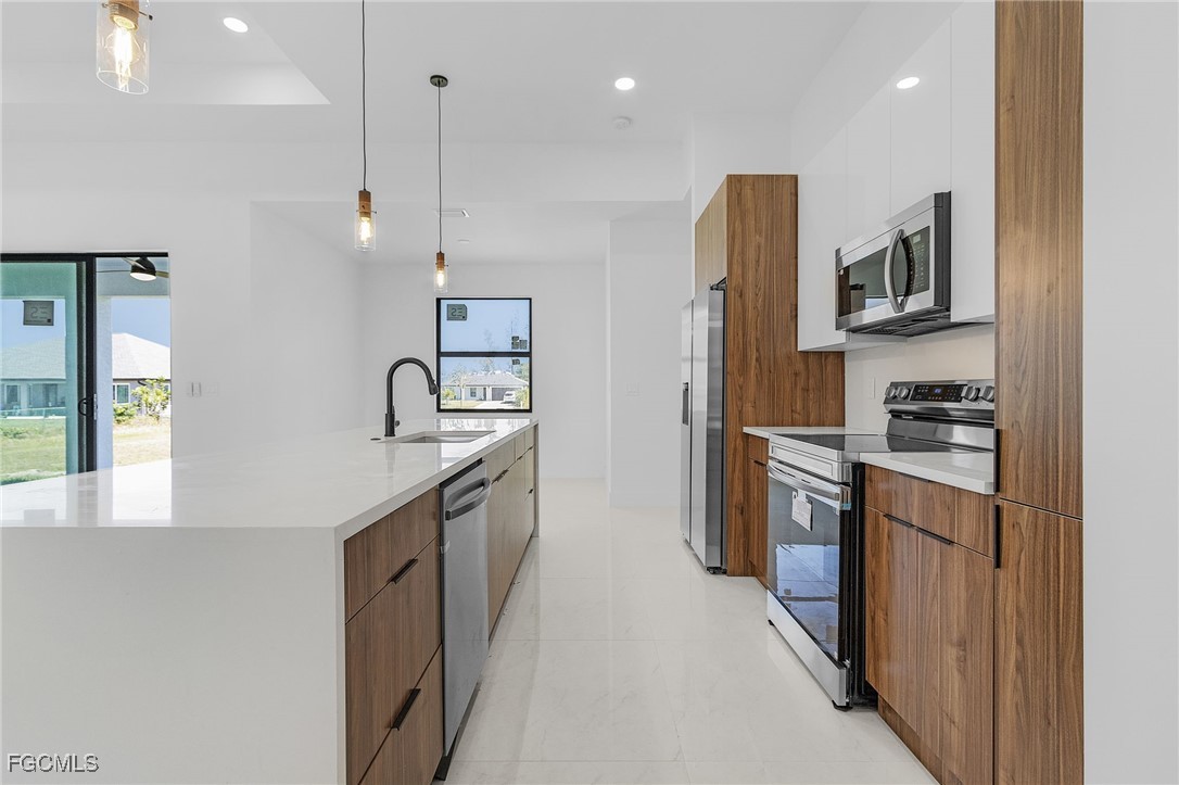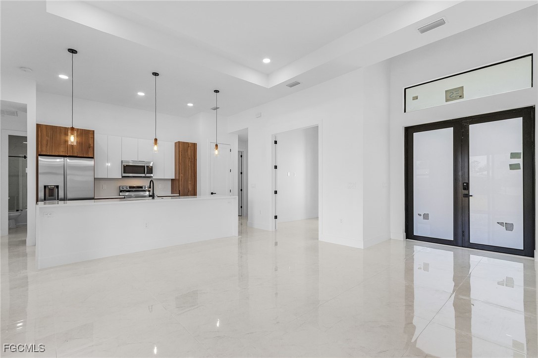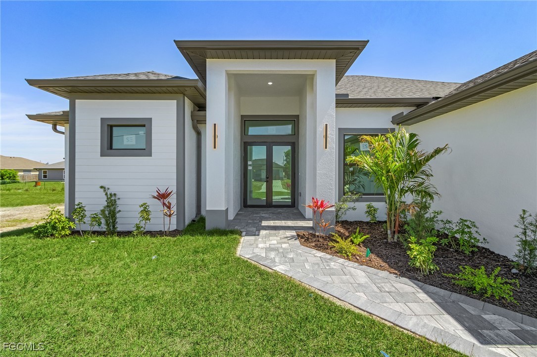 MODERN GEM! Beautiful new single-family home located in one of Cape Coral’s most desirable areas. This 3-bedroom plus den, 2-bath residence offers an open floor plan with elegant finishes and modern design throughout. The spacious kitchen features high-quality cabinetry, quartz countertops, and stainless steel appliances, flowing seamlessly into the bright living and dining areas. The master suite includes a walk-in closet and a luxurious bathroom with double vanities and a walk-in shower. With excellent craftsmanship, stylish details, and a prime location close to shopping, schools, and restaurants, this home is the perfect blend of comfort and sophistication.