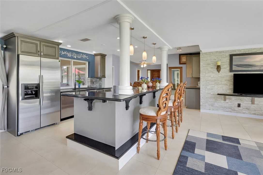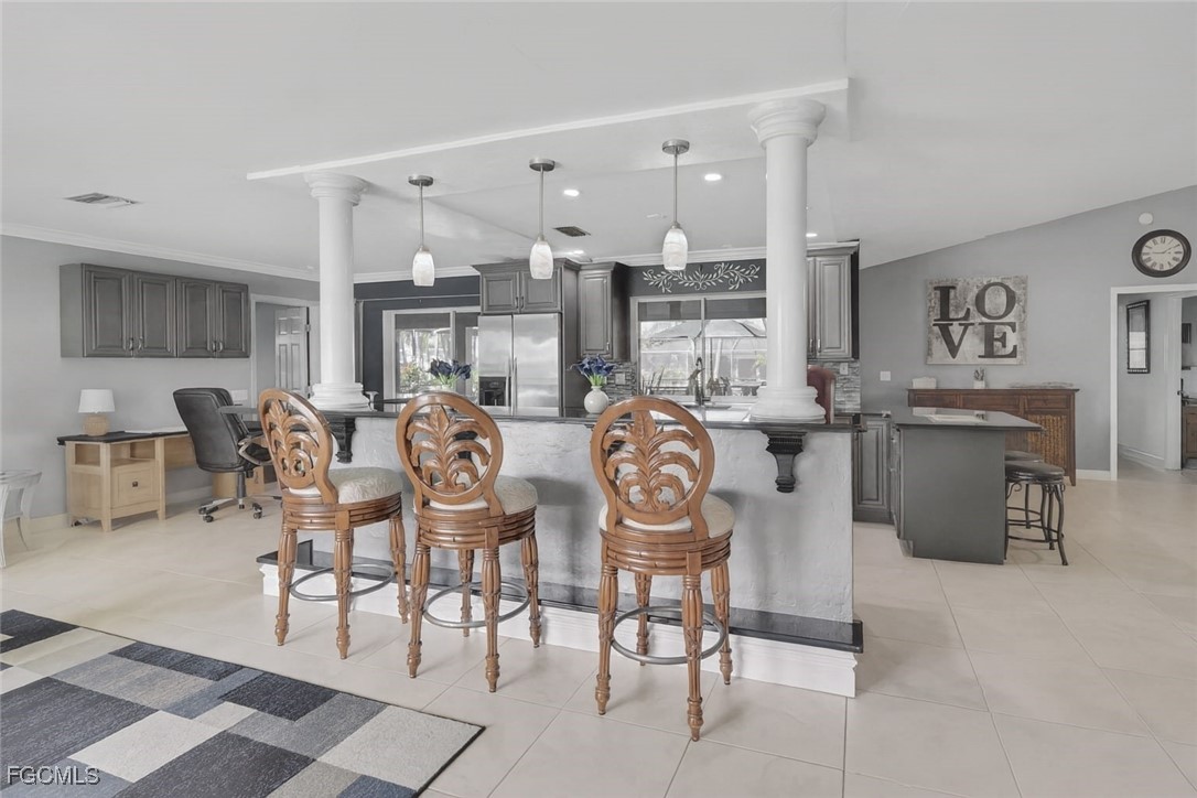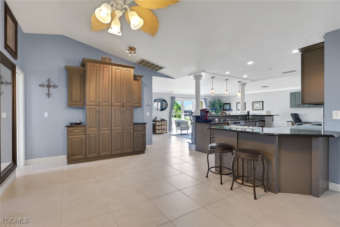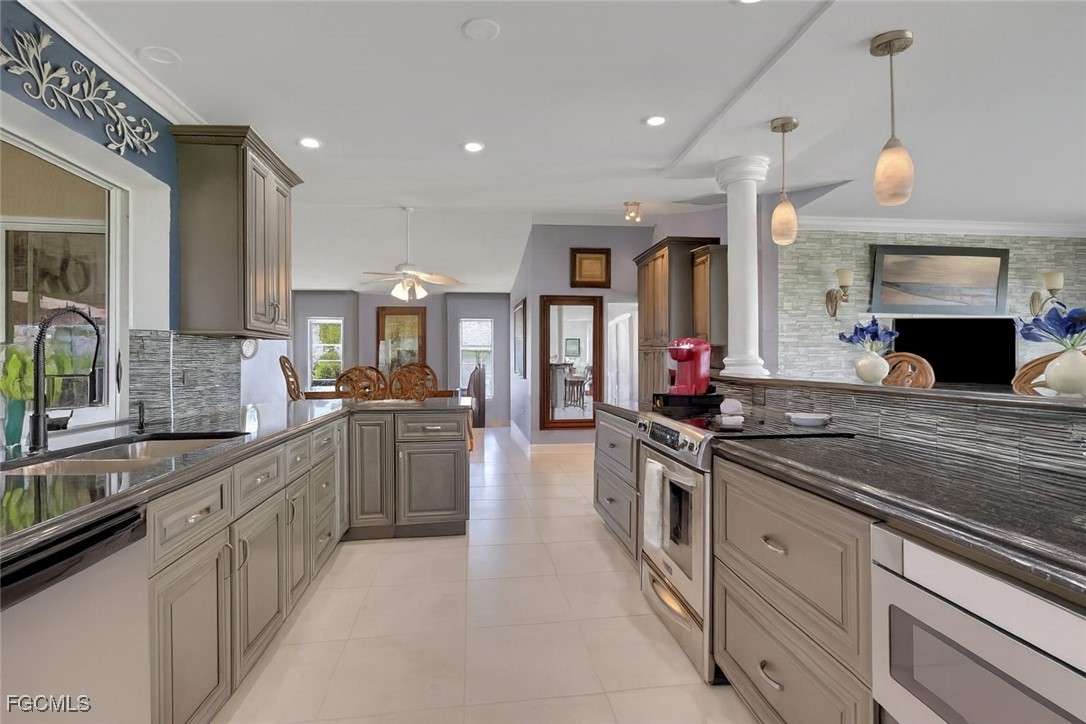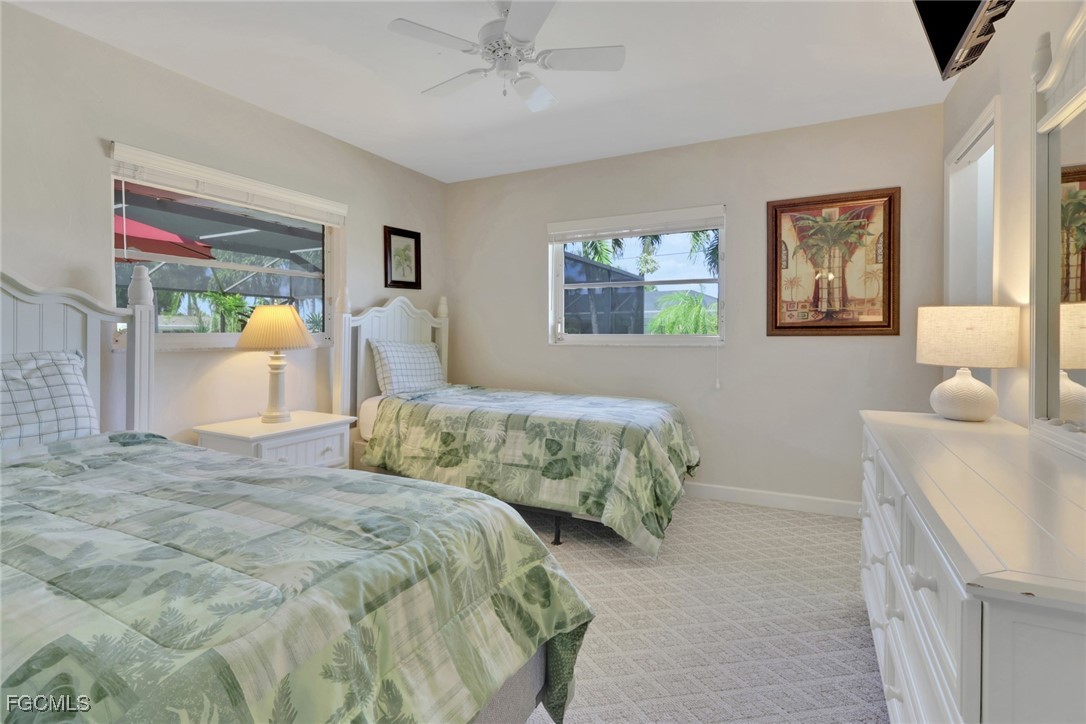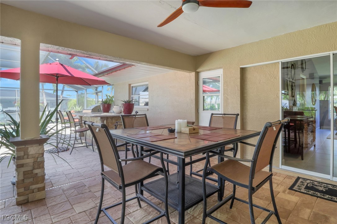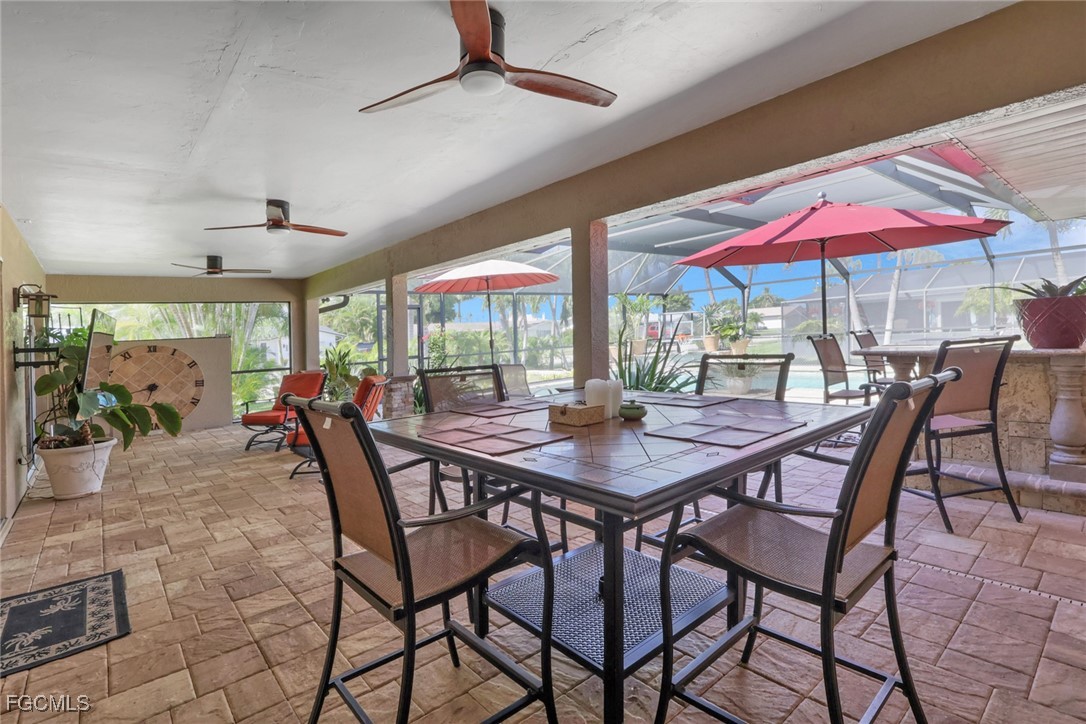 Look no further—this stunning home has it all. Situated on an oversized corner lot in the desirable Waterway Estates community, this property offers the ultimate Florida lifestyle. Pride of ownership shines throughout, as the home has been meticulously maintained and thoughtfully updated. The lushly landscaped yard is a true tropical oasis, featuring dozens of beautiful palm trees that create a private, resort-like atmosphere. The outdoor entertaining area is truly one of a kind, boasting a custom-built saltwater pool complete with a swim-up bar top, a regulation-sized basketball hoop, and a volleyball net—perfect for hosting unforgettable gatherings or enjoying fun in the sun. The space also includes an oversized pavered lanai with a granite-topped bar, your very own putting green, and a paved area in the backyard ideal for a fire pit or sunbathing. The driveway has been widened on both sides, providing ample space for parking and easy access. Inside, the home is in pristine condition and features three bedrooms, two bathrooms, a two-car garage, and a new shingle roof. The solid oak kitchen cabinets and beautiful tile flooring throughout add warmth and elegance. Enjoy both a formal living room and a large family room, perfect for entertaining or relaxing. All city assessments are paid in full, and the sprinkler system runs off the well for low-cost maintenance. Located in a quiet, well-regarded neighborhood with sidewalks and streetlights, this home is just a short walk or bike ride to golf courses, marinas, and the Publix shopping center. Truly move-in ready—just unpack and start living the Florida dream!