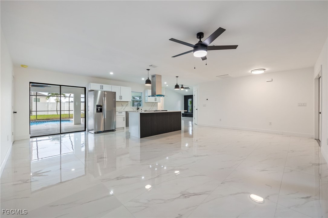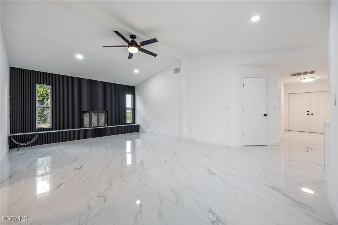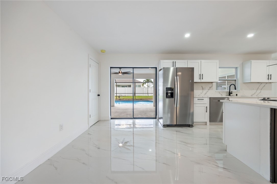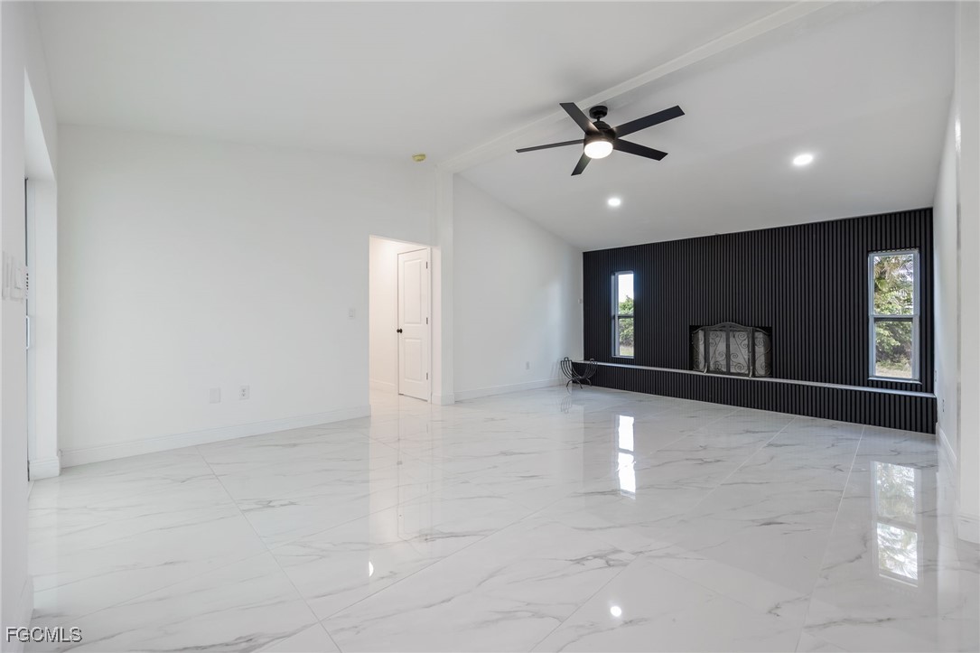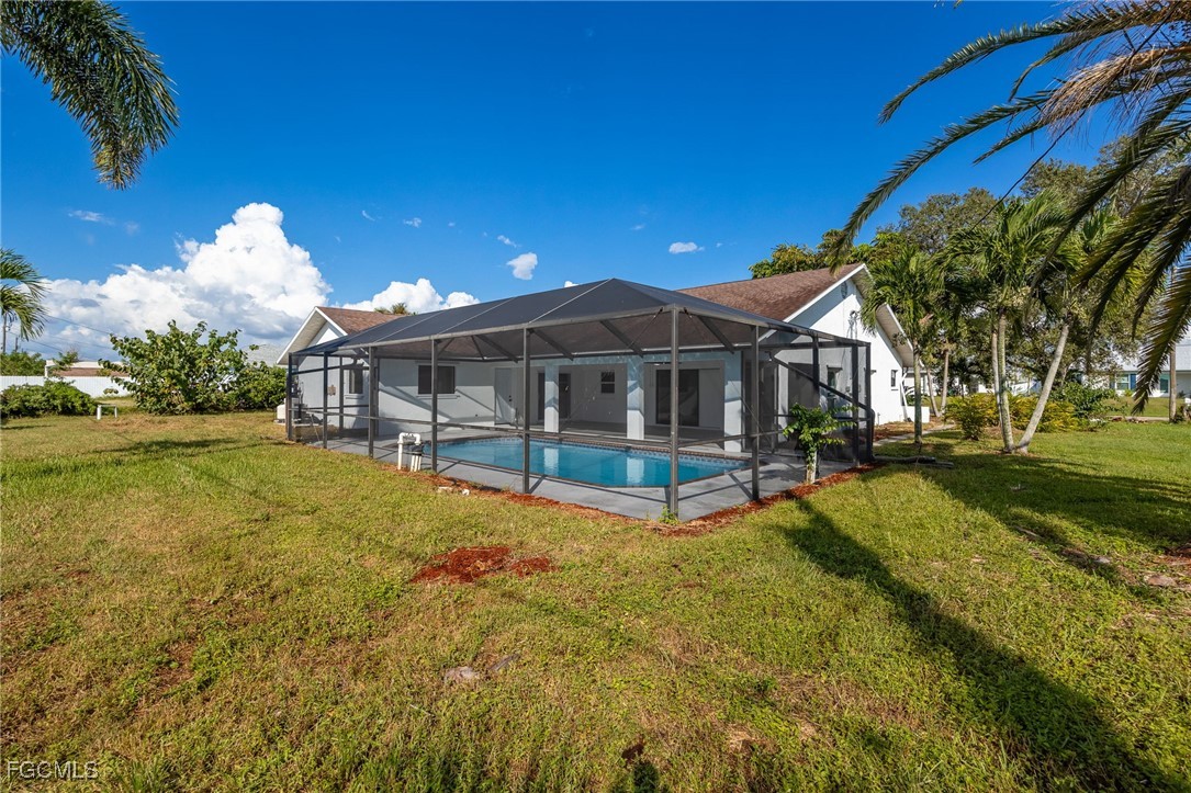 Beautifully remodeled from top to bottom, this stunning 3-bedroom, 2-bath pool home offers the perfect blend of modern elegance and Florida charm. Situated on an oversized triple lot surrounded by lush tropical landscaping, this property feels like your own private retreat. Inside, you’ll find a bright and open floor plan featuring a gorgeous kitchen with quartz countertops, a large center island, and brand-new 2025 stainless steel appliances. The home showcases sleek porcelain tile floors throughout the main living areas, new vinyl flooring in the bedrooms, fresh baseboards, and new interior doors. Both bathrooms have been completely remodeled, with the master bath featuring a luxurious whirlpool tub. The living and family rooms are spacious and inviting, highlighted by a modern fireplace that adds warmth and style. Step outside to your sparkling pool, freshly painted and equipped with a new pool filter, and enjoy the large covered patio—perfect for entertaining or relaxing under the Florida sun. The pool enclosure has been newly screened, and the attic features brand-new insulation for improved efficiency. Additional upgrades include a new HVAC system and ductwork, new electrical panel, new outlets, switches, and covers, new water heater, new well pump and motor, new garage door opener, and new well system. Located in a quiet neighborhood with no HOA, this home offers space, privacy, and peace of mind—an exceptional opportunity to experience the best of Southwest Florida living.