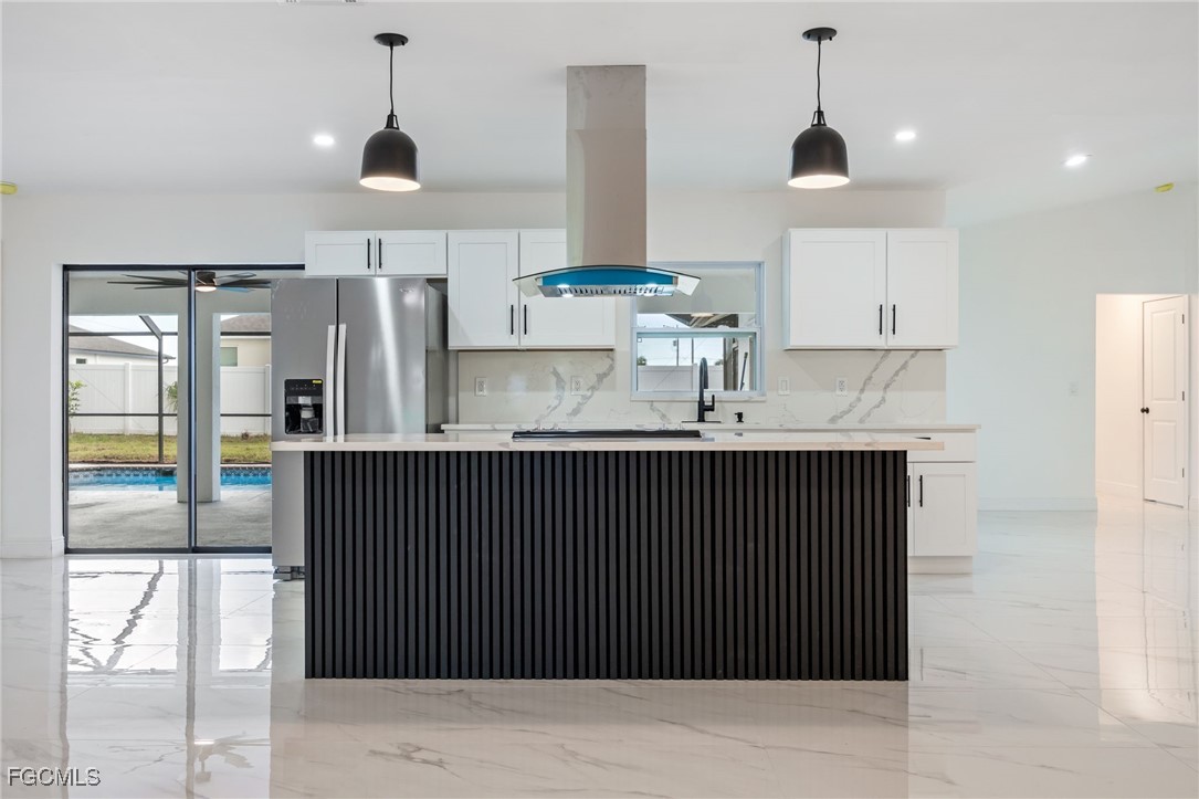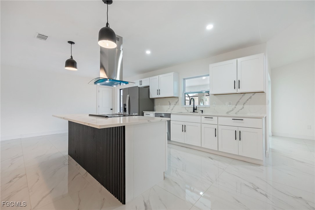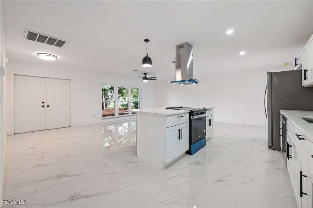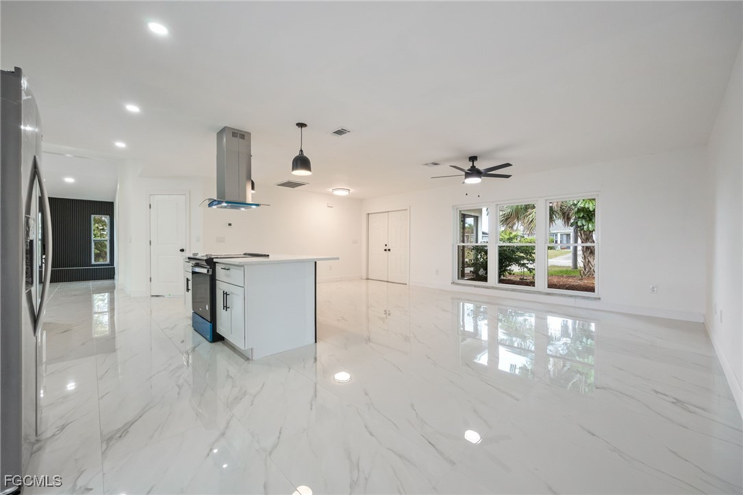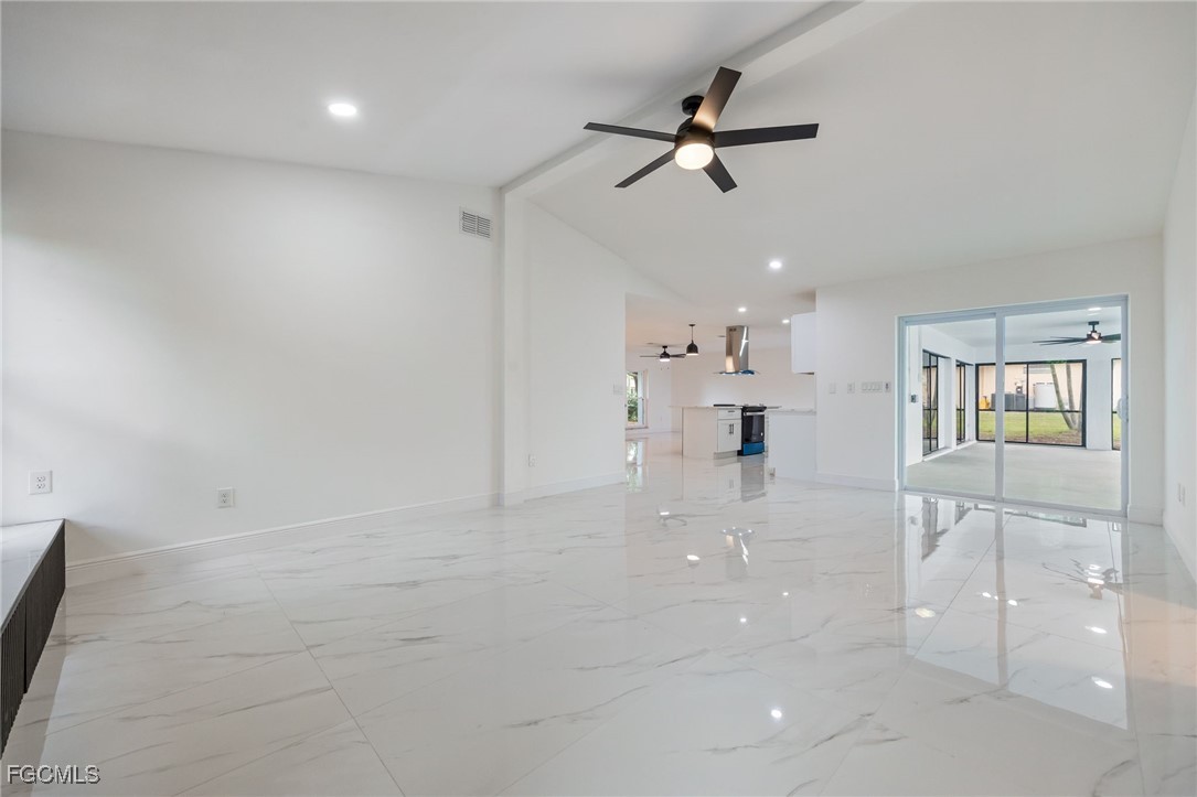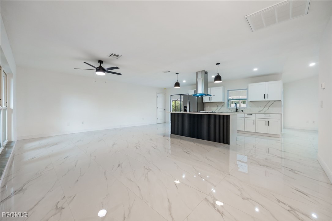 Beautifully remodeled from top to bottom, this stunning 3-bedroom, 2-bath pool home offers the perfect blend of modern elegance and Florida charm. Situated on an oversized triple lot surrounded by lush tropical landscaping, this property feels like your own private retreat. Inside, you’ll find a bright and open floor plan featuring a gorgeous kitchen with quartz countertops, a large center island, and brand-new 2025 stainless steel appliances. The home showcases sleek porcelain tile floors throughout the main living areas, new vinyl flooring in the bedrooms, fresh baseboards, and new interior doors. Both bathrooms have been completely remodeled, with the master bath featuring a luxurious whirlpool tub. The living and family rooms are spacious and inviting, highlighted by a modern fireplace that adds warmth and style. Step outside to your sparkling pool, freshly painted and equipped with a new pool filter, and enjoy the large covered patio—perfect for entertaining or relaxing under the Florida sun. The pool enclosure has been newly screened, and the attic features brand-new insulation for improved efficiency. Additional upgrades include a new HVAC system and ductwork, new electrical panel, new outlets, switches, and covers, new water heater, new well pump and motor, new garage door opener, and new well system. Located in a quiet neighborhood with no HOA, this home offers space, privacy, and peace of mind—an exceptional opportunity to experience the best of Southwest Florida living.