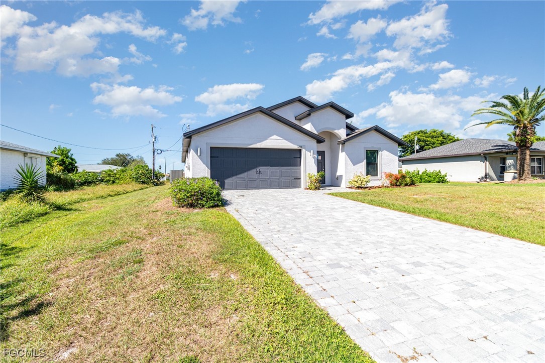 Welcome to this fantastic, move-in ready, 4-bedroom, 2-bathroom home in Cape Coral. The home features an open concept design with a large flex space at the entry, perfect for a home office, sitting area, or playroom. This space flows seamlessly into the open kitchen and living room. The kitchen is equipped with sleek stainless steel appliances and granite countertops. The primary suite is a comfortable retreat, featuring a walk-in closet, standing shower, and dual sinks. The living room opens up to a covered back porch and the backyard, ideal for enjoying the Florida weather. This property is conveniently located very close to US 41, shopping, restaurants, and so much more. Schedule your showings today!