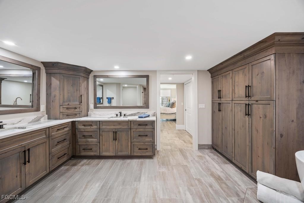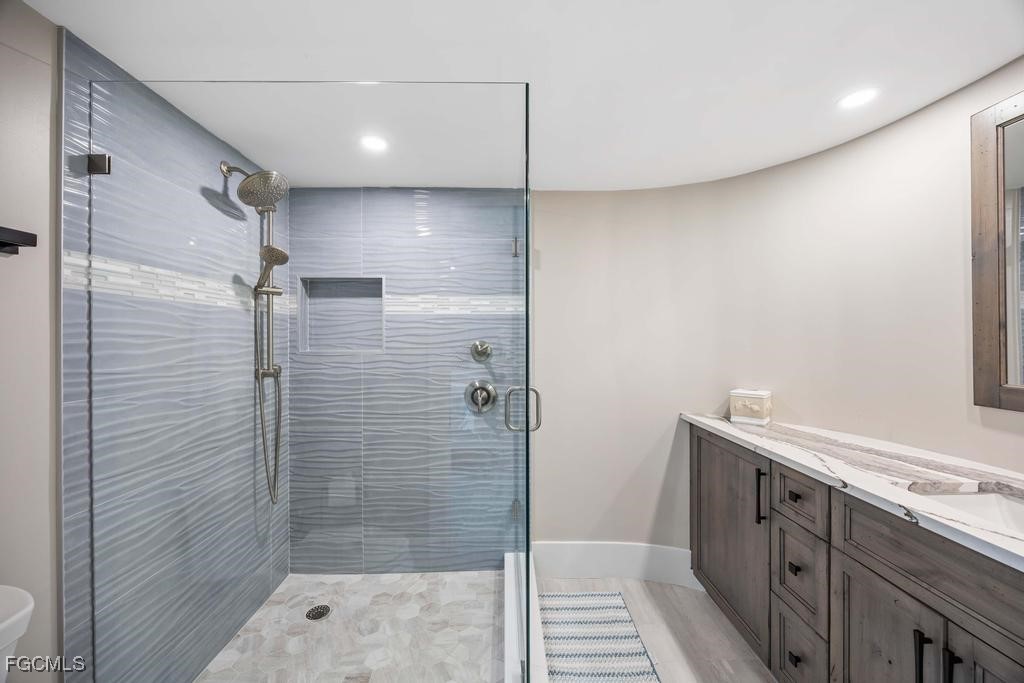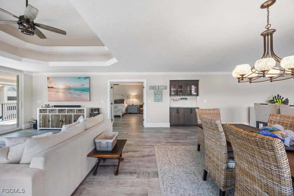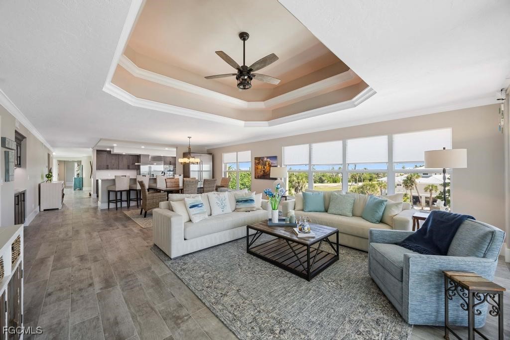 Experience the pinnacle of coastal contemporary luxury in this stunning 3-bedroom plus den, 3.5-bath Gulf-view penthouse, completely renovated in 2024 with exceptional craftsmanship and designer finishes. The custom-designed kitchen is a chef’s dream, featuring Thermador induction cooktop, professional series appliances, a Sub-Zero refrigerator/freezer, and an additional Viking refrigerator. Custom cabinetry and Cambria quartz countertops add a sleek, elegant touch, while ceramic tile flooring flows seamlessly throughout the open-concept living spaces. Walls of impact windows and doors showcase sweeping Gulf of Mexico views, and skylights fill the home with abundant natural light, creating a bright and inviting coastal ambiance. A private staircase leads to the upper sundeck area, the perfect retreat for entertaining or relaxing while enjoying spectacular sunsets over the water. Professionally furnished by Robb & Stucky, this residence embodies timeless design and modern sophistication.