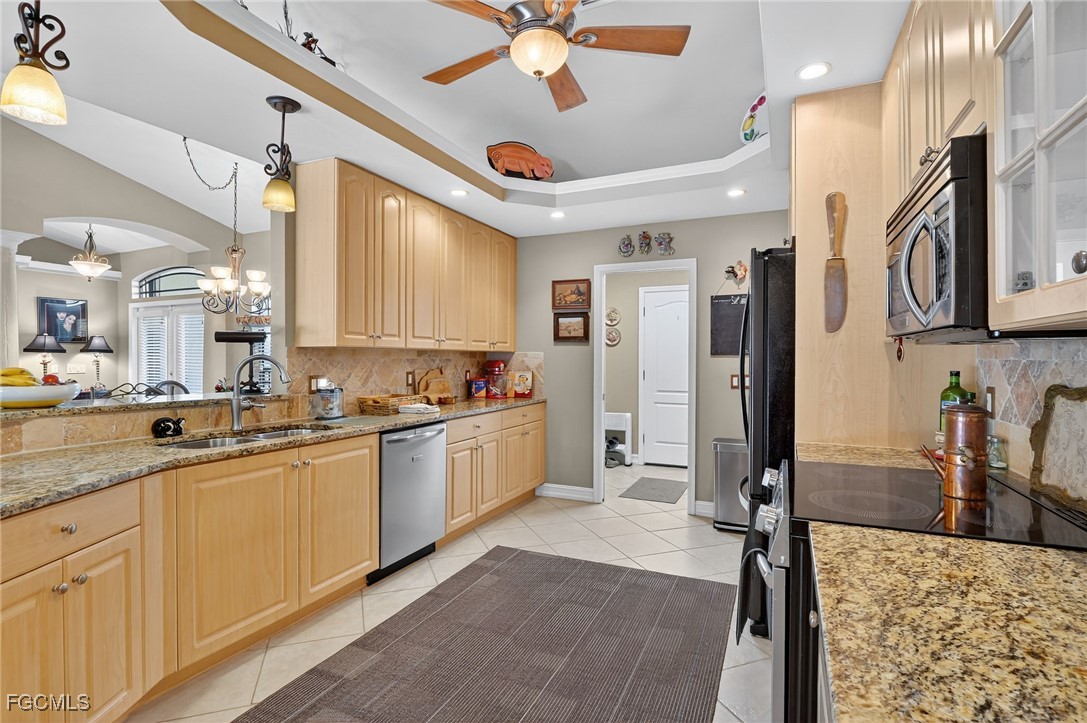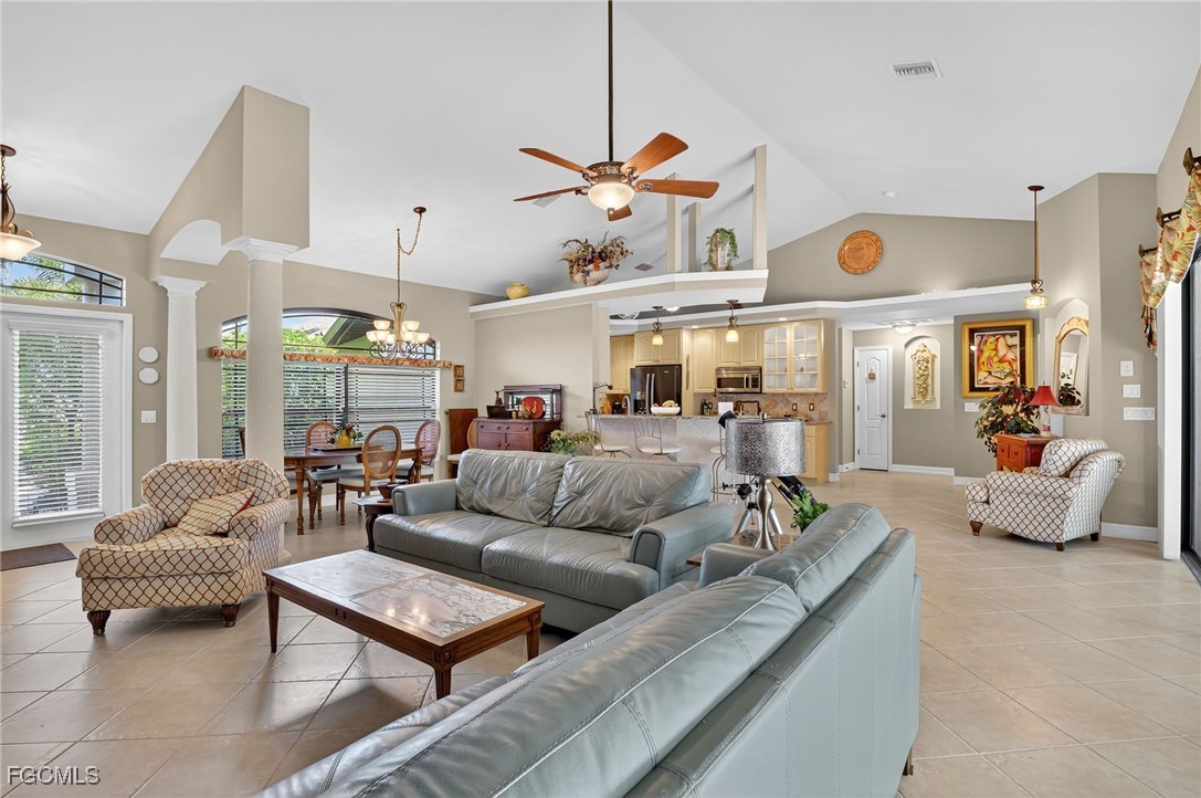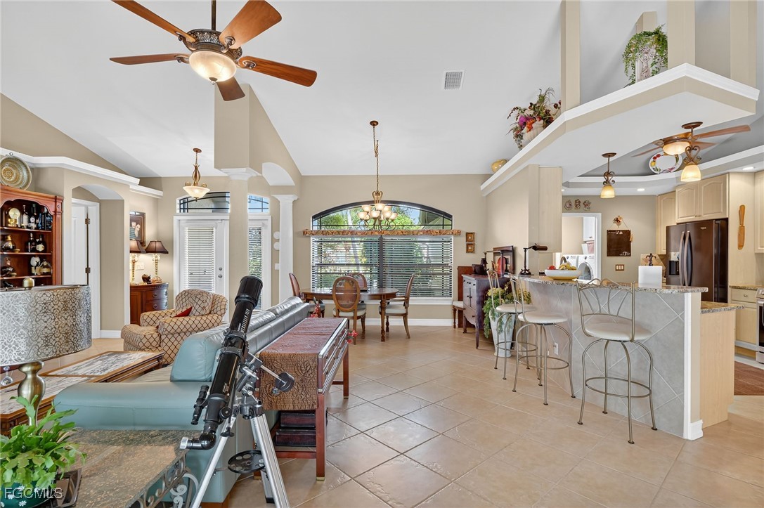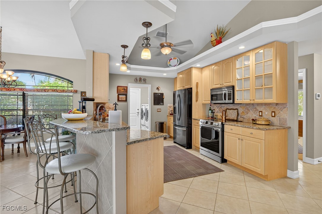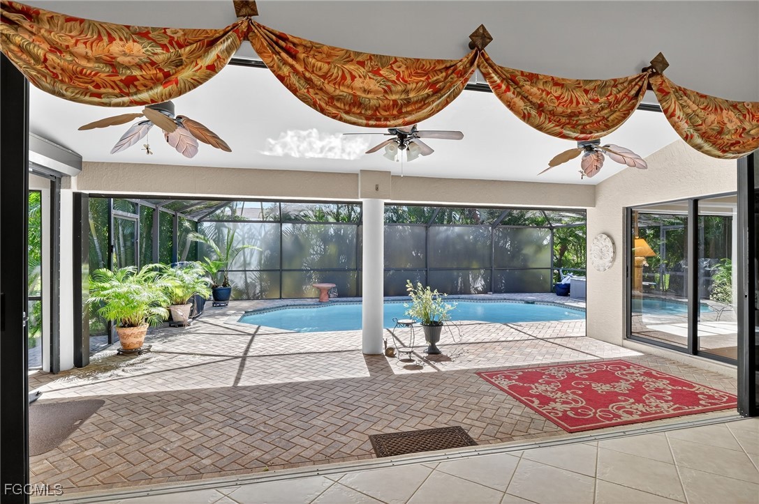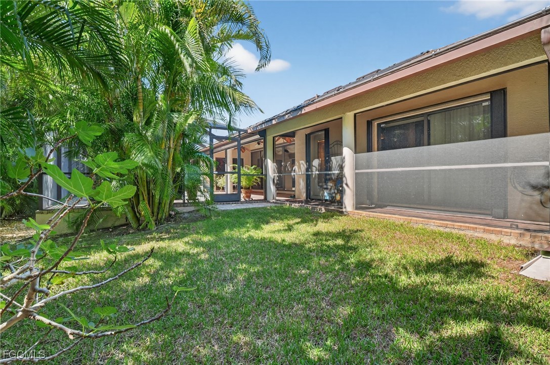 Location, Location! No water in the home from hurricane! This beautifully maintained home features a new roof, gutters and downspouts done in 2023. The resurfaced pool was done 3 years ago and converted to salt water with a newer solar panel for heating, privacy screen enclosure and southern exposer for year around sunshine. Inside offers vaulted ceilings, arches, plant ledges, and tile floors throughout the main living area. The upgraded kitchen includes granite counters, tile backsplash, stainless steel appliances, a pantry, and ample cabinet space. The spacious primary suite features two sets of sliders to the pool, a huge walk in closet, dual granite sinks, a large tiled shower, and a garden tub. Additional highlights include a newer AC (2019), setup for Xfinity or Quantum fiber optics, pavers on the driveway and lanai, updated pool breaker, newer outdoor lighting, utility room with cabinets, wash sink and accordion plus electric shutters on most windows. Move in ready and shows pride of ownership!