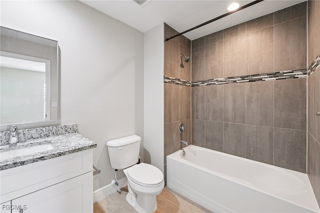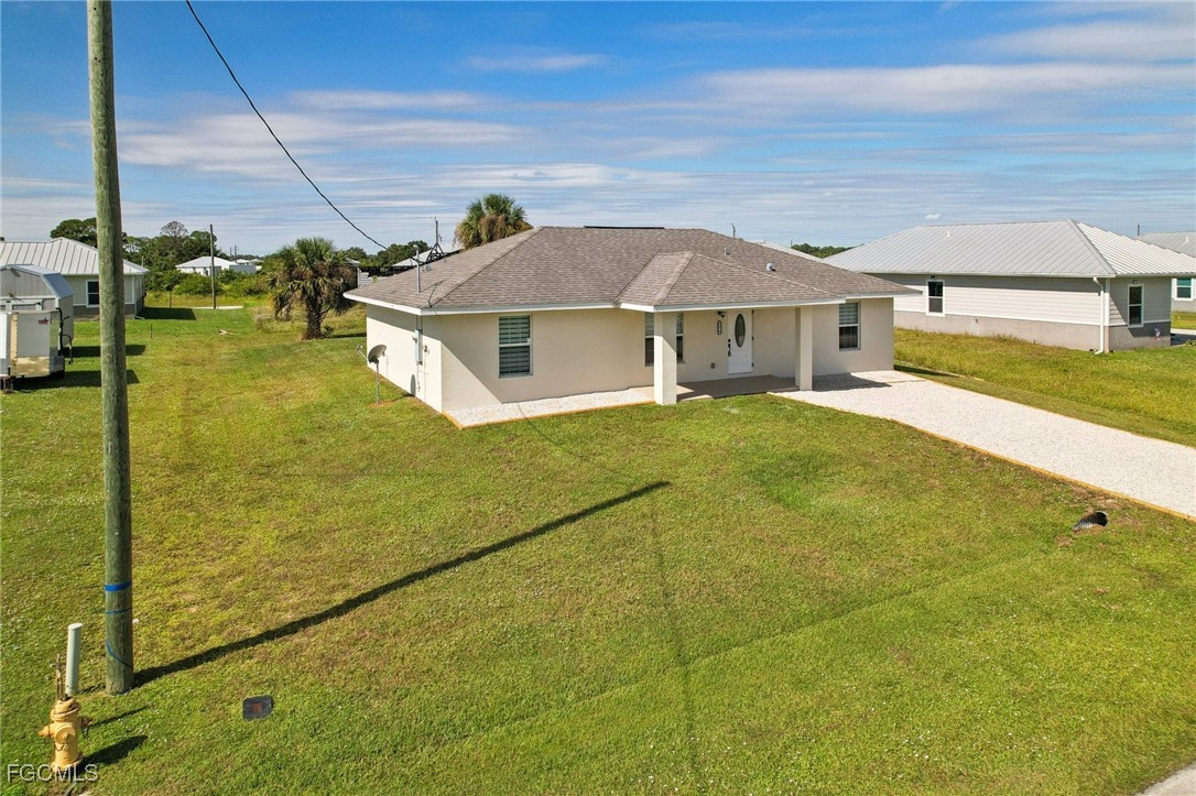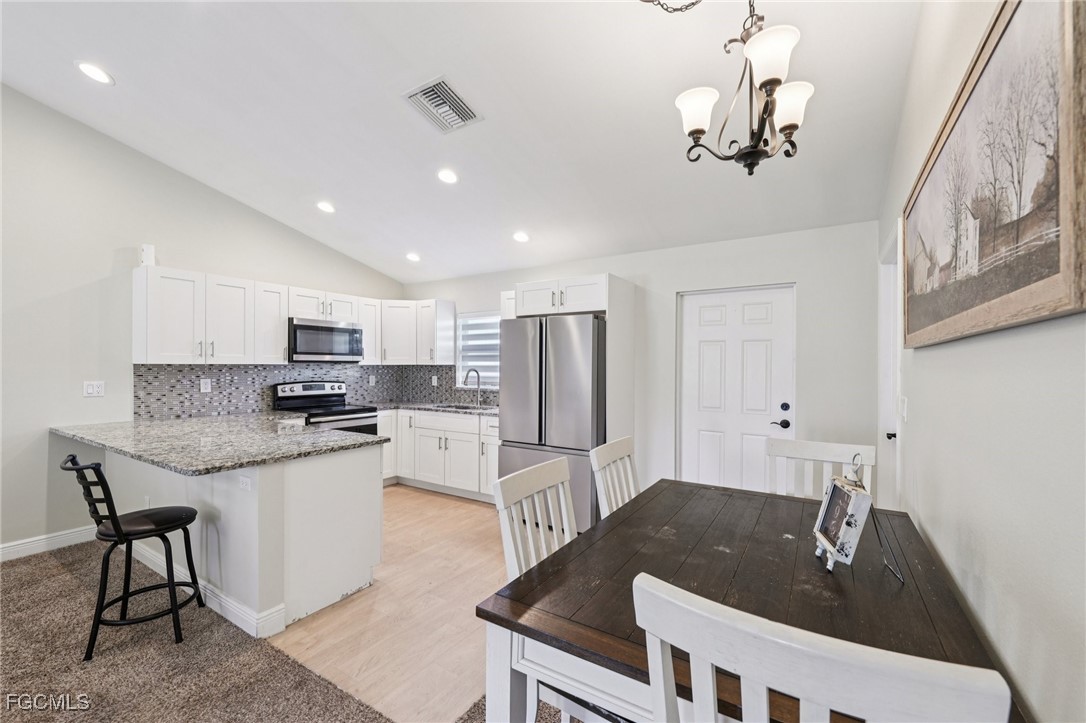 Beautifully updated 4-bedroom, 2-bath single-family home in a quiet, well-kept neighborhood. Recent upgrades include a redone driveway, fresh interior and exterior paint, new exterior lighting, and low-maintenance landscaping with decorative rock and stepping stones. The kitchen offers stainless steel appliances, soft-close cabinets, and granite countertops, also found in both bathrooms. Additional features include 9' vaulted ceilings and a full laundry room. Inside, enjoy new light fixtures, updated window shades, a modern backsplash, new bathroom mirrors, and a newer refrigerator. With an open floor plan, comfortable living spaces, and neutral finishes, this home is move-in ready and ideal for anyone seeking a peaceful setting with modern updates already completed. This property has been lovingly maintained and reflects pride of ownership. It’s perfect for buyers looking for an updated home in a quiet, family-friendly area close to schools, parks, and shopping.
