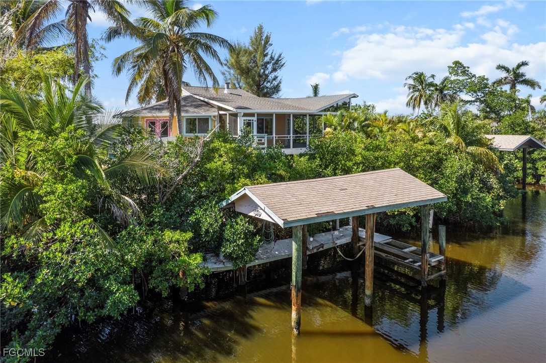 Welcome to 3660 Schooner LN in St. James City on Pine Island - a rare island-paradise where deep water, direct-Gulf access meets old Florida charm. With approximately 240 ft of waterfront, THE ENTIRE CORNER! dual boat docks with a lift, Ample outdoor space on a generous 0.36-acre lot, this three bedroom stilt home is built for adventure and relaxation alike.Studio suite with full kitchen on main level 509 sqft. Perfect for guest or AIRBNB! From Seasonal guest to Tarpon fisherman this could book almost year round! The elevated build lends timeless appeal and welcomes cooling gulf breezes as you enjoy your favorite beverage on the lanai. From here, you're minutes by boat to the open waters of Pine Island Sound and the Gulf; Just minutes to Sanibel and Captiva's famed beaches. Whether you're boating, fishing, beaching or simply soaking in the sunset, this is Island living at it's finest. Come live the good life - Bring your boat & Golf cart. This is what you have been waiting for.