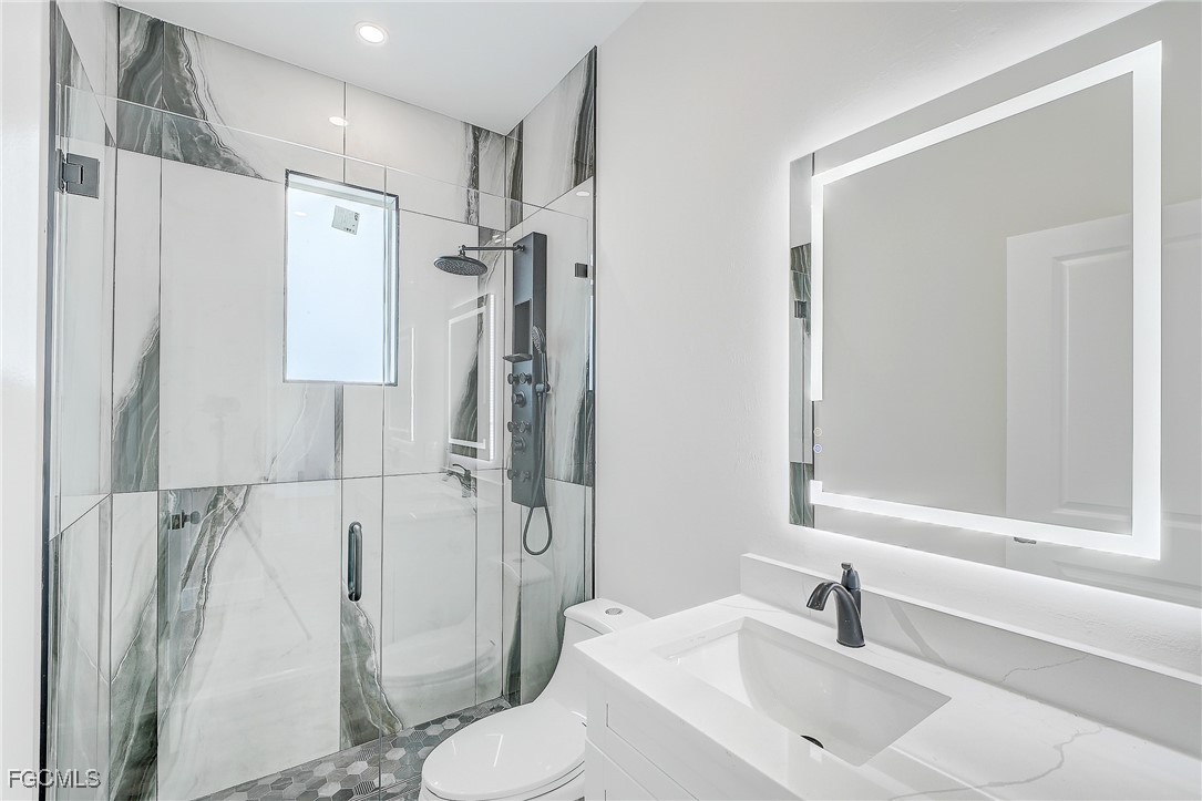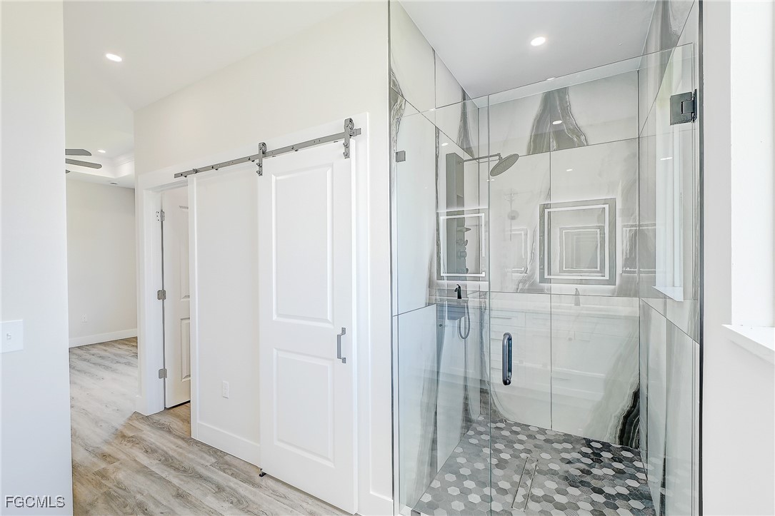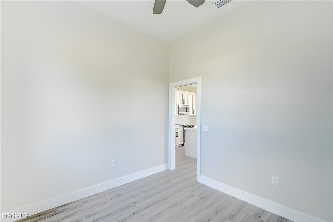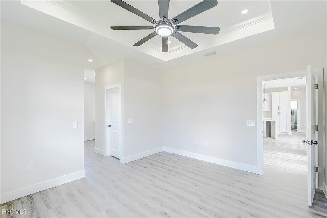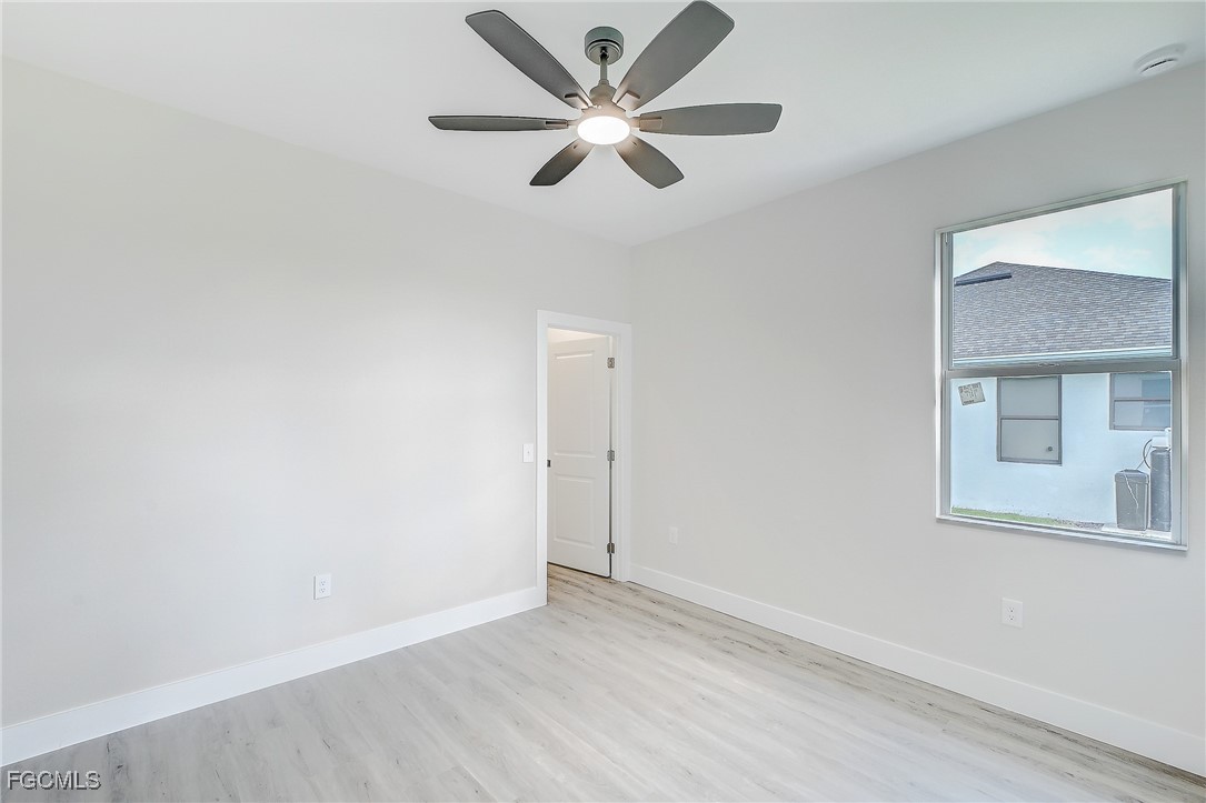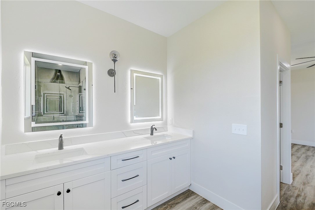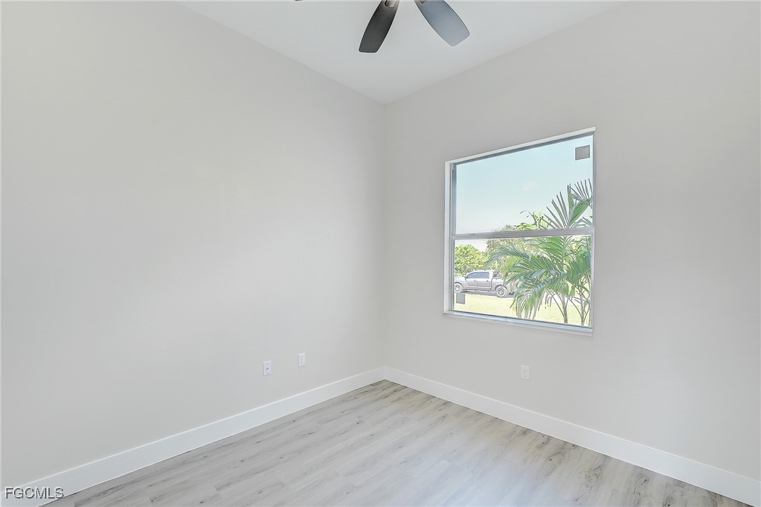 Welcome to this brand-new home situated on a corner lot in a SW Lehigh Acres neighborhood. Offering 3 spacious bedrooms, 1 Den/office, 2 stylish bathrooms, and a meticulously designed living space that perfectly combines modern aesthetics with functionality. The open-concept layout has high tray ceiling and is filled with natural light from the expansive impact-resistant windows and French doors, creating a bright and airy atmosphere. The kitchen is a true standout, featuring sleek quartz countertops and backsplash, a waterfall island with trendy pendant lighting, and premium stainless-steel appliances. Luxury vinyl plank flooring flows throughout, complementing the contemporary design, perfect for entertaining. The master suite is a true retreat, complete with a dual-sink vanity, a spacious walk-in shower with a frameless glass door, and a stylish barn door to the toilet room for privacy. LED-lit mirrors and modern touches enhance the refined space. Enjoy outdoor living year-round on the covered lanai. Additional features include a 2-car garage with a motorized door for easy access and ample storage space. This home offers the perfect blend of comfort, style, and convenience. NO HOA and NO FLOOD INSURANCE. Be the first to call this beautiful, brand-new home yours—schedule your private showing today!. Pictures with furniture are virtually prepared for illustrative purposes only.