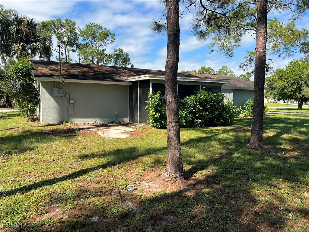 If you’re house-hunting for an affordable 2-bedroom, 2-bath home with a 1-car garage, screened lanai, city water, and tile flooring throughout, look no further than 222 Robert Avenue. With tons of charm and smart updates, this Lehigh Acres home sits on a quarter-acre corner lot in an established neighborhood just east of Joel Blvd. This location is only a 3 minute drive from the new Aldi with loads of local amenities nearby, too. Inside the home, you’ll find a bright, open floor plan with tile flooring throughout, a roomy kitchen with plenty of cabinets, and a sunny window over the kitchen sink. You'll love the screened lanai that overlooks the backyard. The home features a split-bedroom layout for privacy. The owner’s suite includes two bright windows, a large closet, and an updated ensuite bath with a tub/shower combo. The guest bedroom is generously sized with its own closet and easy access to the full hall bath. Nearly every room has a ceiling fan, and the attached garage offers convenient laundry hookups. The home was updated with impact windows and a sliding glass door in 2020, plus a fresh exterior paint job in recent years. Situated on a quarter-acre lot with mature trees out back, this move-in-ready ranch is an ideal property.