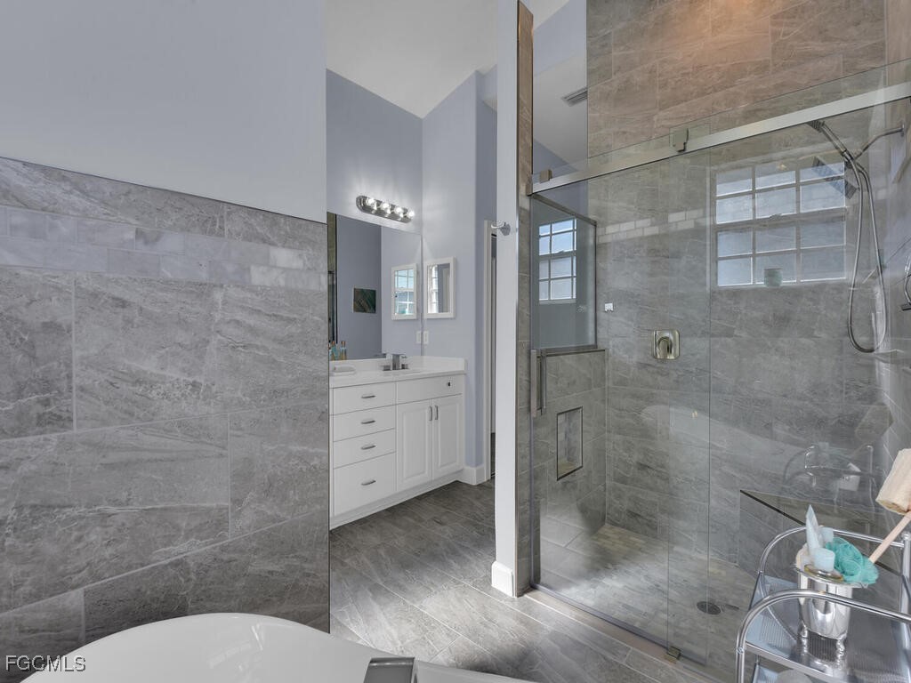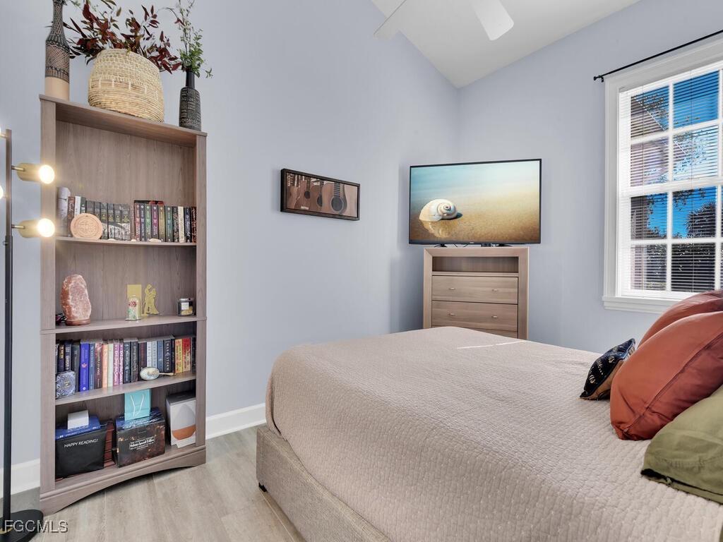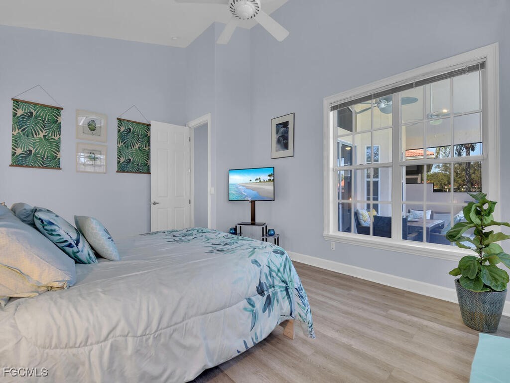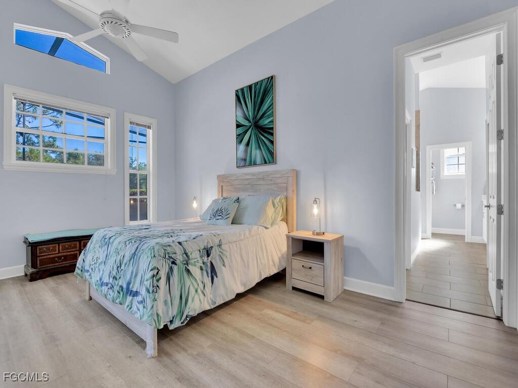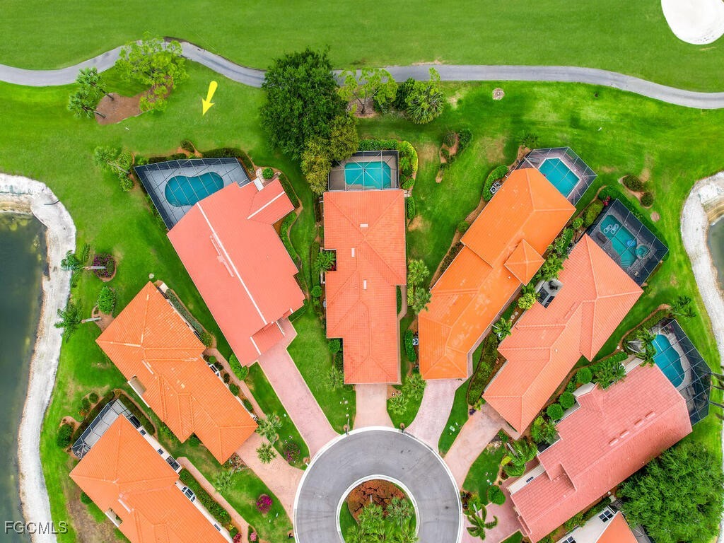 Elegant semi-custom 3-bedroom + den/office, 2-bath home overlooking the the first tee box of the award-winning Tom Fazio–designed golf course at The Club at Gateway with rear water view. This beautifully maintained residence features a roof replacement in 2024, cathedral ceilings, LVP flooring throughout, and a newly refreshed kitchen with quartz countertops, modern sink, and stainless steel appliances (2024). Enjoy renovated baths, a versatile den/office, and seamless indoor-outdoor living with a screened lanai, privacy screens (2024), and private pool with new filtration system (2024) and pump (2025). Additional upgrades include a hurricane-rated garage door (2024) and HVAC (2021). NO FLOOD INSURANCE required. Live the luxury golf lifestyle in one of Southwest Florida’s premier gated communities.