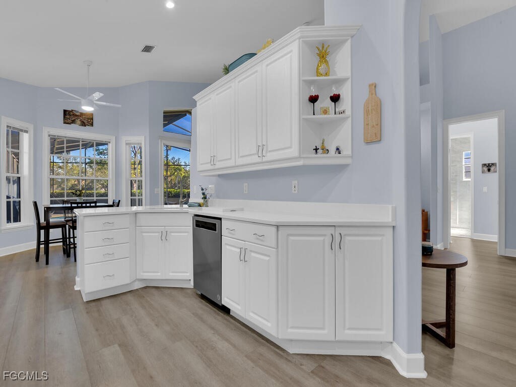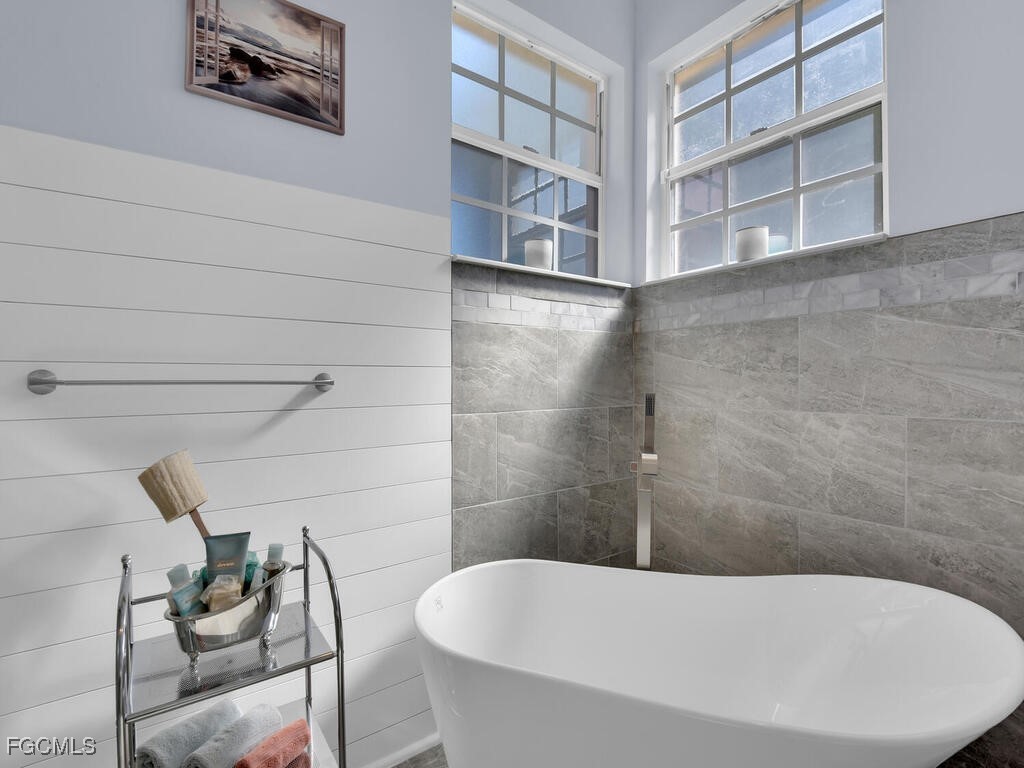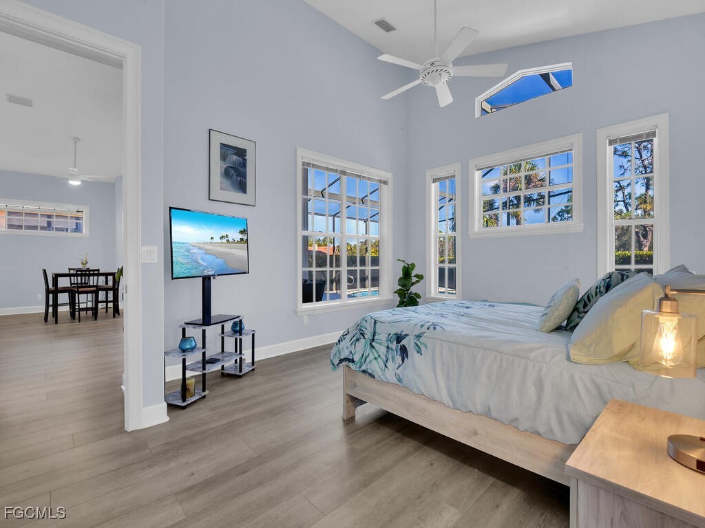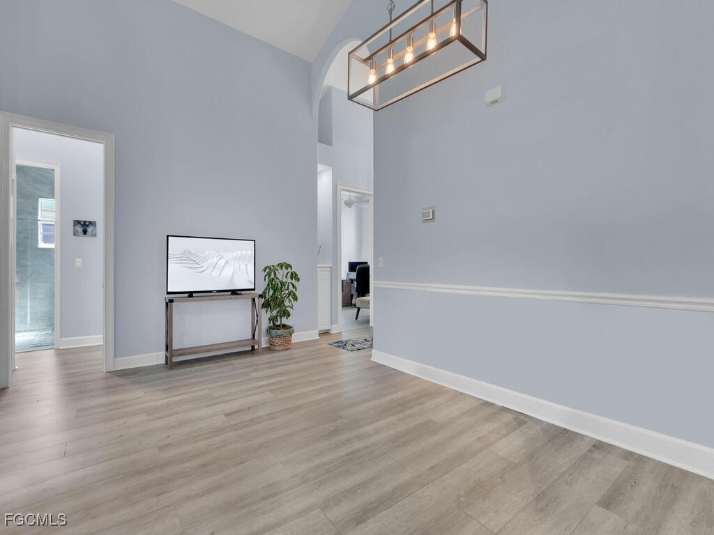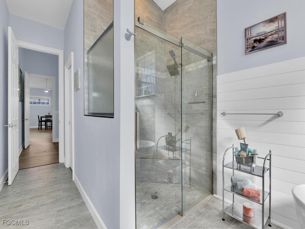 Elegant semi-custom 3-bedroom + den/office, 2-bath home overlooking the the first tee box of the award-winning Tom Fazio–designed golf course at The Club at Gateway with rear water view. This beautifully maintained residence features a roof replacement in 2024, cathedral ceilings, LVP flooring throughout, and a newly refreshed kitchen with quartz countertops, modern sink, and stainless steel appliances (2024). Enjoy renovated baths, a versatile den/office, and seamless indoor-outdoor living with a screened lanai, privacy screens (2024), and private pool with new filtration system (2024) and pump (2025). Additional upgrades include a hurricane-rated garage door (2024) and HVAC (2021). NO FLOOD INSURANCE required. Live the luxury golf lifestyle in one of Southwest Florida’s premier gated communities.