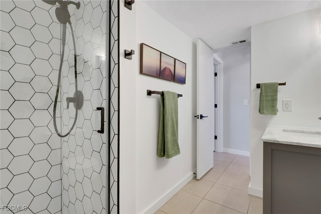 The spacious primary suite offers a peaceful retreat with a large walk-in closet and a private updated bath with a sleek walk-in shower. Two guest bedrooms on the opposite side of the home ensure privacy for family or visitors, with their own stylish bathroom, fully remodeled.