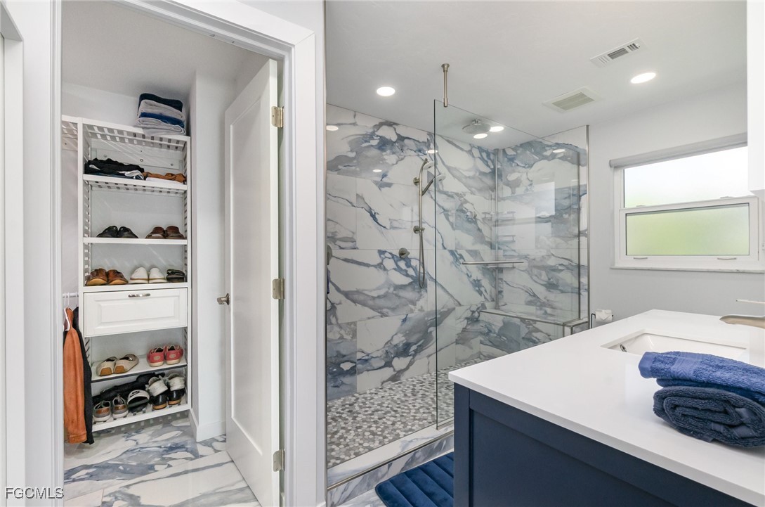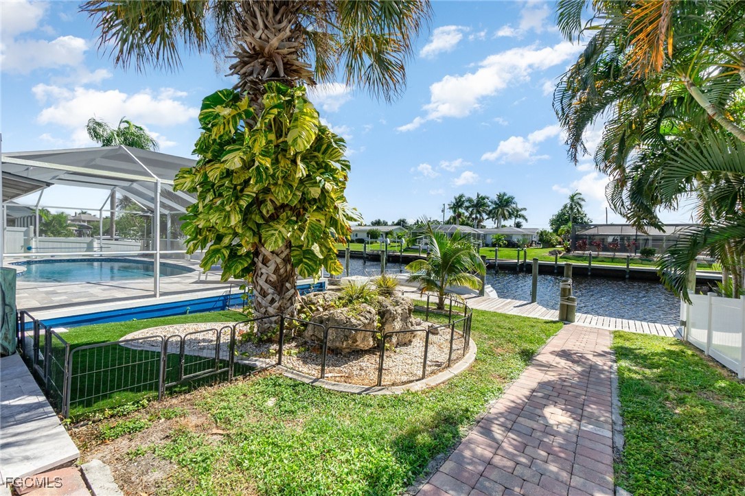 LOOKING FOR A UNIQUE HOME IN A TRADITIONAL FLORIDA SETTING? YOU HAVE JUST FOUND IT! Traditional on the outside—elegant and contemporary on the inside—this artistically stunning, custom-designed home offers a coastal-style retreat filled with quiet sophistication. This south-facing home captures the southwest Florida sunshine, blue skies, and warm breezes, creating a bright, uplifting space that inspires and energizes. Entertaining is effortless with the open flow between the kitchen, family room, and poolside gathering areas—ideal for both relaxation and connection. The newly renovated kitchen is a showpiece, featuring clean-lined shaker cabinetry with 15-inch-deep soft-close drawers, gleaming quartz countertops, a chic backsplash, and generous storage. The Butler’s Pantry adds additional workspace, cabinetry, and a wine cooler—perfect for hosting any occasion. The spacious primary suite offers direct access to the lanai and pool, an elegant ensuite bathroom, and a large walk-in closet with custom organizers. Two additional bedrooms share a beautifully updated second bathroom. Step outside to your private oasis where the screened lanai features multiple sitting and lounging areas as well as a 2020 remodeled saltwater pool with a sun shelf, resurfaced interior, and travertine paver deck. Other notable features include a metal roof (2020), cedar outdoor ceilings, double-pane windows and doors (2020), new blinds, 50-amp RV hookup, surge protection, fresh interior and exterior paint, fenced yard with dual gates, and Kevlar hurricane panels for full-home protection. All this on a sailboat access canal (no bridges/no locks) with a captains walk dock, cantilever boat lift and a floating kayak dock. Effortlessly enjoy life on the water with a very short boat ride to the Caloosahatchee River and the Gulf of Mexico. The quality and uniqueness of this home is dreamy. Located in peaceful Waterway Estates, a pet-, boat-, RV-, and rental-friendly community with no HOA, this home is perfect as a permanent residence, vacation retreat, or investment property. Conveniently close to shopping, beaches, golf courses, water sports, and entertainment, this one-of-a-kind waterfront home embodies the best of Florida living.