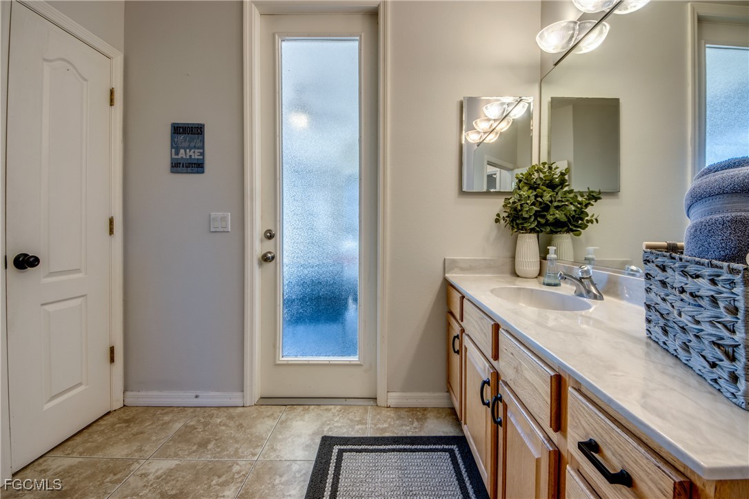 The primary suite provides direct pool access, dual walk-in closets, and a spa-style bathroom with dual vanities, a separate shower, and a soaking tub. Three additional bedrooms offer flexible use for guests, family, or office space.