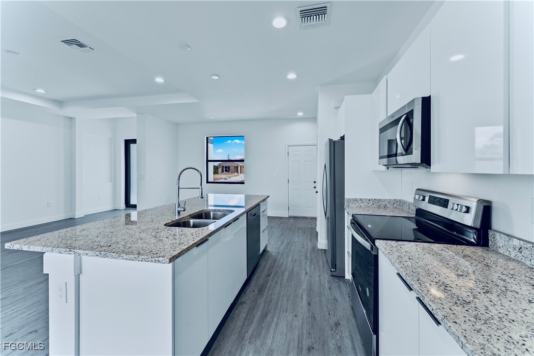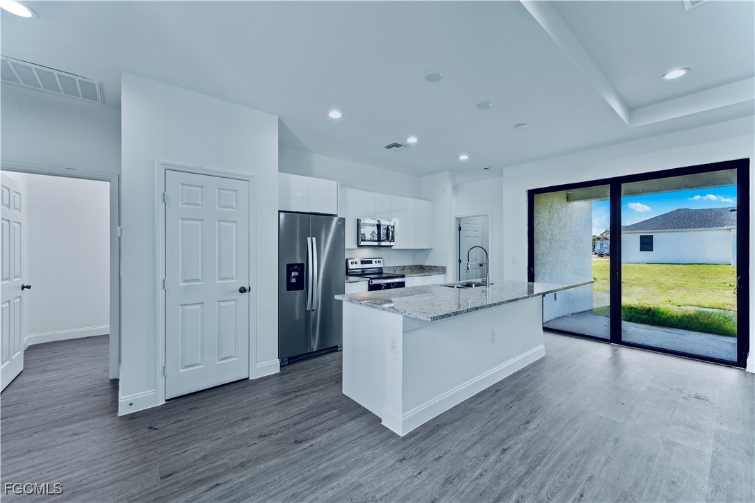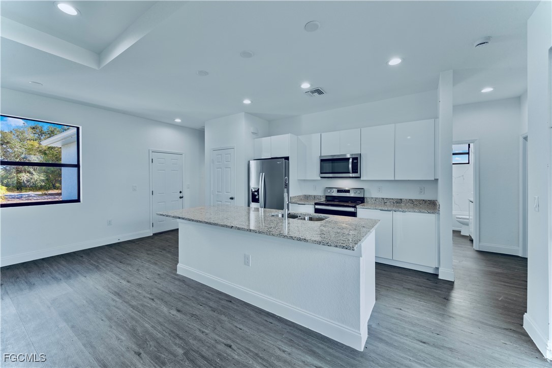 Welcome to this MAGNIFICENT (2024) BUILT 3 bed 2.5 BATH completed Brand NEW CONSTRUCTION home nestled away on an OVERSIZED CORNER lot. This open floor plan spotlights an enticing LUXURY vinyl flooring throughout, Admirable double glass door entry & tray ceilings for a GRAND elevation, gorgeous QUARTZ countertops with an awarding breakfast bar, and MODERN GLOSS European cabinetry. It highlights IMPACT WINDOWS, an impressively TILED walk-in showers, rewarding vanities with Vessel sinks, and a spacious master with dual closets. It also features STAINLESS STEEL appliances, premium fixtures, recessed lighting, dual closets, an Irrigation system, laundry under air, and a covered back patio with plenty of room for a pool! This peaceful property is located on a quiet street just minutes from all major amenities. Schedule your showing today!