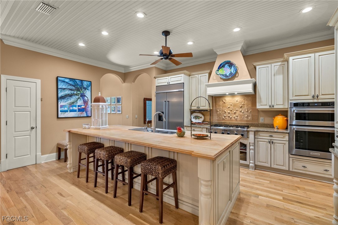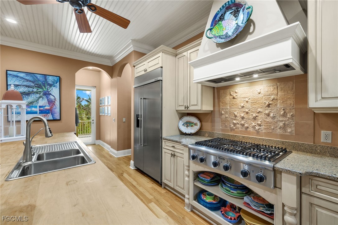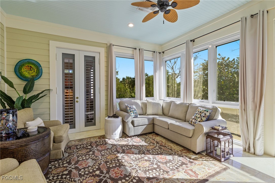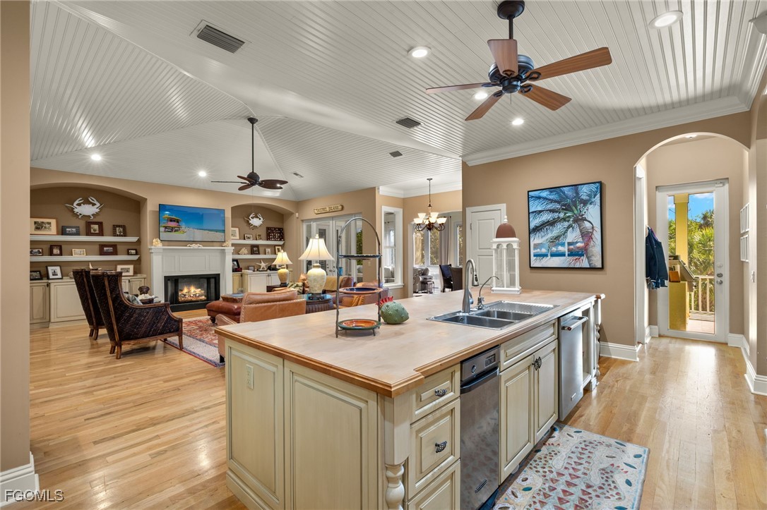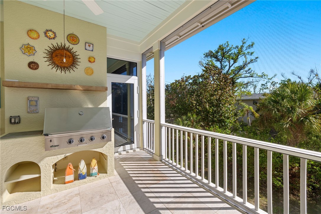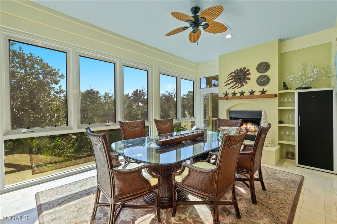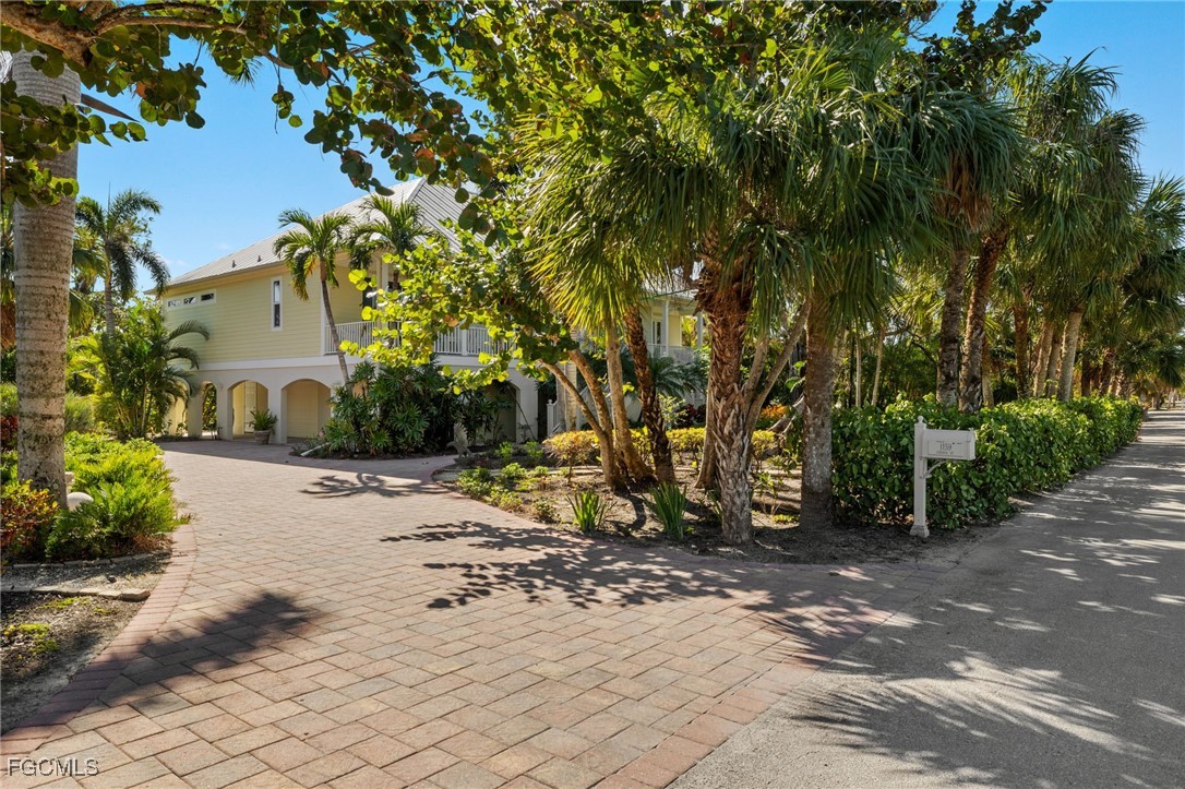 Located on a quiet street on Sanibel Island's desirable east end, this 3-bedroom, 3-bathroom split floor plan home exudes Southern charm with its inviting front porch and thoughtful design. The open-concept living room and chef's kitchen, complete with high-end appliances and a cozy fireplace, create the perfect space for entertaining. High ceilings with wood details and custom moldings enhance the home's character, while a charming sunroom offers a tranquil spot to relax.