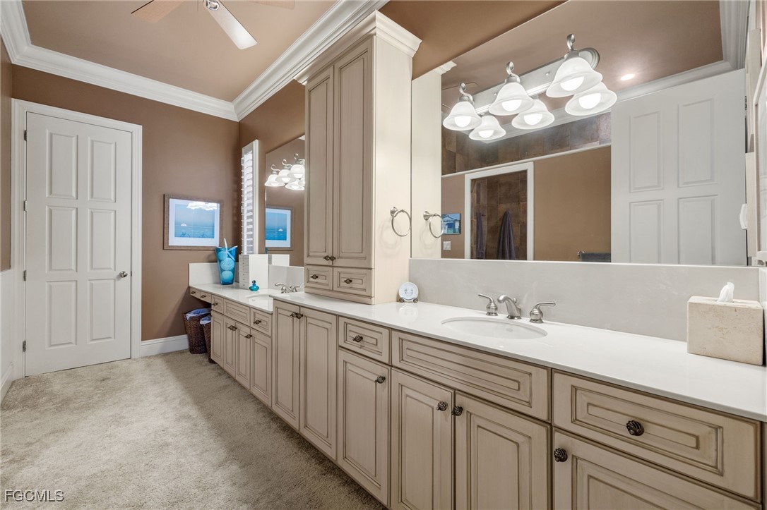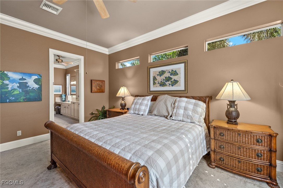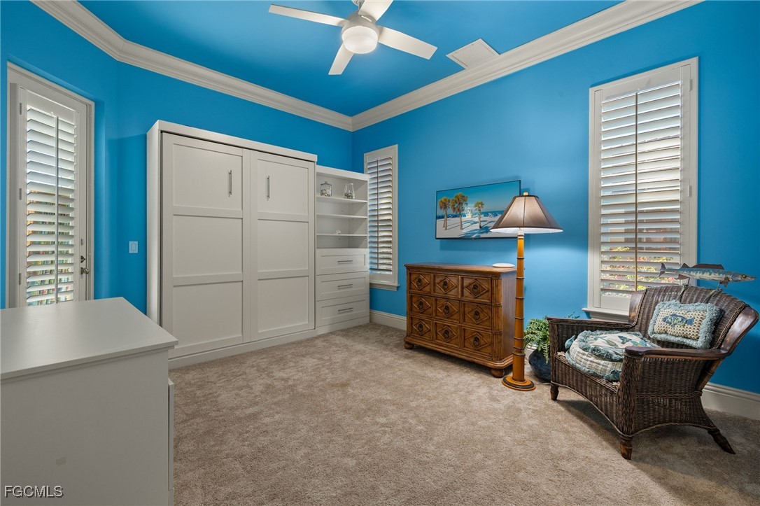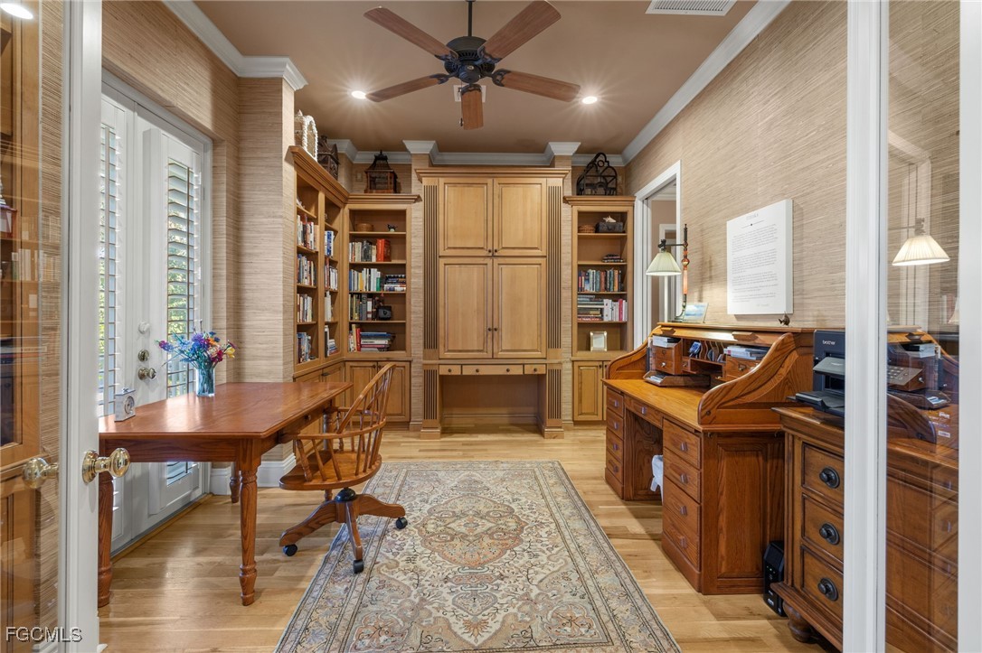 The spacious primary suite features a luxurious bathroom and a generous walk-in closet, providing a private retreat. The guest area is thoughtfully designed for privacy, with both bedrooms offering ensuite baths. Two home offices with custom built-ins make this home ideal for remote work or hobbies.