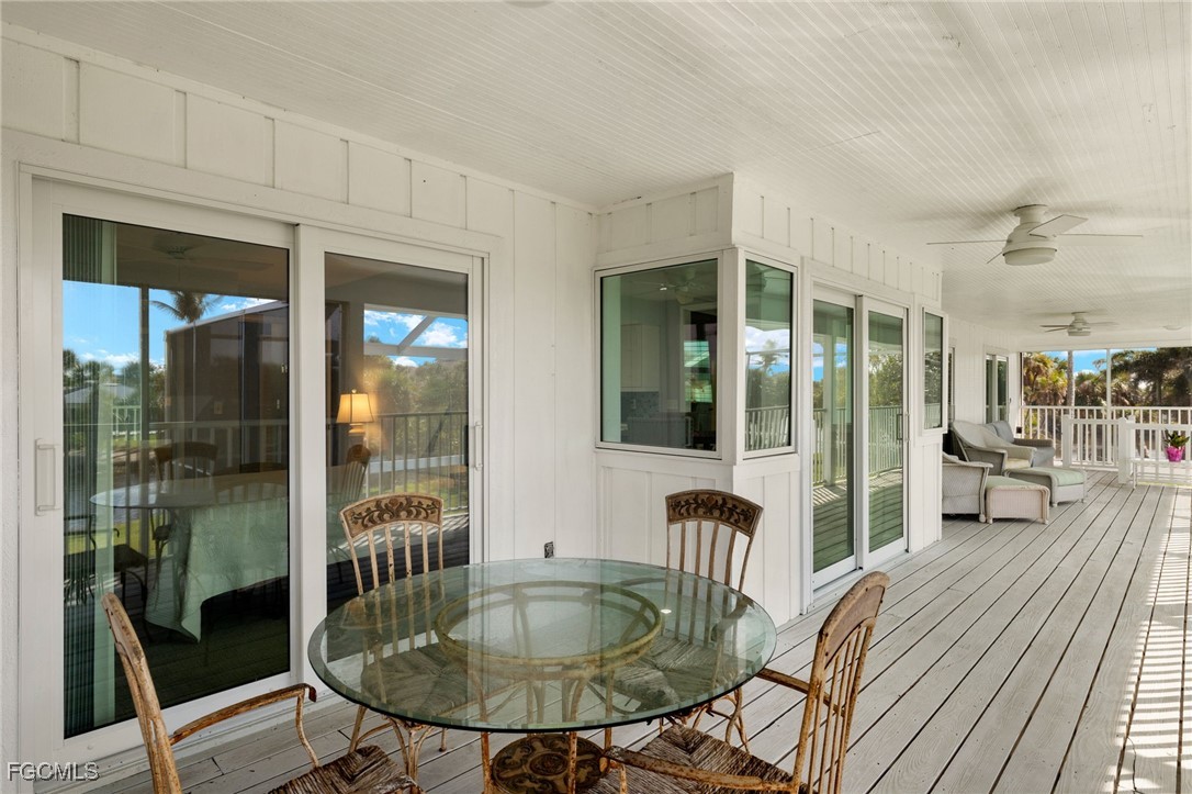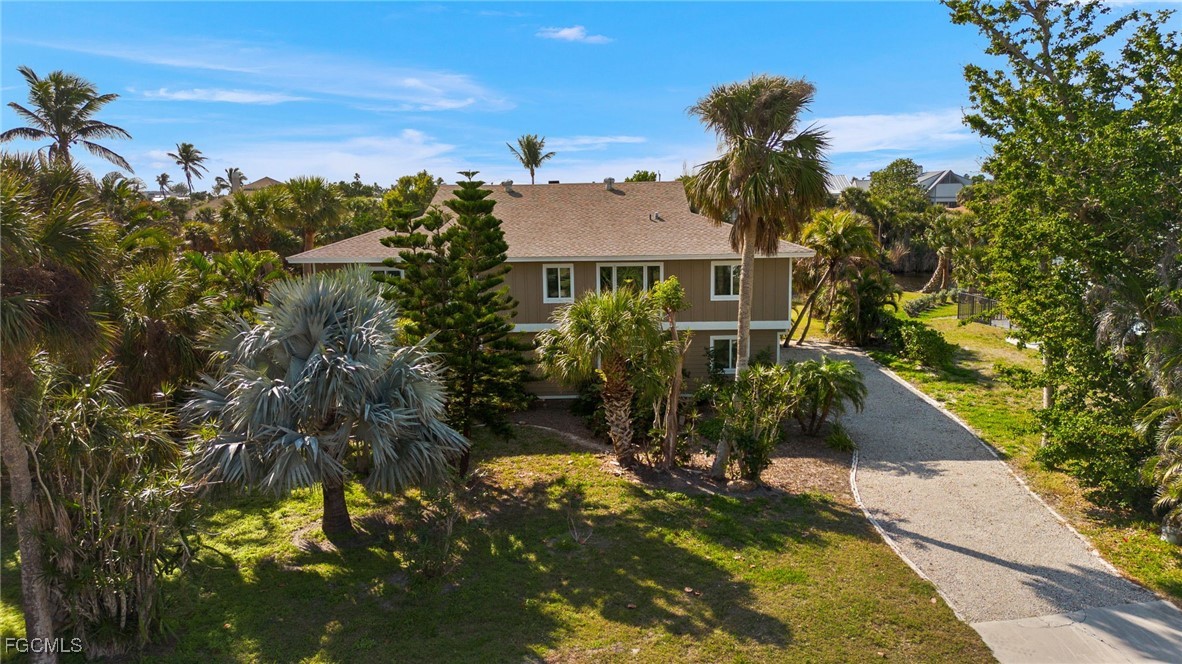 Welcome to this beautiful raised home in the highly popular East Rocks neighborhood, just a short walk from the stunning Gulf beaches. Tucked away on a quiet cul-de-sac and overlooking a serene lake, this 3-bedroom, 2-bath stilt home offers ultimate privacy and breathtaking views. Upon entering, you are greeted by a spacious foyer with stairs leading up to the open-concept living and dining areas. The living room, kitchen, primary bedroom, and one guest room all feature sliders that lead to a spacious porch, perfect for relaxing and enjoying the picturesque views of the screened pool area and lake beyond. With cathedral ceilings, abundant natural light, and elegant tile flooring, the home exudes an airy, bright ambiance. The updated kitchen features sparkling white marble countertops, an imported glass tile backsplash, custom white cabinetry, and stainless-steel appliances. This split floor plan provides the perfect balance of privacy and flow. The primary suite occupies one side of the home, creating a private retreat. It boasts a spacious walk-in closet and a luxurious en-suite bathroom with premium finishes. The two guest rooms, on the opposite side, offer plenty of space and comfort. From nearly every room, enjoy sweeping lake views and stunning sunsets. The generous porch flows seamlessly to the heated pool area, creating an ideal space for entertaining, lounging, and soaking up the sun. The lower level offers abundant storage and access to the two-car garage, ensuring convenience and practicality. Situated on a large, private lot, this home provides the perfect escape with tranquil views and ample outdoor space. Added amenities include a new roof and impact windows for peace of mind. This home blends modern luxury with a prime location, making it the ultimate retreat. Don’t miss the opportunity to make this exceptional property yours!