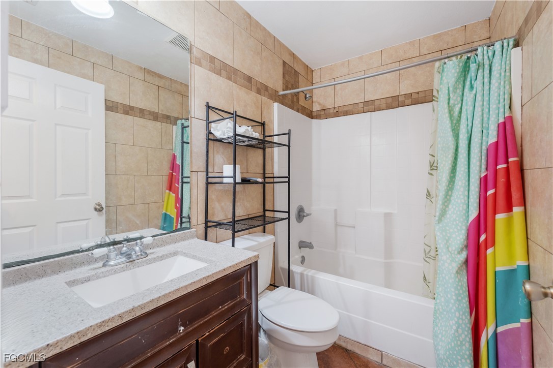 The interior features beautiful, easy-to-maintain tile flooring throughout, providing a clean, modern, and true Florida aesthetic. Outside, the large yard is a tropical paradise, boasting lush St. Augustine grass and mature fruit trees, creating a perfect private oasis.
