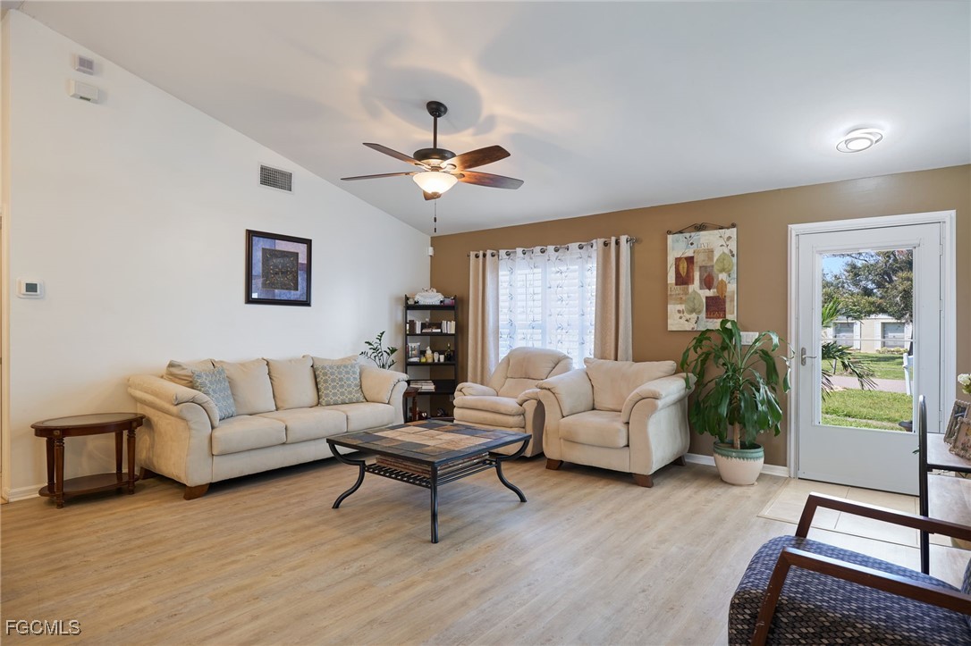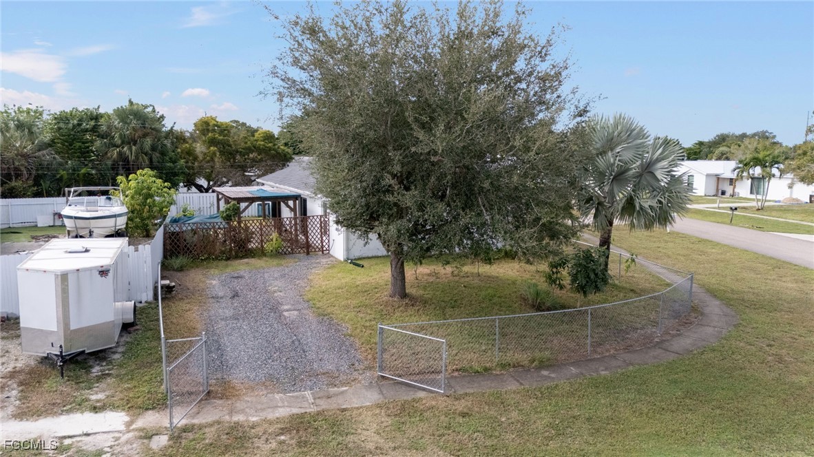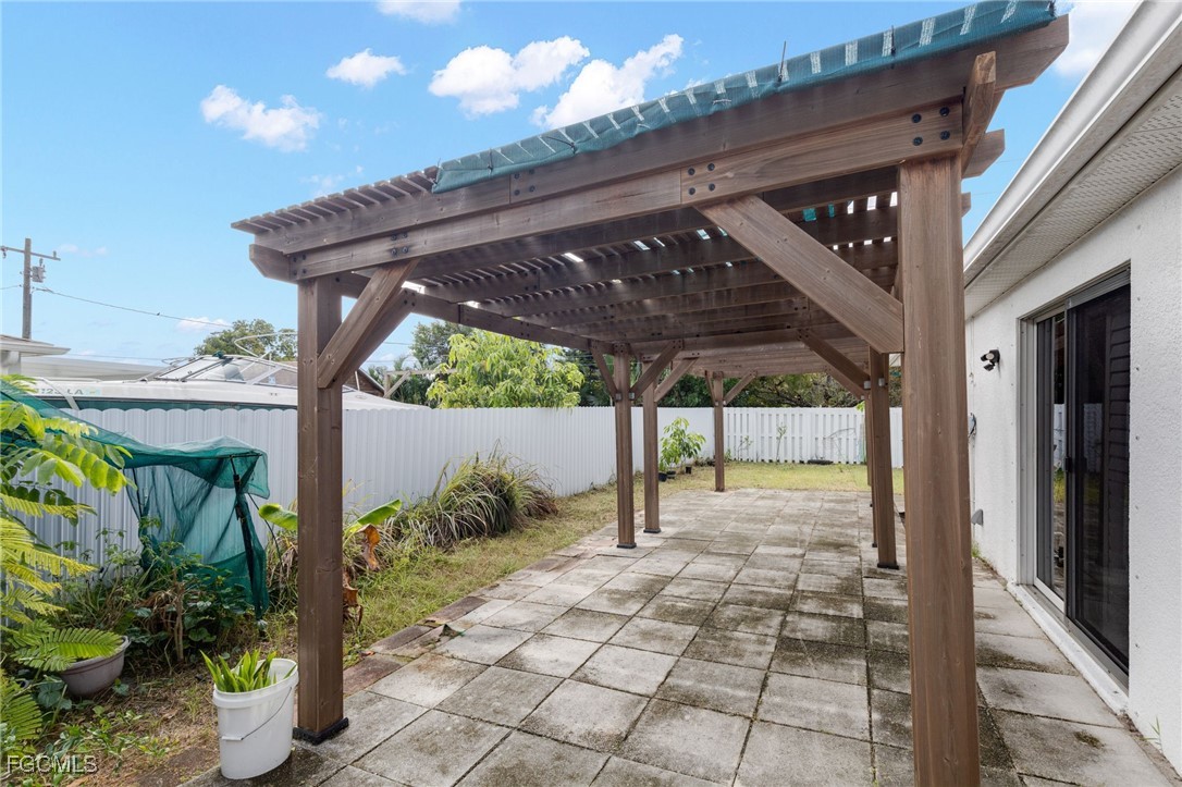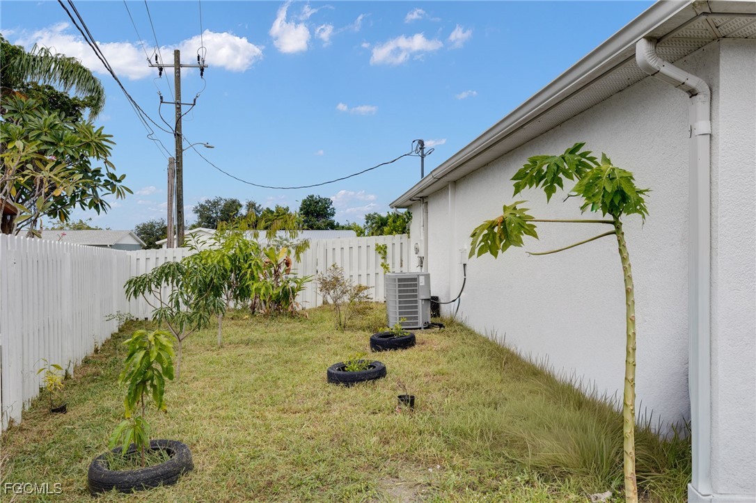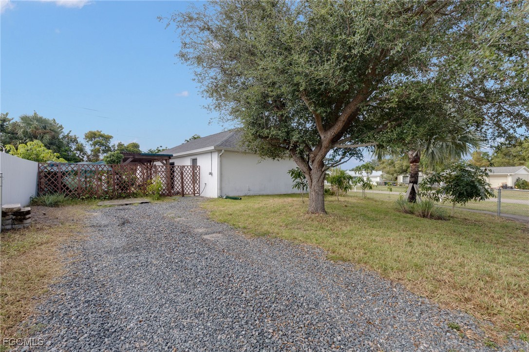 Welcome to your new home in North Fort Myers just seconds from Cape Coral! This beautifully maintained 2007-built home offers 1,404 sq. ft. of comfortable living space with three spacious bedrooms featuring tile and laminate flooring throughout. Enjoy the convenience of two full bathrooms and a generous two-car garage for all your storage needs. Have an RV, boat, trailer, or food truck? You’ll love the fenced-in dedicated parking area with a 220-amp connection, perfect for powering up your setup. There’s plenty of room for your recreational toys or work vehicles, all safely tucked away behind the fence for added privacy and security. Peace of mind comes easy with a new roof installed in 2023, ensuring years of worry free living. Step outside and unwind under two charming pergolas surrounded by a lush tropical oasis. The backyard is truly a gardener’s paradise, bursting with fruit trees and tropical plants including multiple mango trees, a banana tree, pineapple plants, sugar cane, lemon grass, and more! It’s the perfect space to relax, entertain, or simply enjoy the serenity of nature. Best of all, this property is not in a flood zone and offers the perfect blend of comfort, functionality, and Florida charm. Don’t miss your chance to call this vibrant North Fort Myers retreat your own!