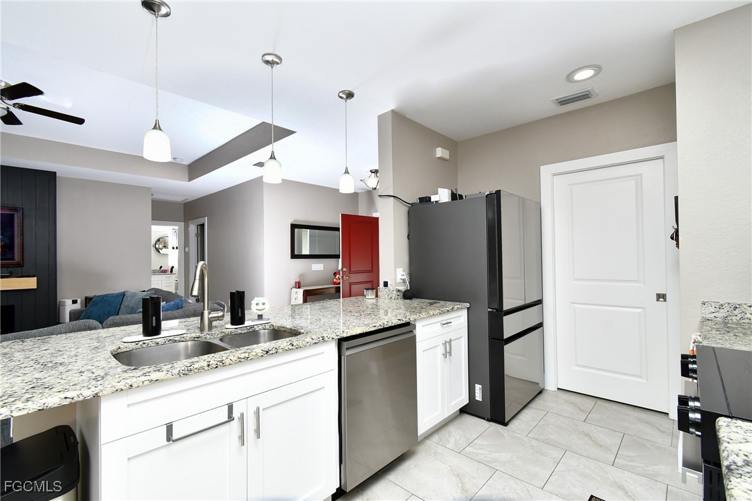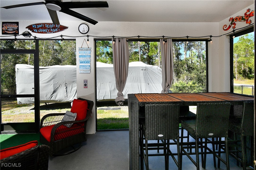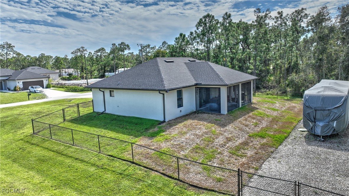 Better than new! Only 4 years young and all the bells and whistles are already added! Custom touches include a built in entertainment center with fireplace in the living room. A mini split A/C in the master bedroom for that little extra chill sleep. Sprinklers, LED color changing Govee lighting, butcher block countertop in the laundry room, a 50 AMP electrical hookup in the back yard for your RV, PLUS a dedicated RV parking spot inside the fence. The front porch is screened in as well as the oversized back lanai. Please see the attached extras list for more, yes more! There is a virtual tour attached, take a look. This is a super convenient location just off of S. Homestead, a couple of blocks from 82. Almost all of the homes are only a few years old or being built in the area. NO FLOOD insurance required.