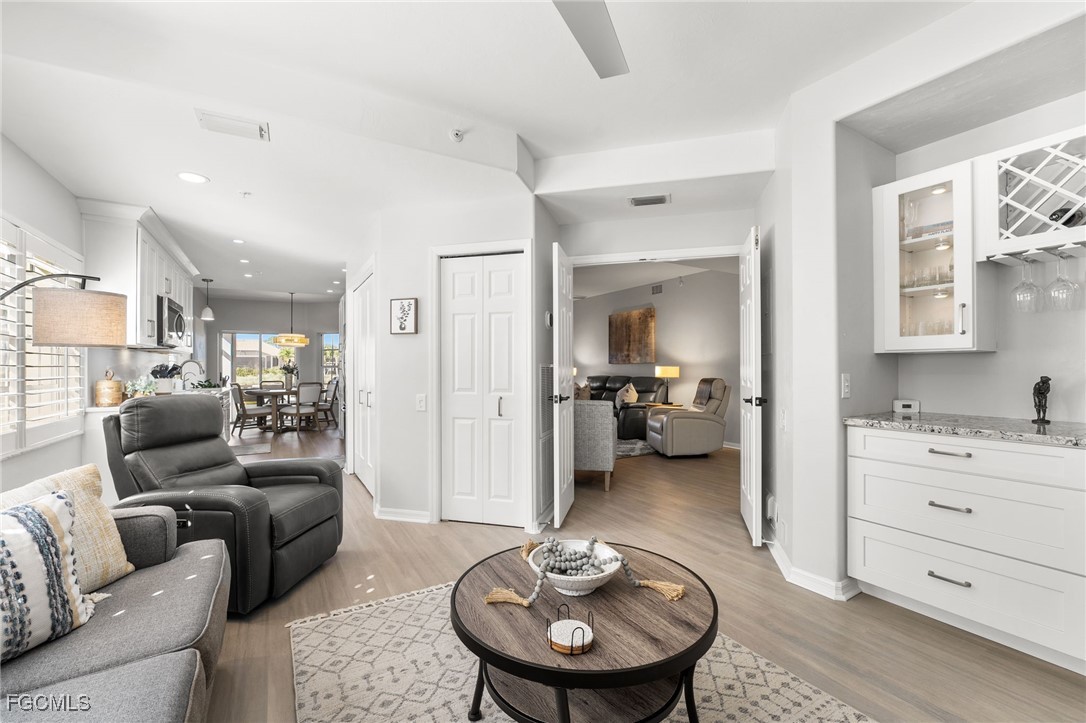You’ve worked hard. Now it’s time to LIVE WELL! And this FIRST-FLOOR END-UNIT in WORTHINGTON COUNTRY CLUB delivers the lifestyle upgrade you’ve absolutely earned—peace when you want it, play when you choose it, and a beautifully updated, move-in-ready home where you won’t lift a finger. The greatroom design draws you toward wide GOLF AND LAKE VIEWS overlooking the 13th tee—perfectly positioned to enjoy the scenery without worrying about stray shots. Your SPACIOUS SCREENED LANAI becomes the place where mornings start slowly and intentionally, with quiet breezes, and a front-row seat to herons gliding across the water. Sunsets are spectacular in your sanctuary, and it's your reminder that the pace of life has finally shifted in your favor. Inside, every meaningful improvement has already been handled. The 2025 remodeled kitchen is a highlight, offering shaker wood cabinets with soft-close features, pull-outs, under-cabinet lighting, quartz counters, and new stainless appliances. Whether you’re hosting friends, preparing something simple, or grabbing a quick snack before hitting the course, this space makes everything easier. The primary suite features tranquil views, a large walk in closet, and a beautifully remodeled master bath. The guest suite also includes a large walk in closet with built in organizers and and bathroom upgrades. A den off the kitchen provides flexible space for work, reading, hobbies, or an extra lounge area. To make life effortless, the home includes updated flooring, plantation shutters, updated lighting, a screened front entry, NEW no-see-um lanai screens, electric hurricane shutters on the lanai, accordion hurricane shutters on the windows, HVAC (2018) with UV light (2024), a new smart thermostat, and a DETACHED 1-CAR GARAGE with attic storage. Fresh, bright, clean and truly MOVE-IN READY—everything is complete, so you can simply unpack and enjoy. Worthington makes this lifestyle even better. Beyond its championship golf course, you’ll enjoy a beautifully updated clubhouse with dining options, a well-equipped FITNESS CENTER, HEATED POOL, TENNIS, PICKLEBALL, GATED SECURITY, and one of the most ACTIVE SOCIAL CALENDARS in Bonita Springs. And here’s the bonus that makes life even simpler: the charming Sherburne section of Worthington has its own neighborhood pool plus its own PICKLEBALL and TENNIS COURT—now that’s convenient! It’s like having a mini-resort just steps from your lanai, giving you effortless access to fun, fitness, and friendly social time without ever getting in your car. So ask yourself: What if this is the moment life becomes lighter, brighter, and a whole lot more fun? Most people who’ve worked as hard as you eventually realize that ease is not a luxury—it’s a reward. And opportunities like this first-floor, end-unit beauty rarely wait. Take the first step toward the lifestyle you’ve earned. Come see how effortlessly good life feels at Worthington. Opportunity is CALLING—book your private showing TODAY.