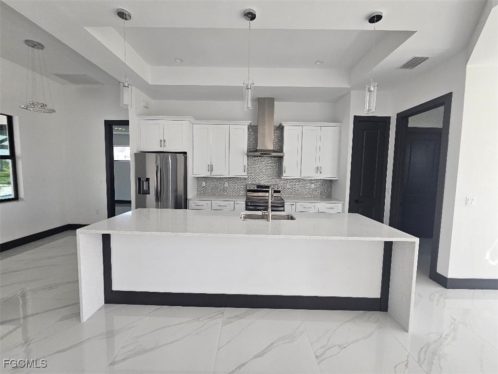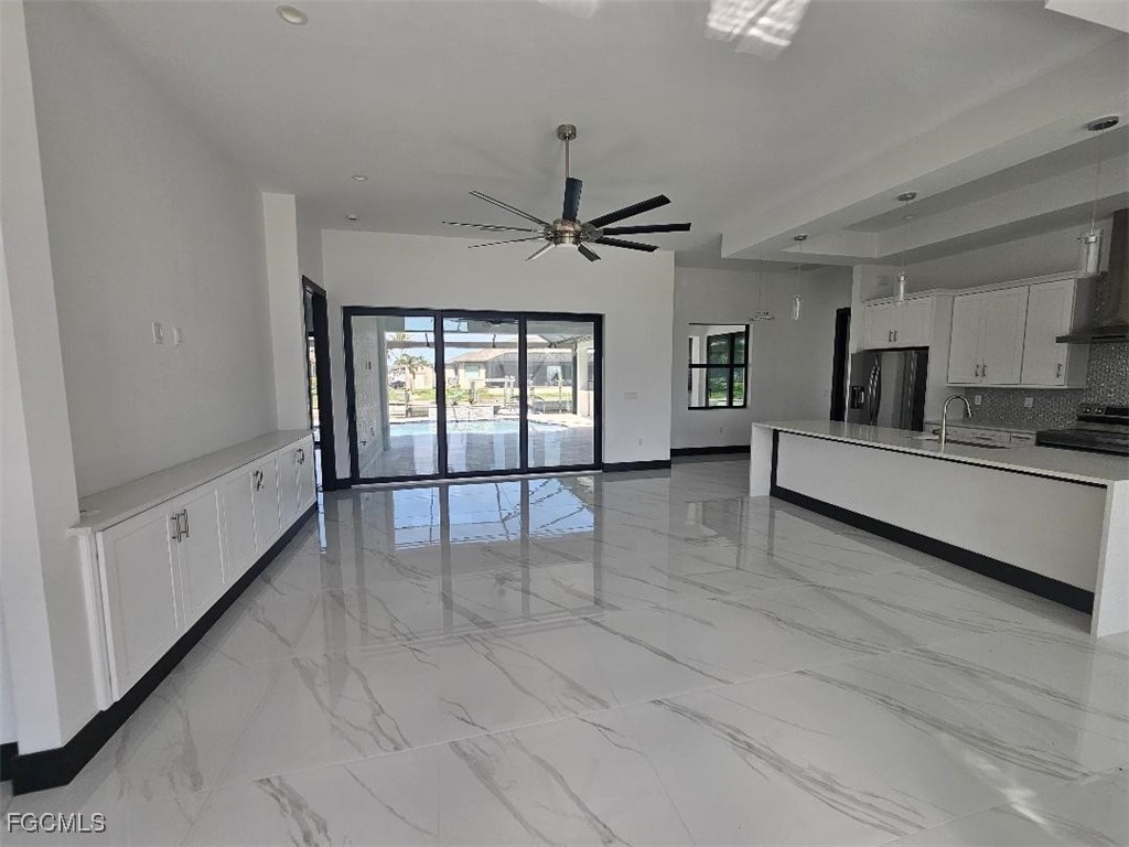 LUXURY CUSTOM DESIGN POOL HOME - Gorgeous 3 BR, 3 Bathroom, 2 Car Garage on salt water canal - New Construction Pool home. City Water & Sewer assessments outstanding only $1300 - Owner will pay at closing. Very quiet neighborhood with gulf access. The home creates an ideal balance between openness and privacy... No HOA, no subdivision, no restrictions. Tons of upgrades: Impact low E windows and doors. Sun package (Higher ceilings and more space for patio slider doors from both masters), 8’ sliders in living room and both master bedrooms, custom bathrooms, custom large porcelain floor tiles 32” x 32” throughout, 8’ interior doors, 51/4 Base Boards, 5’ salt deep pool, Oversize (15’ x 27), Picture window pool screen, Outdoor kitchen with stainless still appliances: fridge, bbq, ice maker, outside storage with drawers, and a double sink. An extra roofed extension with seating area, built-in benches. L-shaped bar and a big space for your TV. No pavers in the outside area but natural stone that will prevent your barefoot from burning. Complete outdoor kitchen and an air-conditioned full bath including shower. Close to Downtown, Yacht Club, Tarpon Point & Cape Harbor. House is under full warranty!!
