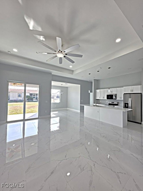 The open-concept kitchen is designed for the modern lifestyle, boasting all the necessary appliances (such as a refrigerator, microwave, dishwasher and range), often including stainless steel finishes and granite countertops, perfect for daily use and entertaining.
