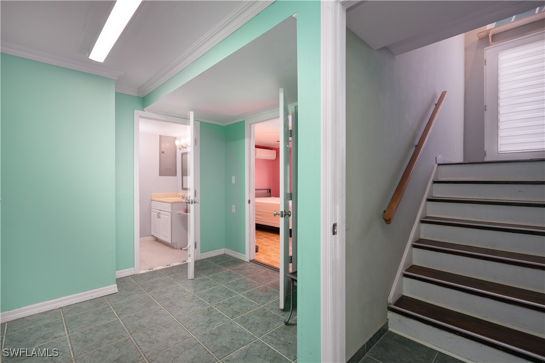 Downstairs, the screened-in area beneath the home creates a spacious and breezy retreat for entertainment. Host poolside parties, enjoy quiet afternoons with a book, or get creative with a shuffleboard court on the concrete slab. There's ample room for games or activities, maybe yoga by the pool—plus a two-car garage, storage room/shop, and half bath on the lower level.
