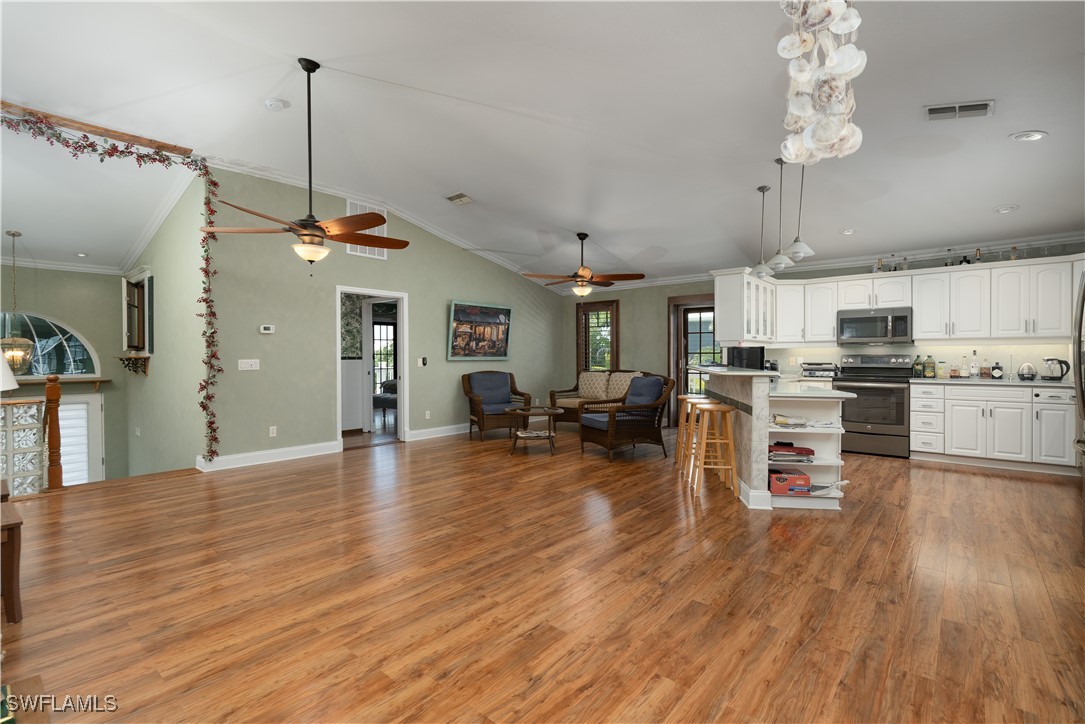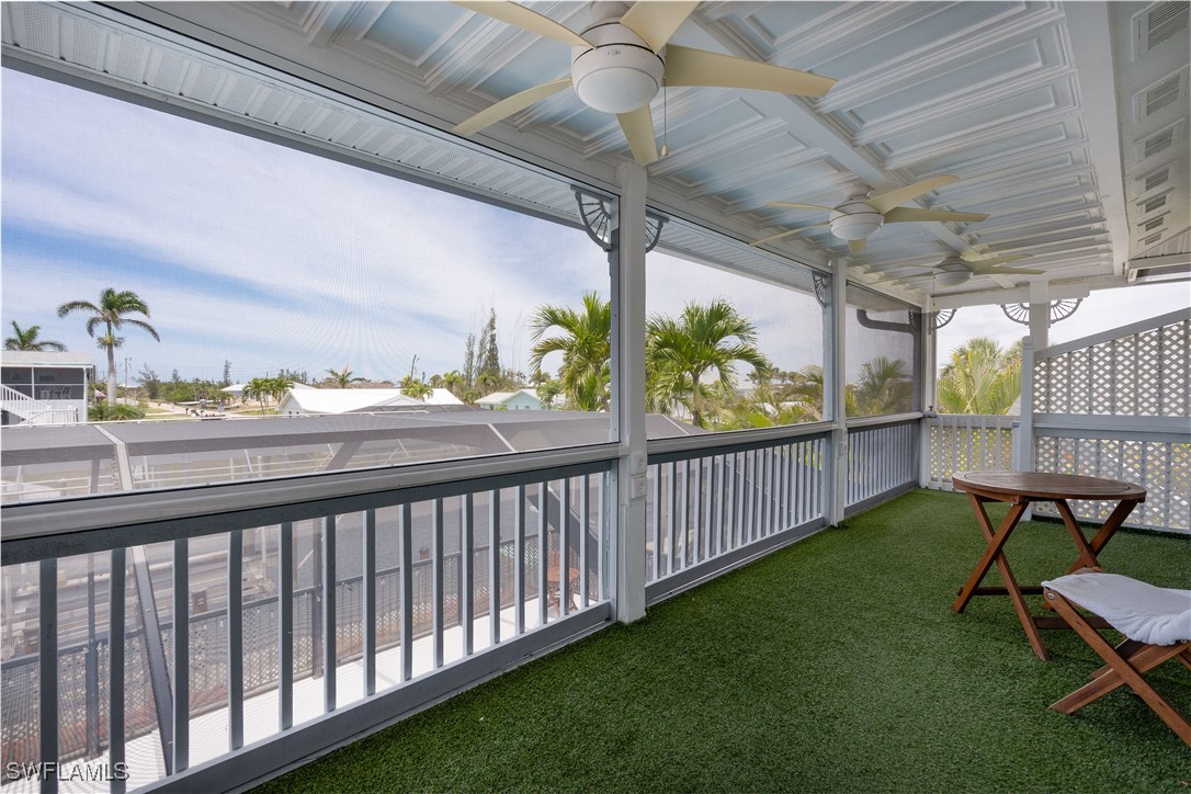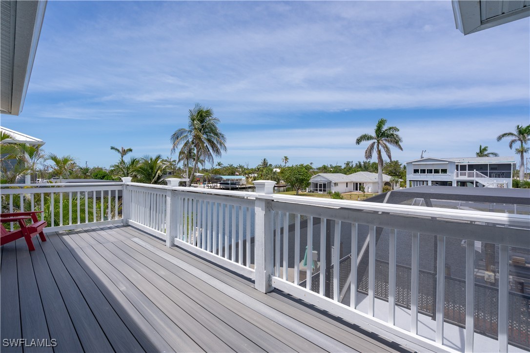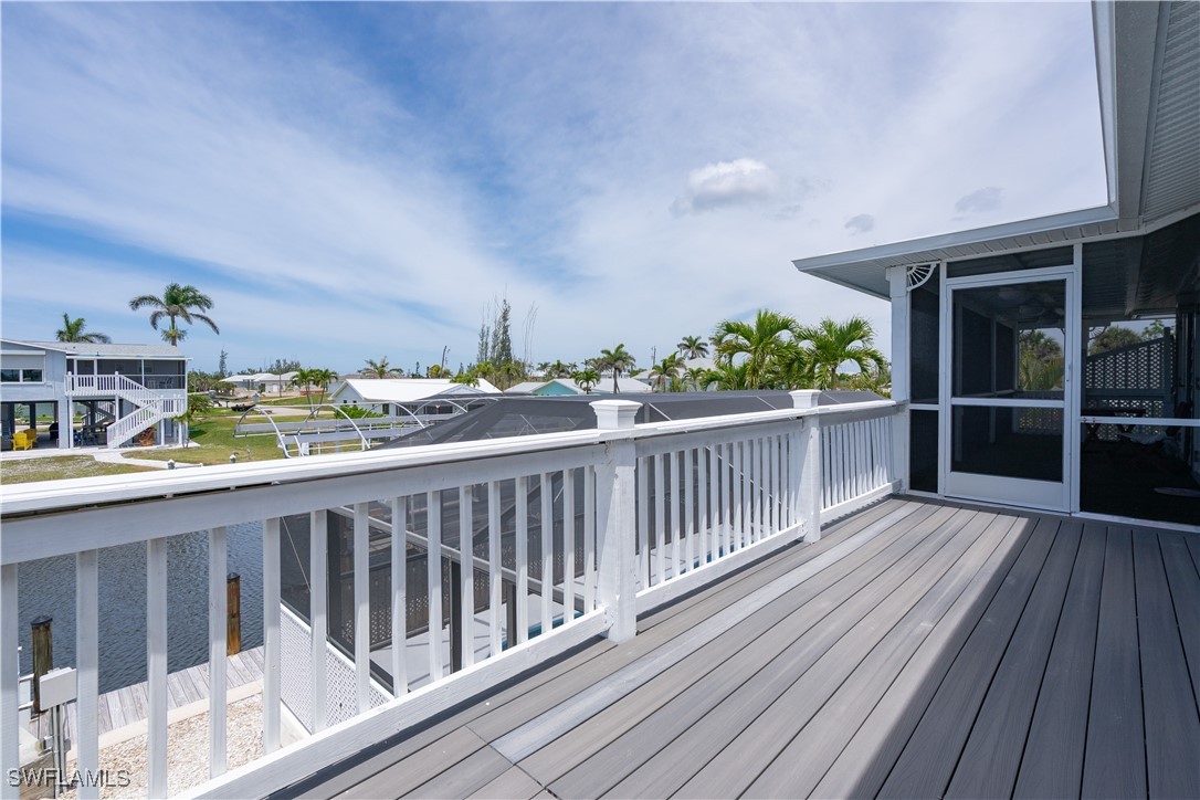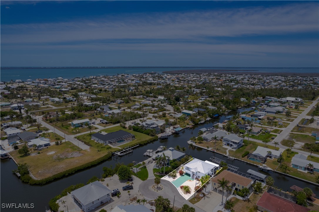 Situated on an oversized cul-de-sac lot, this beautifully updated Key West style home sits high and dry with no flood or wind damage from recent storms, offering peace of mind in paradise. Enjoy breathtaking intersecting canal views from almost every angle of the property. The expansive wrap-around dock includes a 16,000 lb covered PWC boat lift, and easy access to Pine Island Sound and the Gulf of Mexico—perfect for fishing, boating, and cruising to nearby restaurants and beaches. The additional dock/seawall area could be used for jet skis or a second small lift.