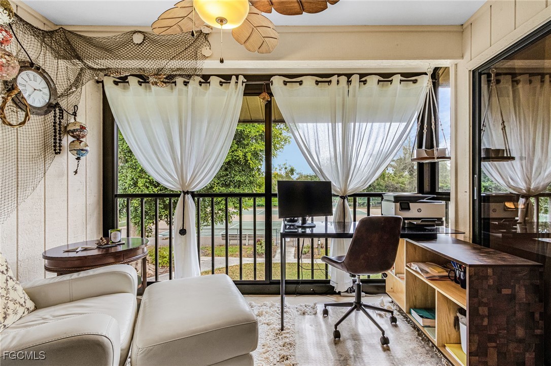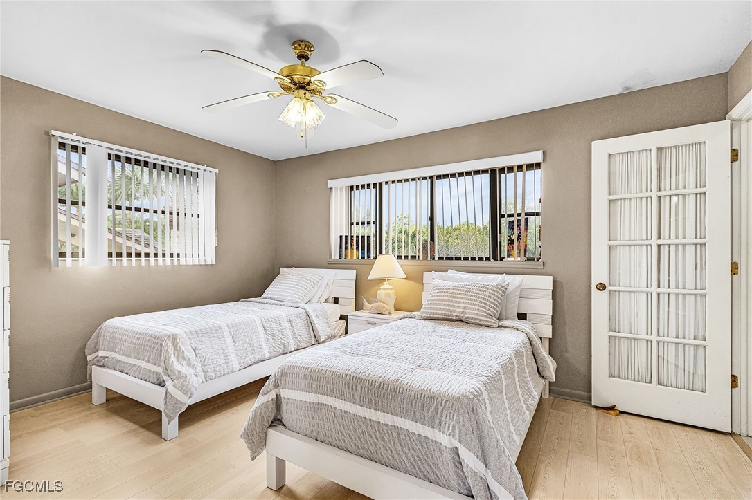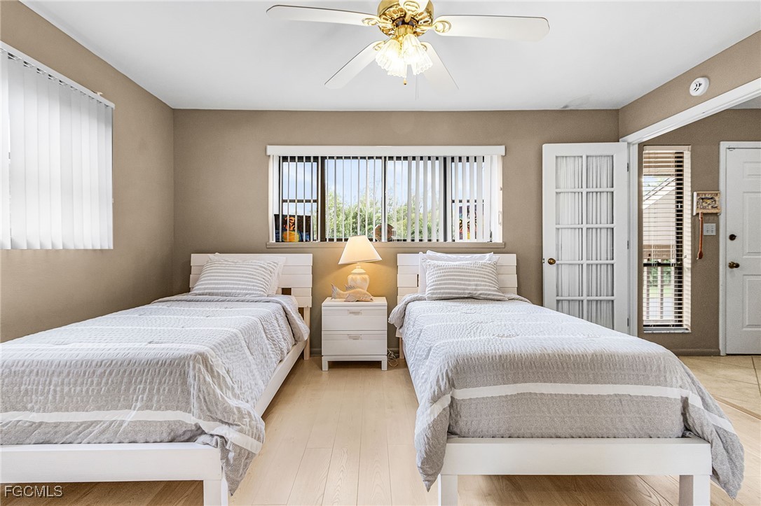 Welcome to Captains Harbor in beautiful Bokeelia—a peaceful retreat tucked away from street noise, where nature and activity blend effortlessly. This renovated, TURNKEY one-floor condo offers a bright, open great room with vaulted ceilings Triple sliders lead to a spacious screened lanai overlooking the tennis courts. The kitchen has been updated with quality finishes. The front bedroom offers two single beds and includes a large walk-in closet. The large primary suite offers another walk-in closet, and direct lanai access. You’ll love the separate laundry room with exceptional storage. Best of all - your OWN DOCK—complete with water, electricity, and a fish-cleaning station—is just steps away. There’s also abundant covered storage under the building for all your gear.