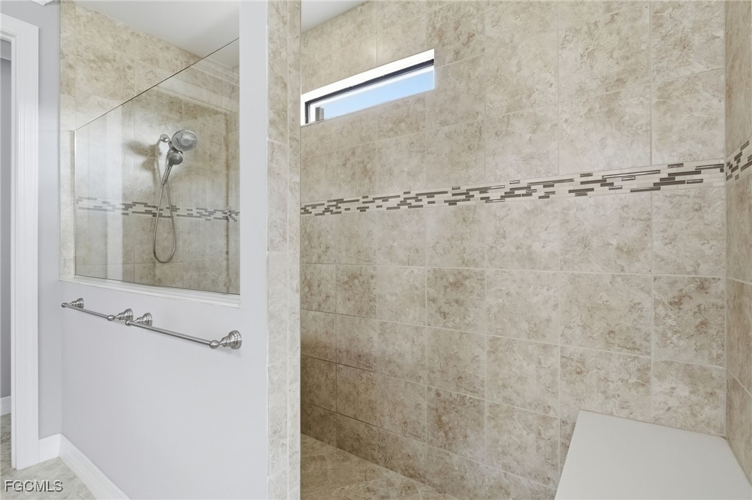 The primary suite is generously sized to accommodate all your furnishings and includes an ensuite bathroom with a step-in shower with bench, double vanity, and a huge walk-in closet. A guest suite also features its own ensuite bathroom and walk-in closet, while the third bedroom offers another walk-in closet for ample storage. The 3-car garage is a crafter’s dream, equipped with a split unit AC, insulated garage door, sink, epoxy flooring, and a basket storage system to keep everything organized. Safety and security are top-notch with an alarm system that can be monitored, storm screens, and accordion shutters. With its thoughtful upgrades, elegant finishes, and inviting indoor-outdoor living spaces, this home truly has it all.