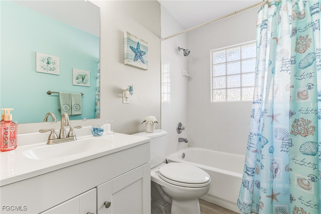 Your Christmas wish has come true, your beautiful Captiva floorplan model home in Sabal Springs Golf & Raquet Club is now available! The new EPOXY RESIN DRIVEWAY AND WALKWAY will warm your heart as you walk into your newly painted inviting home. The 3 bedroom/2 bath, Southeast facing home sits on the 15th & 16th hole, overlooking a pond and gorgeous landscaping, and if you are lucky, you can catch an Eagle perched in the nearby tree! This ACTIVE 55+ GATED 18-HOLE GOLF COMMUNITY (membership optional with a driving range and putting green) also has PICKLEBALL COURTS, along with community pool and many vibrant activities. The entire home has been updated with new flooring, bathrooms and kitchen upgrades with Granite counter tops and backsplash, new appliances. The home flourishes with warm grounding colors throughout, making you feel right at home as you walk out onto your lanai to relax with a cocktail or coffee to watch the gorgeous views. Not in a Flood Zone!