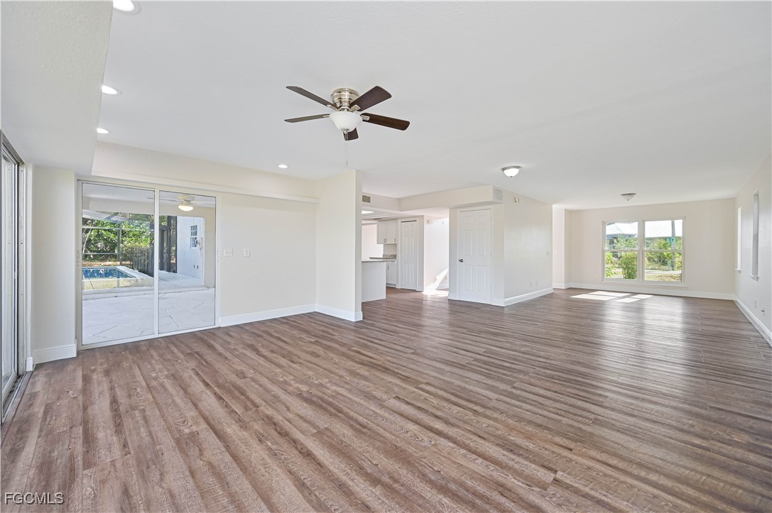 Welcome to your dream home in Cape Coral — a beautifully remodeled 5-bedroom, 3-bath pool home tucked away on a quiet cul-de-sac just steps from a public golf course. This spacious two-story residence offers the perfect blend of style, comfort, and versatility, with over 2,000 sq. ft. of thoughtfully updated living space. Inside, you’ll love the brand-new flooring, granite counters, upgraded cabinetry, and fully remodeled bathrooms that give the home a modern, move-in-ready feel. The layout is ideal for families or those who need extra room, featuring multiple flex spaces perfect for a home office, studio, gym, or creative workspace. Enjoy Florida living at its finest in the private screened-in pool area—your own backyard oasis for relaxing, entertaining, and soaking up the sunshine. This property also offers added value and peace of mind with no HOA, no flood insurance required, and central water and sewer already in place with no assessments. Located close to parks, shopping, dining, and top-rated schools, this home offers unbeatable convenience in a truly central Cape Coral location. Whether you’re an avid golfer or simply want a beautifully updated home with room for everyone, this one checks every box. Your Cape Coral lifestyle awaits. Let’s make it yours. (some photos virtually staged)