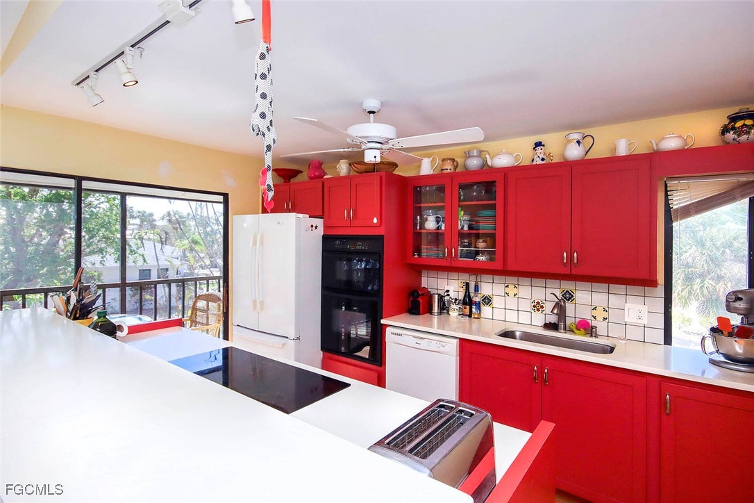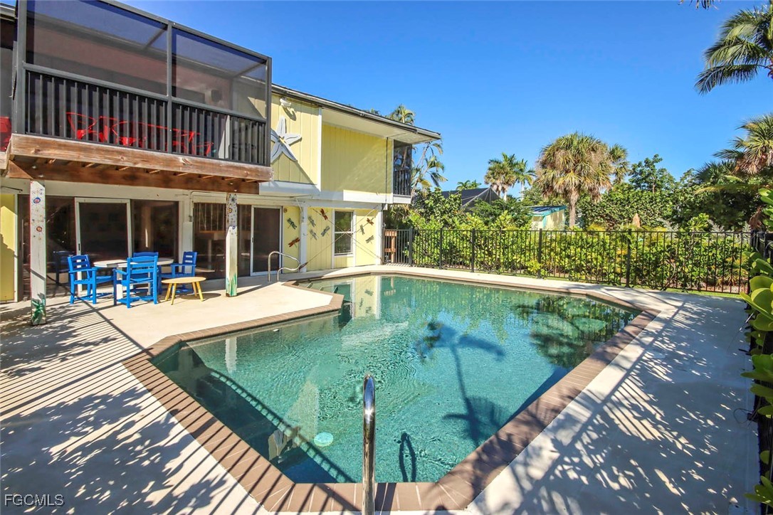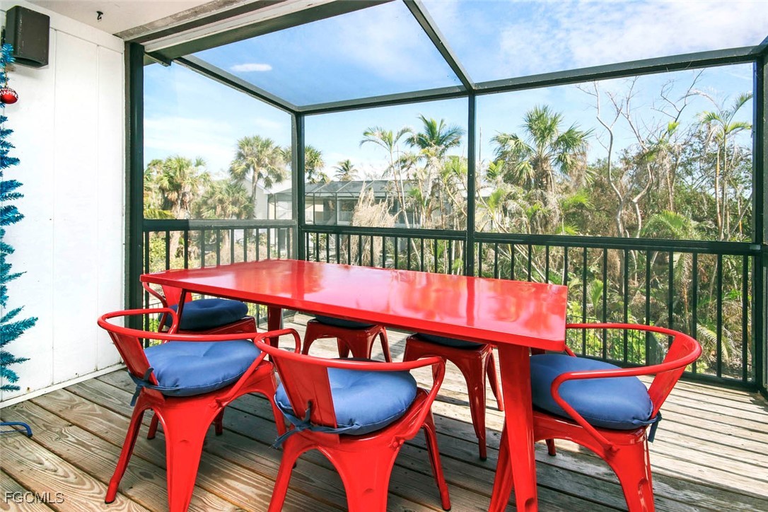Discover the charm of island living in this light-filled coastal cottage, with a distinct treehouse ambiance. Thoughtfully designed with custom cabinetry in every room, this residence blends craftsmanship with relaxed tropical living. Featuring 2 bedrooms and 2.5 baths, each space opens to its own screened porch, inviting gentle breezes and seamless indoor–outdoor living. The remodeled kitchen (2017) boasts quartz countertops, new cabinetry, and a bright, airy atmosphere ideal for casual coastal dining. Bedrooms feature hardwood floors and plantation shutters, enhancing the home’s warm, island-inspired character. A unique atrium-style entrance anchors the split floor plan, creating exceptional privacy by separating public and private living areas with a lush, light-filled foyer. Ample storage includes two generous closets on the main level, with even more potential below. Located just a short stroll from the Donax Beach access, this ideally situated property offers effortless proximity to restaurants, shelling, biking, boating, and quick on- and off-island travel. Artful, tropical, and truly one-of-a-kind, this enchanting retreat is perfectly suited as a full-time residence or an exceptional investment property.