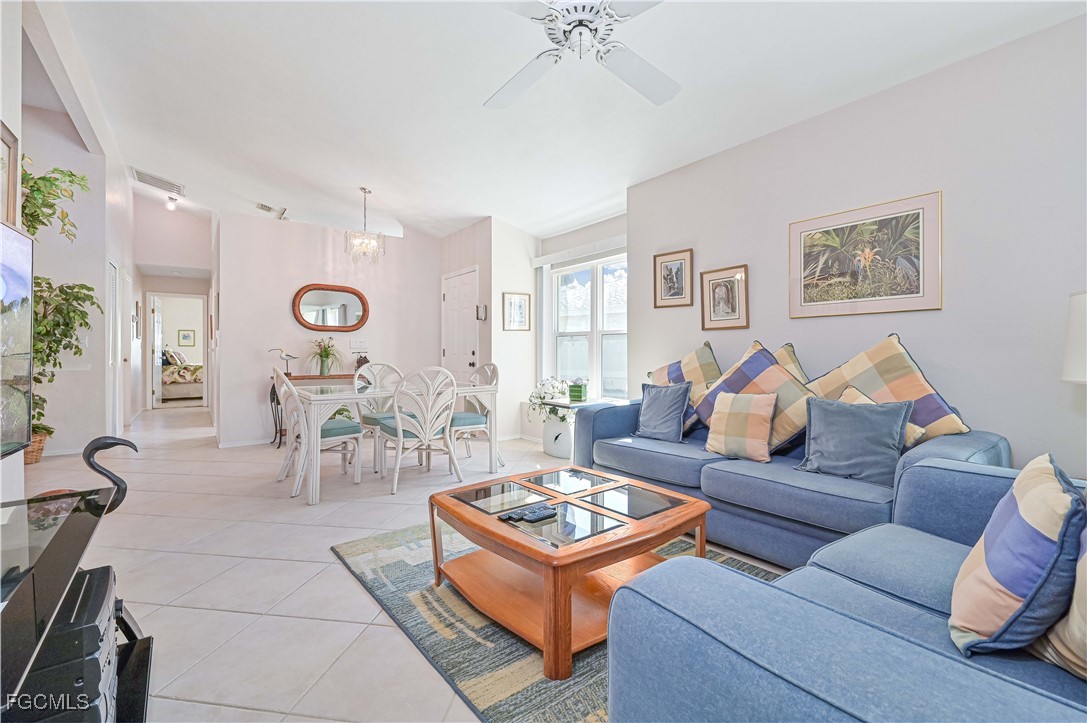 Welcome to this furnished attached villa in Country Creek, offering two bedrooms plus an open den and two full bathrooms in a well-designed, comfortable layout. Enjoy peaceful outdoor living from your private screened lanai, along with the convenience of an attached one-car garage. This home is turn-key furnished and ready for immediate enjoyment. Recent updates include hurricane impact windows and slider, a NEW roof (2025), and a NEW water heater (2025)—providing added peace of mind for years to come. Located within the highly desirable bundled golf community of Country Creek, residents enjoy access to golf, a clubhouse with community pool, fitness center, restaurant, and an active social calendar. A great opportunity for low-maintenance living in a vibrant community.