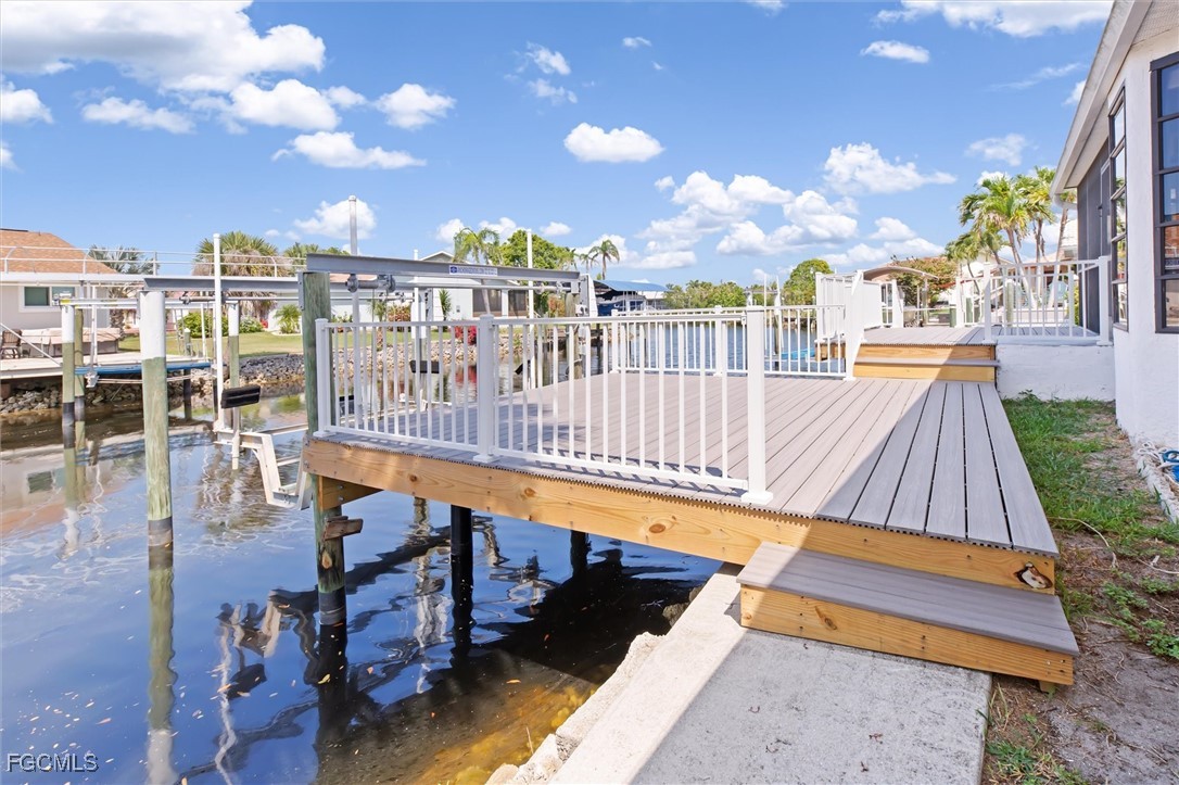 TURNKEY HOME in WATERFRONT PARADISE IN SEBASTIAN HARBOR! Discover your slice of Florida heaven in this meticulously maintained 3 bedroom, 2 bath, 2 car garage home offering 1778 sq ft of bright and airy living space. Situated on a canal leading directly to the stunning Charlotte Harbor, this property is a boater's dream! NO FLOODING OR HURRICANE DAMAGE TO THIS PROPERTY. Enjoy effortless boating with an 8,000 lb boat lift featuring a sailboat cradle. The brand new 15' 8" X 16' composite dock and an additional 15' X 10' deck provide the perfect spots for fishing, sunbathing, or simply soaking in the waterfront ambiance. Imagine entertaining friends and family or unwinding in the enclosed porch overlooking the serene canal. For the RV enthusiast, this home offers the rare convenience of an extra driveway with full RV hookups including electric, water, and septic. Step inside to find vaulted ceilings, skylights, and 6 ceiling fans enhancing the light and airy atmosphere. The great room flows seamlessly into the dining area, perfect for gatherings. The kitchen features white wood cabinets, granite counters, a breakfast bar, and stainless steel appliances, including a new refrigerator. You'll also appreciate the convenience of a full house "Rain Soft" water conditioner. Recent updates ensure peace of mind, including a metal roof installed in 2021, HVAC system from 2019, duct work replaced in 2023, and a new water heater in 2023. This home showcases true attention to detail throughout. Located in the desirable San Sebastian Harbor community, residents enjoy access to a community pool, pickle ball courts, and tennis courts, all with low semi-annual HOA fees. Don't miss this opportunity to own a waterfront gem where every detail has been meticulously cared for. Schedule your showing today.