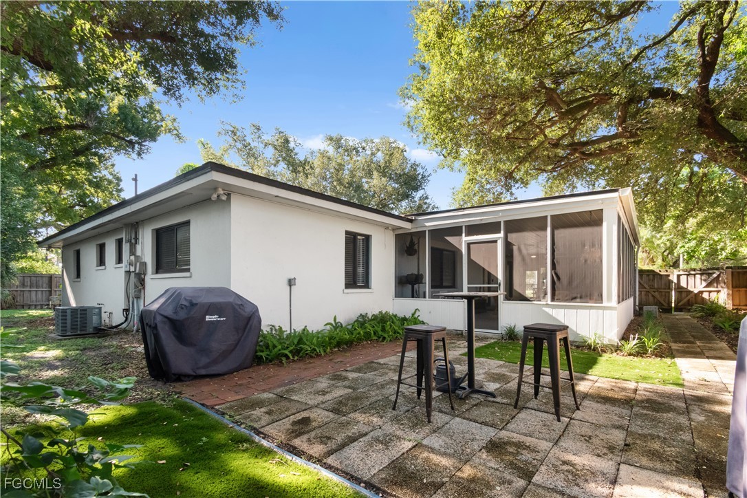 Not located in a flood zone, this updated mid-century modern home in Fort Myers sits on an oversized corner lot just off historic McGregor Boulevard, an established area known for mature landscaping and convenient access to everything Southwest Florida has to offer. Your remodeled kitchen features quartz countertops, soft-close cabinets and drawers, stainless steel appliances, a center island with cooktop, and two pantries that provide excellent storage. Luxury vinyl plank flooring and impact windows are found throughout the home, offering durability and energy efficiency. All three bedrooms include walk-in closets, and the home features a dedicated laundry room. A separate bonus room provides flexible space that can be used as a home office, guest room, playroom, or hobby area. Your screened lanai includes a built-in wood-burning grill with an exhaust hood, making it a great space for entertaining. The fully fenced backyard offers privacy and room for pets, gardening, or spending time outside. Recent updates include a newer roof and a tankless water heater, helping keep insurance and utility costs lower. This move-in ready Fort Myers home is minutes from the Downtown River District, medical facilities, shopping, dining, and a short drive to the beach, making it well suited for a primary residence, seasonal use, or investment.