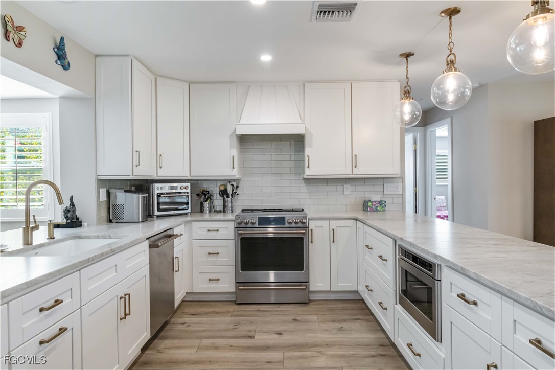 Welcome to 6304 St Andrews Cir S beautifully remodeled 3-bedroom, 2-bath home on a 0.30-acre lot in a desirable Fort Myers neighborhood (NO FLOOD ZONE). This move-in-ready property features luxury vinyl plank flooring, quartzite countertops, GE Cafe appliances, custom cabinetry, recessed lighting, plantation shutters, and custom closets. Exterior upgrades include a new paver driveway, covered patio, new sod, upgraded landscaping, and a fenced yard with mature plants for privacy. Additional improvements: 2019 roof, 2019 AC, impact windows/doors, spray foam insulation, and a new hot water heater. Plenty of room to add a pool plus a dedicated bonfire area. Every detail has been updated. Schedule a showing today!