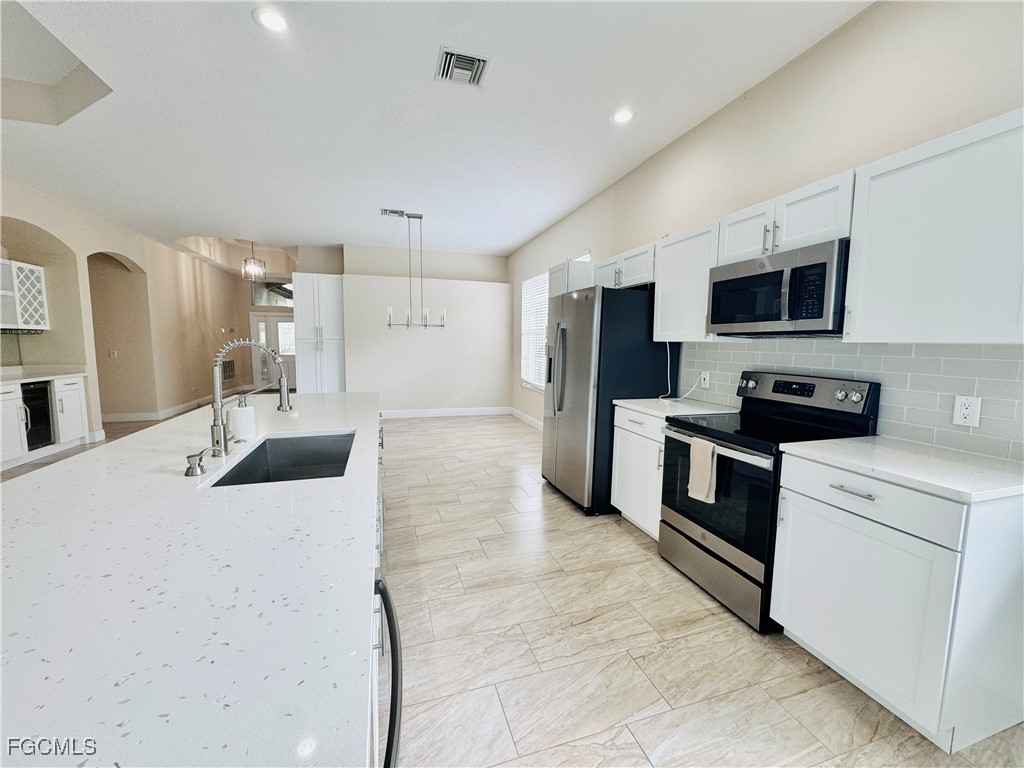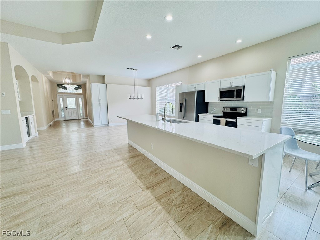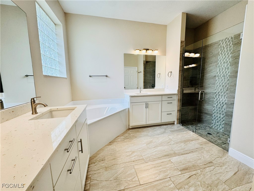 Beautiful pool house in desirable gated neighborhood. House was completely remodeled approximately 5 years ago, including a new roof and plumbing. New AC. Beautiful finishes throughout the house. Quartz countertops, tile flooring, stainless steel appliances, new light fixtures, seamless glass shower doors in the master and guest baths, fresh paint, and upgraded impact sliding glass doors. Big and bright open great room with split bedroom floor plan. The kitchen has a long island bar, along with a separate wine refrigerator and wine bar. Oversized master bedroom wing has a tray ceiling in the bedroom and two very large his and her walk-in closets. Master bath has dual sinks, along with a walk-in shower and separate soaking bathtub. Large heated pool with separate hot tub. The outdoor pool area has a screened lanai, a lot of covered space, along with privacy from the neighbors. 2 car attached garage with electric charging. Community amenities include tennis courts, new pickleball courts (in process), community pool, lake, fishing pier, fitness center, lake-side restaurant and bar, onsite management, and social director for the many community events.