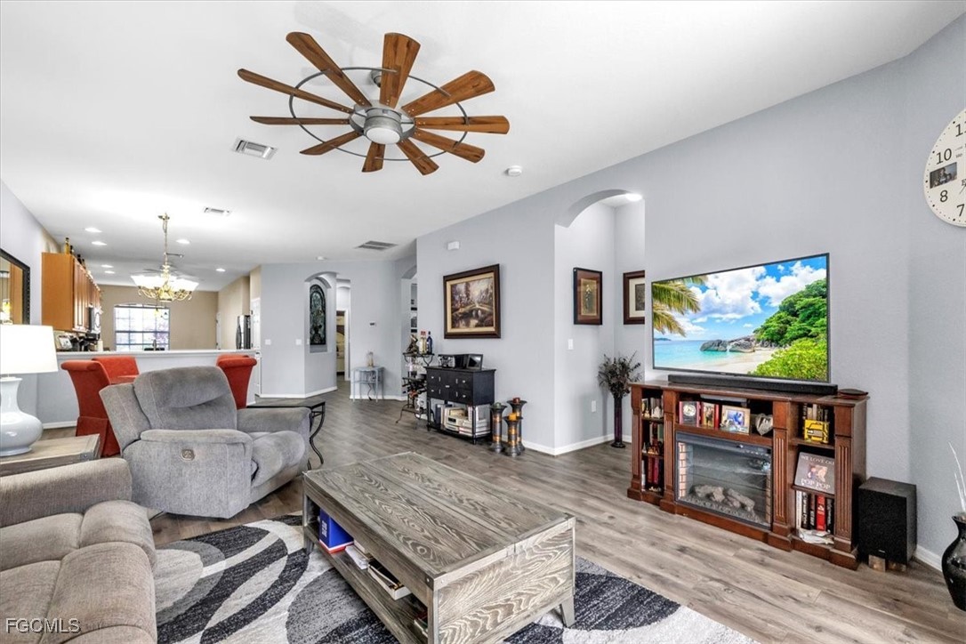 Welcome to your new home at 3717 Pino Vista Way in Estero, FL! You will love this stunning lakefront paired villa that lives like a single-family home, combining privacy with low maintenance living. Built by Kimball Hill Homes in 2007, this RARELY AVAILABLE split floor plan offers many upgrades including Lifeproof Pergo flooring, an expanded screened lanai complete with a large retractable awning, decorative tile back splash, Wi-Fi thermostat, freshly painted exterior & luxury lighting. This highly desirable Bonaire Model offers two HUGE bedrooms and a large versatile den that can be used as a third bedroom or office, and two full bathrooms. The chef of your family will love the expansive eat-in kitchen with extra tall wood cabinets, a large walk-in pantry, upgraded stainless steel appliances & breakfast nook. The split floor plan ensures privacy, with the spacious primary suite tucked away in the back of the home—featuring tranquil lake views that make every morning feel serene. The primary bathroom includes a large walk-in closet, dual vanities, garden tub, and a separate spacious shower. Relax on your covered lakefront lanai where you can enjoy stellar landscaping, peaceful fountain views and breathtaking sunsets. Plenty of storage space including walk-in closets throughout and an oversized attached two car garage. This luxury property is found in the beautiful Terra Vista of Estero, a gated and well-kept community WEST of US-41-- yet NOT IN A FLOOD ZONE (Zone X) and has never flooded! Terra Vista community amenities include a large community pool and sundeck with shaded lounge area, barbecue grill, and a clubhouse with kitchen. LOW HOA fees and NO CDD fee! PERFECT LOCATION--Just minutes away from beaches, shopping & dining, Coconut Point Mall, Miromar Outlet Mall, Hertz Arena, FGCU and RSW Airport! Quick and easy access to both US-41 & I-75. HURRY--It just makes sense to call this great Estero villa your new home!