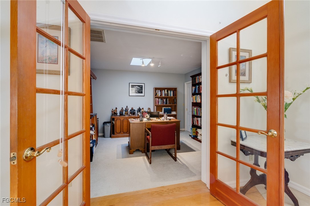 What is unique about this home? Not 1 but 2 Primary Suites come with this pool home on a corner lot located in the established Waterway Estates community. Offering 4 Bedroom 3 Bath + Den with solid wood floors throughout with carpet in the bedrooms this home is ready for an in house care giver or ready to host guest/visitors. The large open kitchen has white cabinets, granite countertops, recessed lighting & offers plenty of counter space in case the kids want to help you bake the cookies? Both Primary Bedrooms are spacious with their own private bathrooms. Relax out back in your screened in porch with double pocket sliding glass doors and a sparkling blue pool for those warm sunny days. Roof was replaced 2023 A/C was replaced 2024. Home has irrigation and mature landscaping. New hurricane rated garage door, New pool pump, Newer water heater. Come and explore the possibilities this home offers today!
