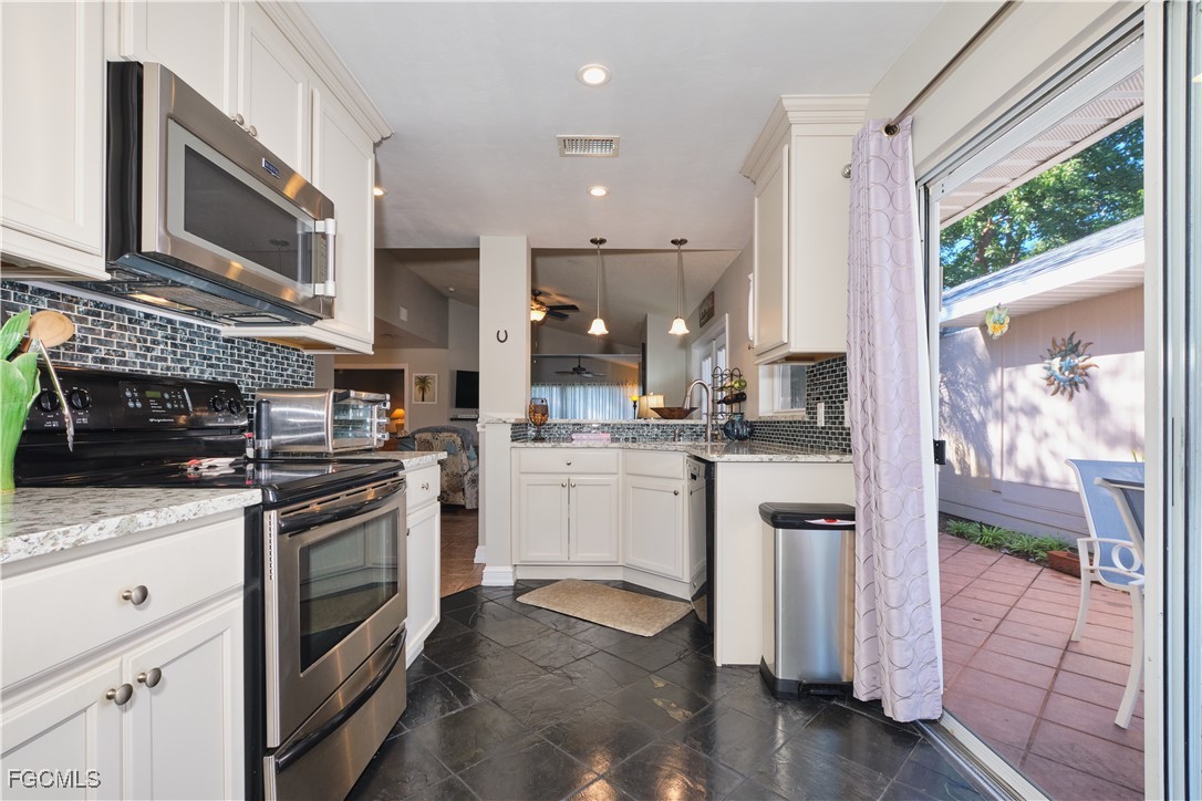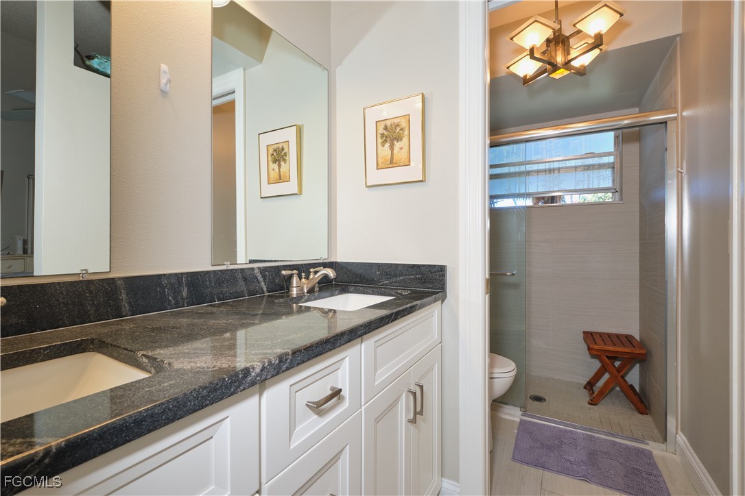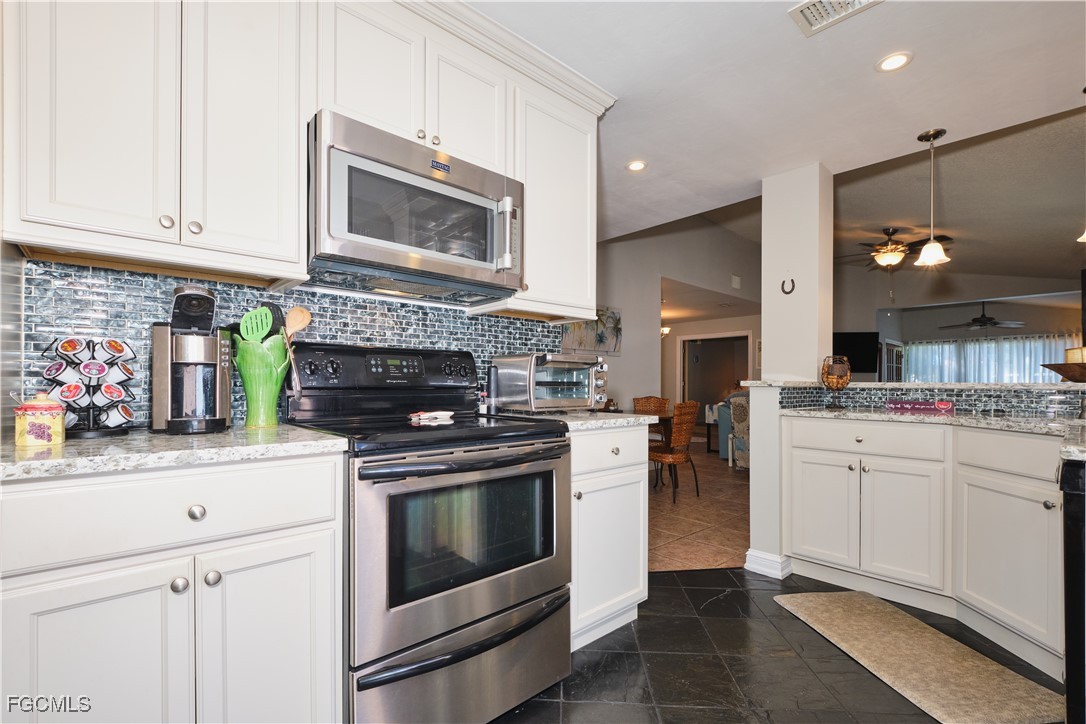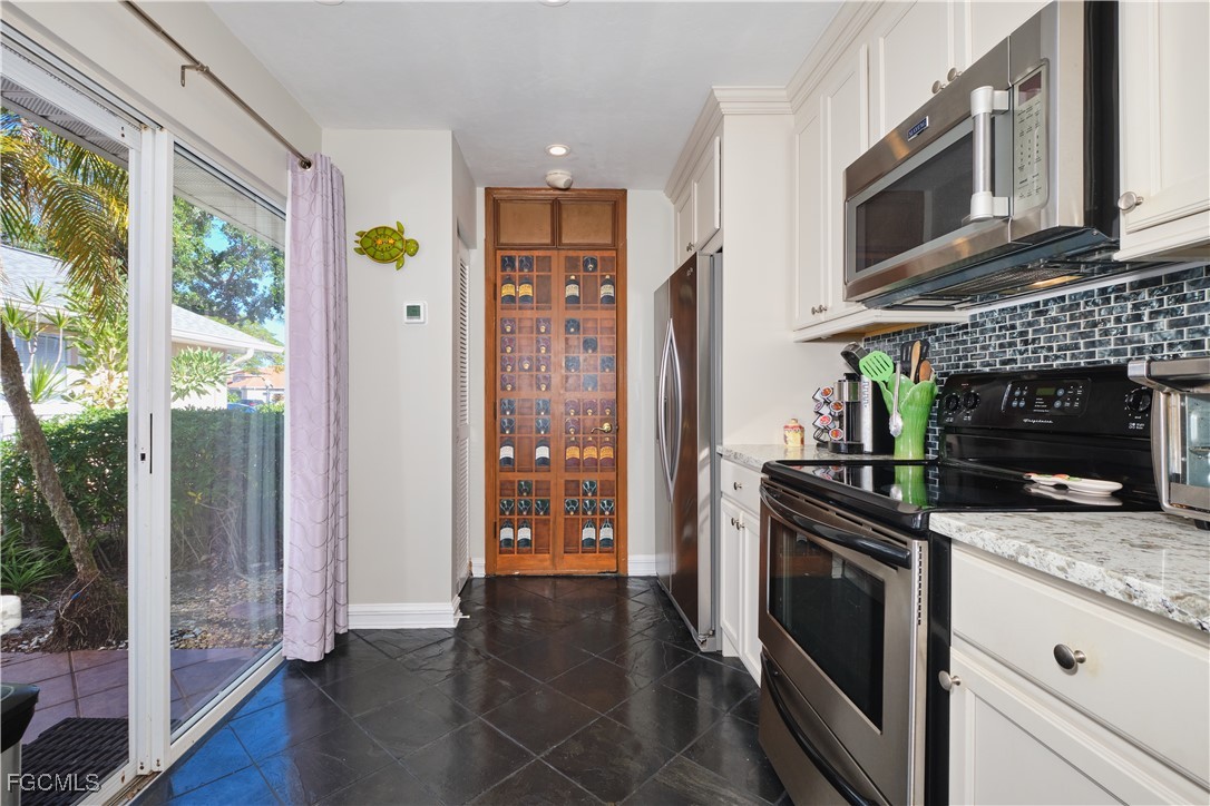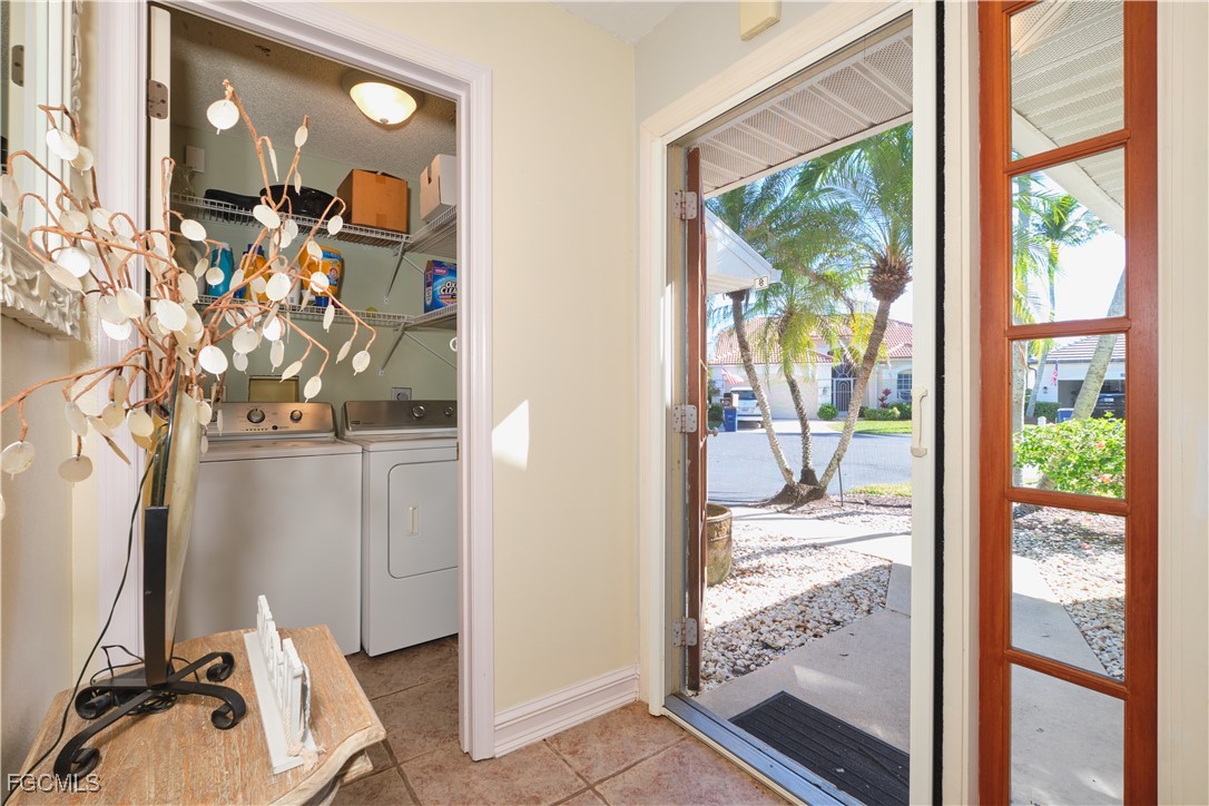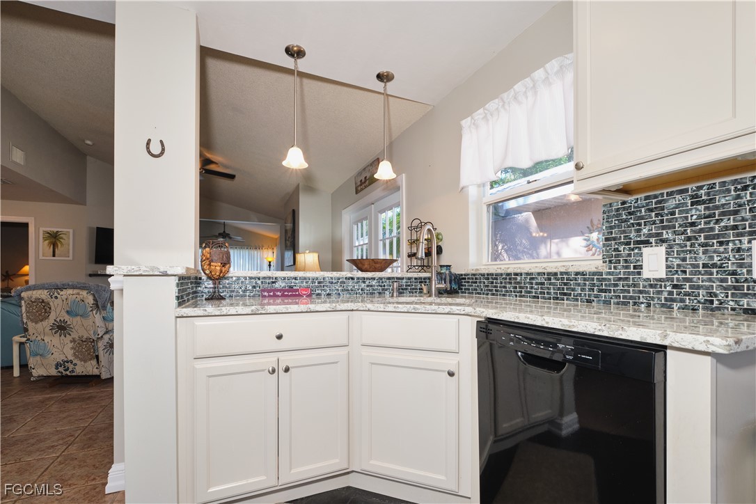 Adorable updated cottage featuring newer kitchen and baths. Original 3/2 opened up and expanded to approximately 1,450 s.f. under air. Great room concept with vaulted ceilings, large dining area with storm rated sk ylight and living room with electric fireplace. Detached villa with single family feel, 2 car garage and no adjacent neighbor to the east, very private. Living area flows to sun room with patio doors, SW exposure and french doors to master bedroom, custom entry door with side light and 4 sets of 15 pane french doors. Negotiable furniture. Upgraded fans & lighting, all tile living areas and laundry is inside. Whole house water softener recently installed. Newer ductwork. Large tiled patio with tropical landscaping and across from pool, clubhouse and guest parking. Roof has recently been replaced, exterior painted & road recently paved. No assessments! Independent mail boxes at driveway and trash pick-up curbside. AC replaced 2019. 186 slip deep water Marina with slips available for lease or purchase. Some amenities herein available but not offered. Minutes to Fort Myers, Sanibel and Captiva beaches, dining, shopping and RSW Airport.