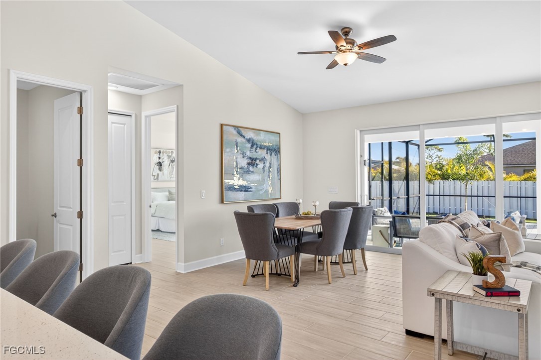LUXURY POOL HOME WITH TWO PRIMARY SUITES! NEW RELEASE! This newly refined Paradise Cove III Plan offers 4 bedrooms, 3 baths, and dual primary suites—ideal for multi-generational living or hosting guests. The open-concept great room showcases a vaulted ceiling and an expansive 16' slider, complemented by 9'4" ceiling plates throughout the home, and taller interior doors for an elevated, modern feel. The gourmet kitchen features quartz countertops, ample cabinetry, and a generous walk-in pantry, while the spa-inspired main suite includes direct pool access and a freestanding soaking tub. The second primary suite functions perfectly as a pool bath and includes a spacious walk-in closet. Step outside to enjoy the 1,100 sq. ft. covered lanai and heated pool—perfect for Florida living. Built with impact-rated windows and doors, located in a no flood zone, and backed by a 10-year structural warranty, and situated on a corner lot, this home offers style, comfort, and peace of mind in beautiful Cape Coral. One or more photo(s) was virtually staged. This is the Paradise Cove III Plan.