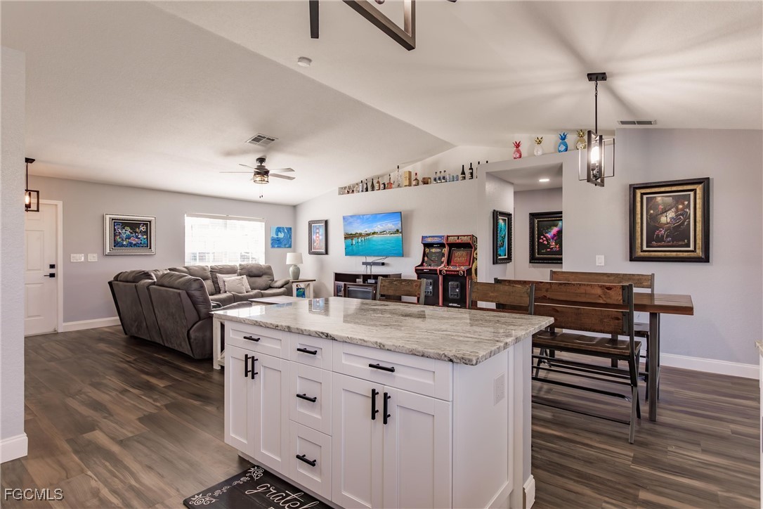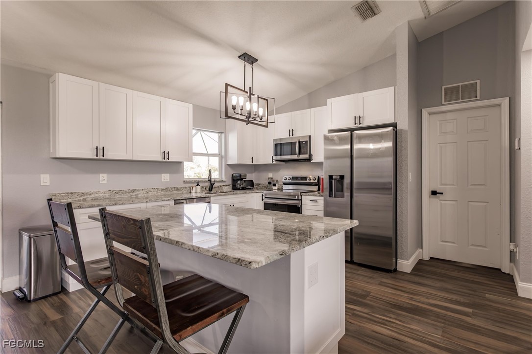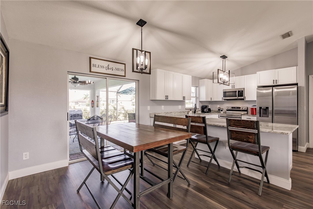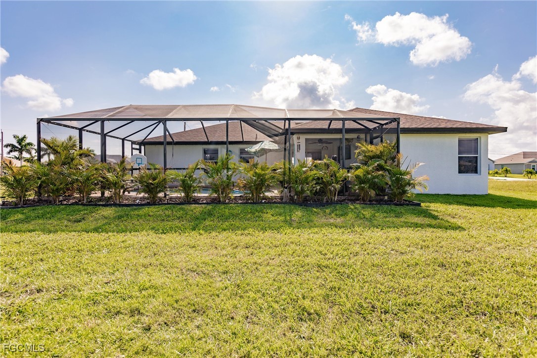 Welcome! Come see This Exceptional Pool Home with 4-Bedrooms and 2-Bathrooms, Located in a Peaceful Cape Coral Neighborhood. This residence has been Beautifully Updated from Top to Bottom, Offering Modern Upgrades Throughout. The Updated Kitchen Features an ExtraLarge Island, Granite Countertops, and Stainless-Steel Appliances, Making it ideal for Entertaining and Everyday Living. The Open-Concept Floor Plan Includes a Spacious Living Area with Vaulted Ceilings and Luxury Vinyl Flooring Throughout — NO Carpet. The Home is Equipped with a Whole-House Reverse Osmosis System, Providing Clean, Purified Water at Every Tap. Step Outside to Your Private Saltwater Pool, Surrounded by Newly Landscaped Grounds and Enhanced with Ambient Pool Lighting — Perfect for Relaxing Evenings and Florida Sunsets. Recent Upgrades Offer Peace of Mind and Efficiency, Including a New HVAC System (2022), New Decking, Insulation, and Shingle Roof (2023), a New Pool Pump, and a Newer Water Heater. With its Stylish Updates, Desirable Location, and Gulf-Access Surroundings, This Home is Truly a Rare Cape Coral Find. Don’t Miss the Opportunity to Make it Yours and Experience the Best of Florida Living.