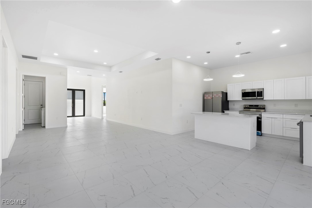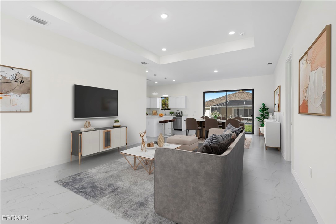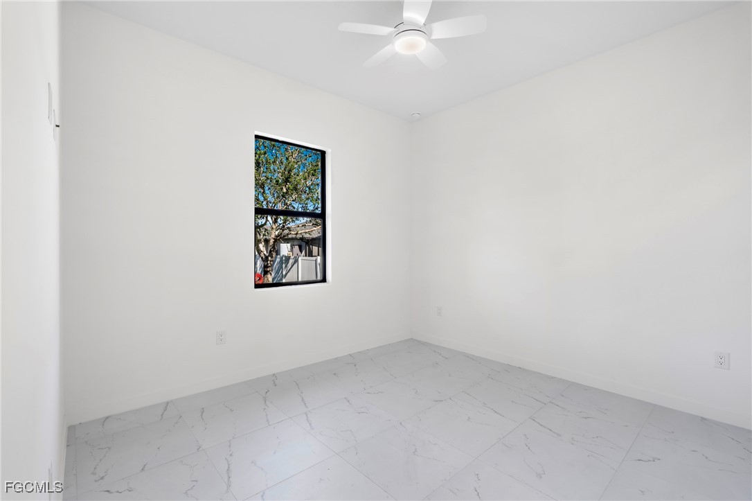 Discover this stunning, move-in-ready new construction home offering 1,904 sq ft of living area located in the fastest-growing area of Cape Coral. Featuring a sleek contemporary layout with 10-foot ceilings and elegant tile flooring throughout, this residence boasts 4 spacious bedrooms and 3 stylish bathrooms. Enjoy a gourmet kitchen with white cabinetry, quartz countertops in both the kitchen and bathrooms, and stainless steel appliances. Bathrooms feature frameless glass-enclosed showers, adding a luxurious touch. A washer and dryer are also included for your convenience. The open floor plan seamlessly connects living, dining, and kitchen areas, while the private backyard offers a peaceful retreat. Built with Stem Wall foundation for enhanced elevation and structural strength, this home also features impact-resistant windows and doors, automatic garage door, irrigation system, and high-end finishes throughout. Located in one of the fastest-growing areas of Cape Coral, this property is ideal for families, snowbirds, or investors. Plus, it includes a builder’s warranty 1-2 years and 10-year structural coverage offering peace of mind for years to come. Don’t miss this incredible opportunity to own a high-quality home in a booming location!
